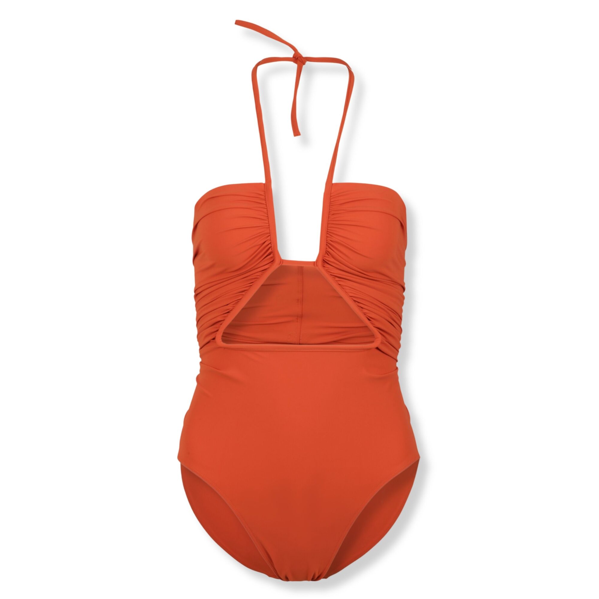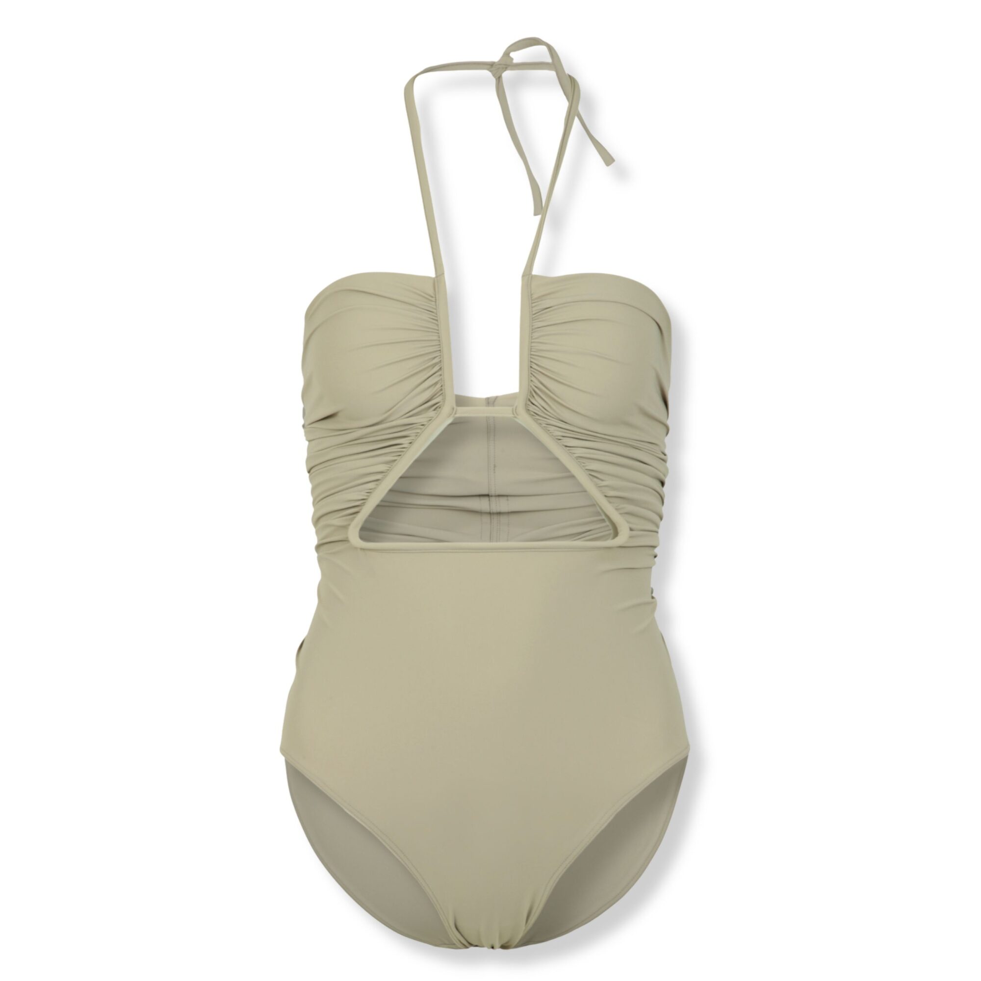 Costume da bagno Rick Owens. Annodatura dietro il collo e busto con dettagli arricciati e cut-out frontale.
