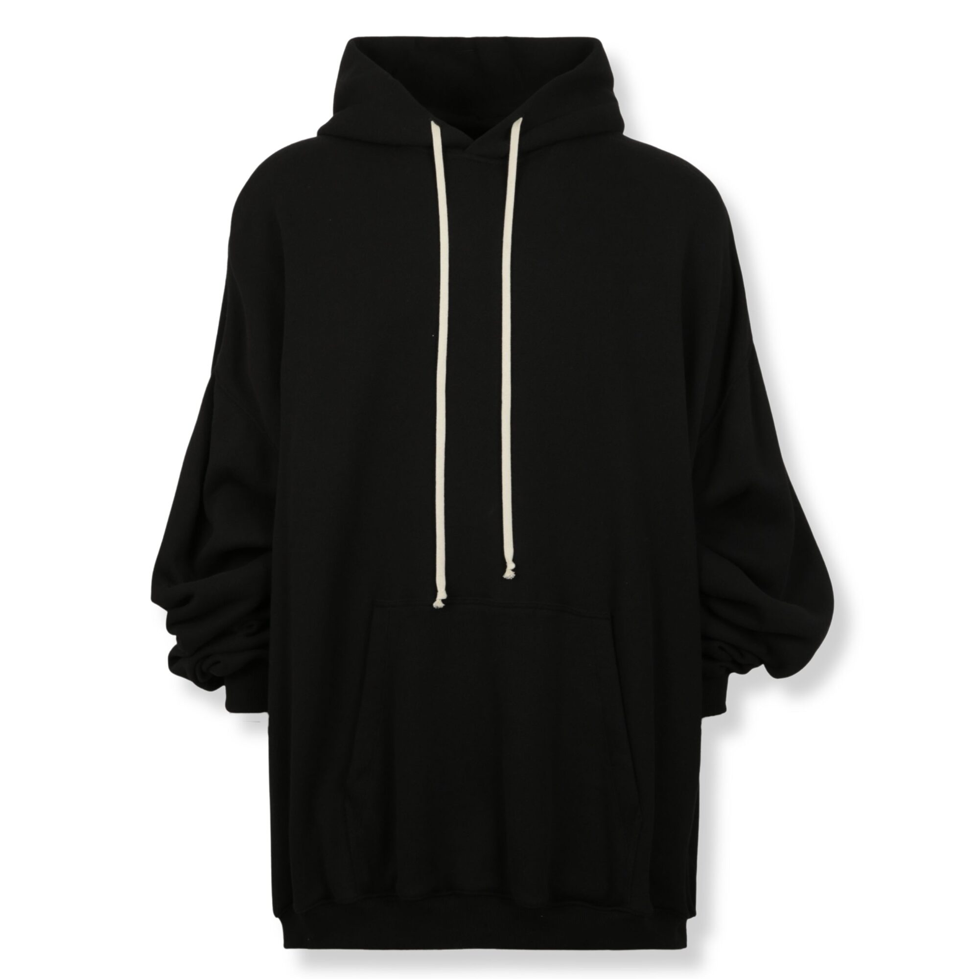 Hun Hoodie Rick Owens. Vestibilità ampia, spalle basse e maniche ampie con polsini e orlo a costine, una tasca a marsupio sul davanti.