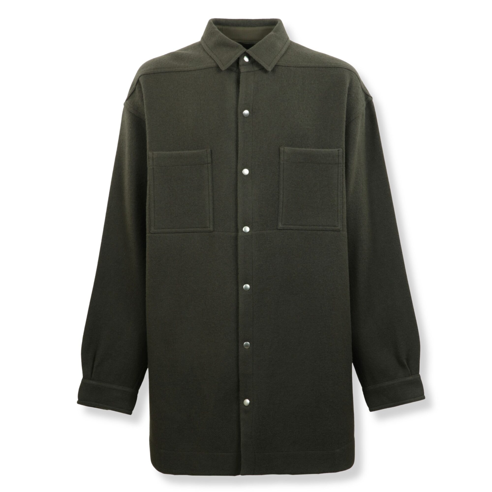 Outershirt Rick Owens. Corpo in lana, con due tasche applicate sul petto. Chiusura frontale con bottoni. Polsini con abbottonatura.