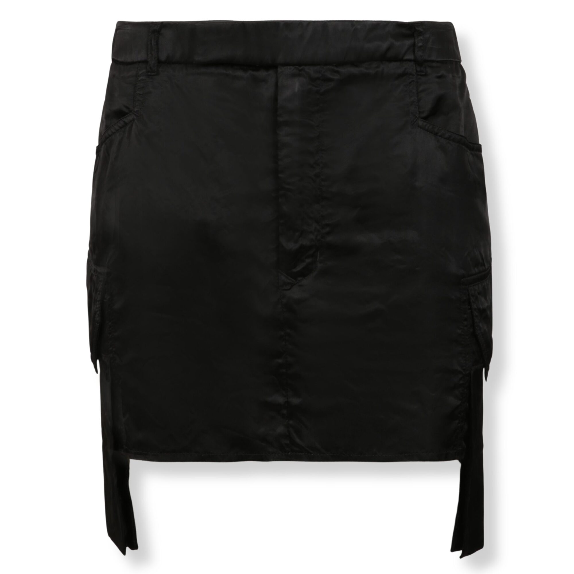 Stefan Mini Skirt Rick Owens. Orlo dritto con tasche cargo ed inserti laterali a cascata. Zip frontale nascosta e tasche a filetto sul davanti.