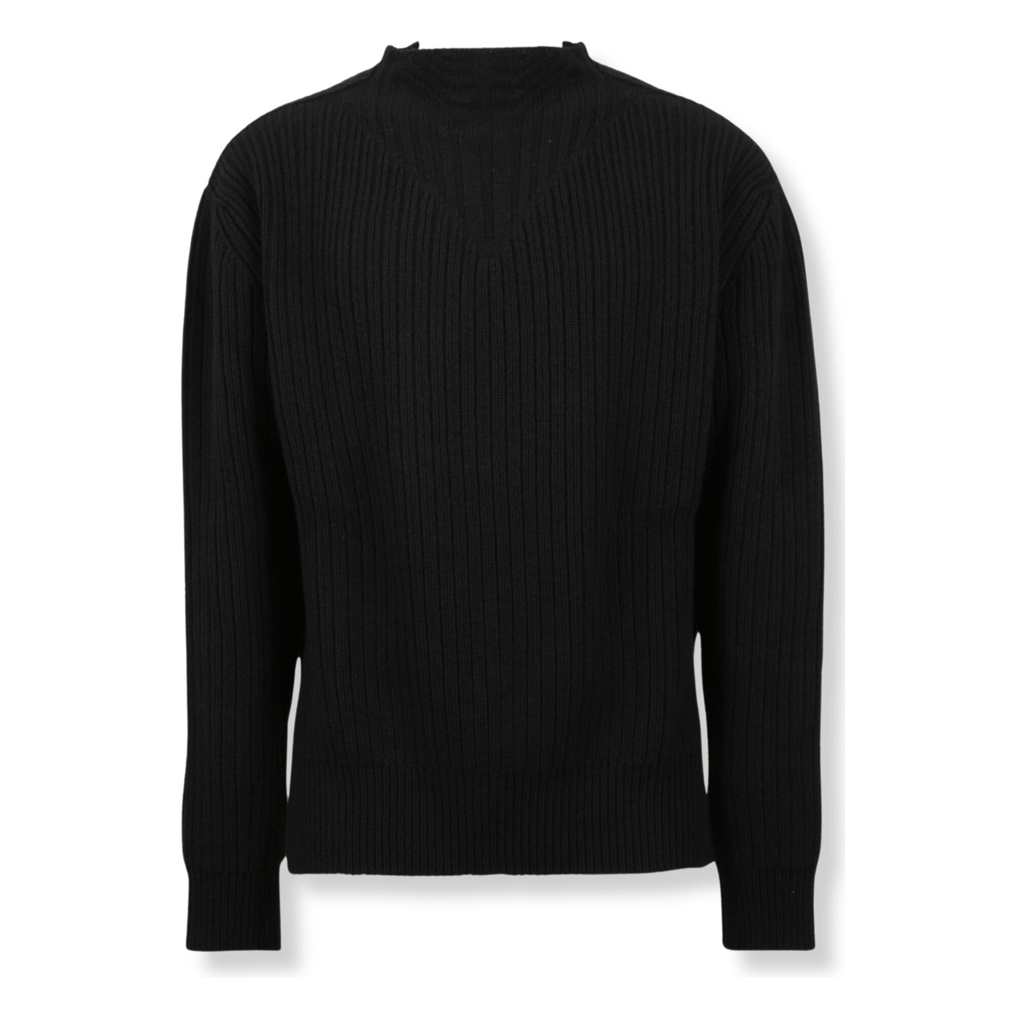 Al Pull Rick Owens. Design maniche lunghe e lunghezza ai fianchi, con collo rotondo e scollo a V con lavorazione a costine, con caratteristica linea in maglia verticale lungo la schiena.