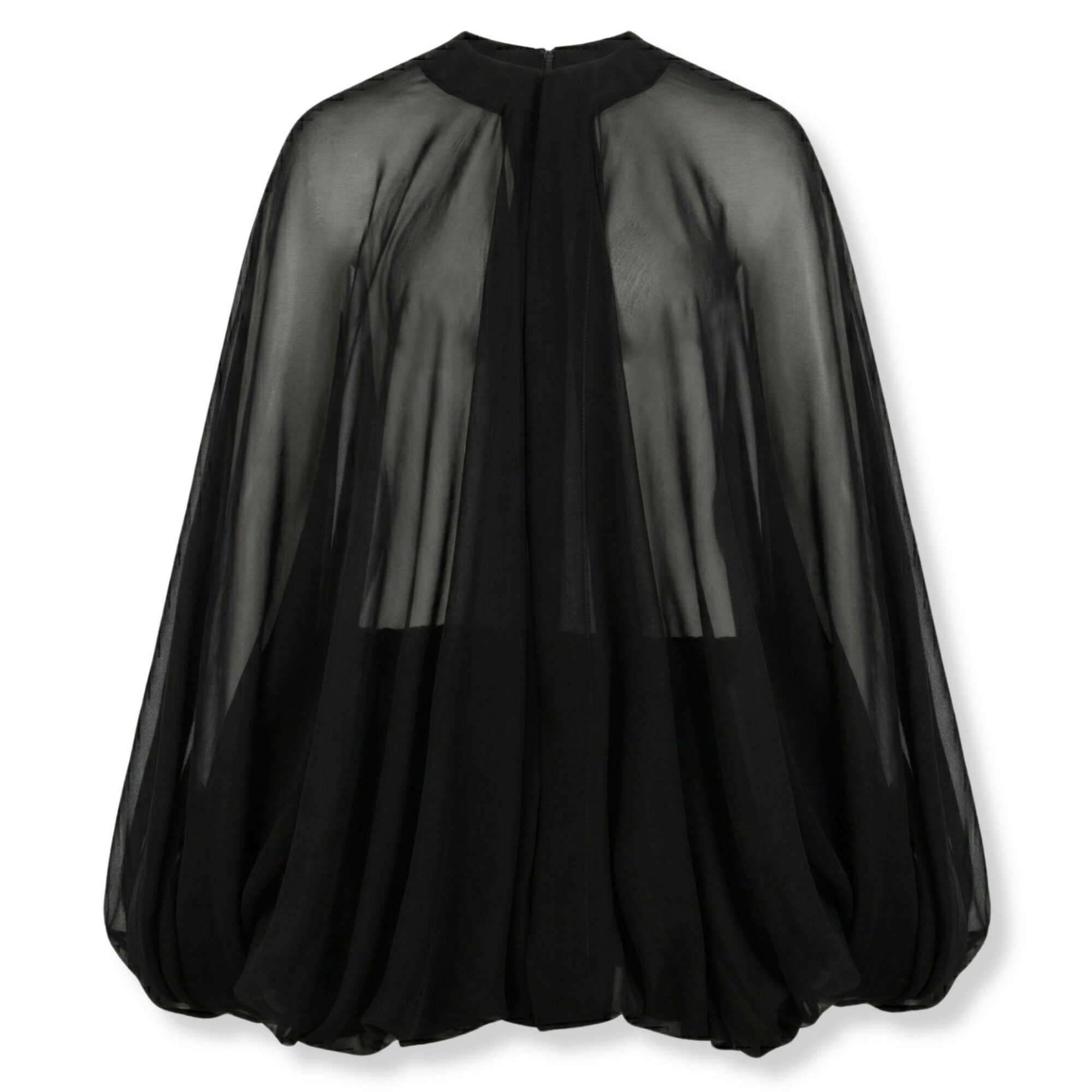 Temple Luxor Cape Rick Owens. Design in chiffon di seta semitrasparente, scollo rotondo e drappeggi.