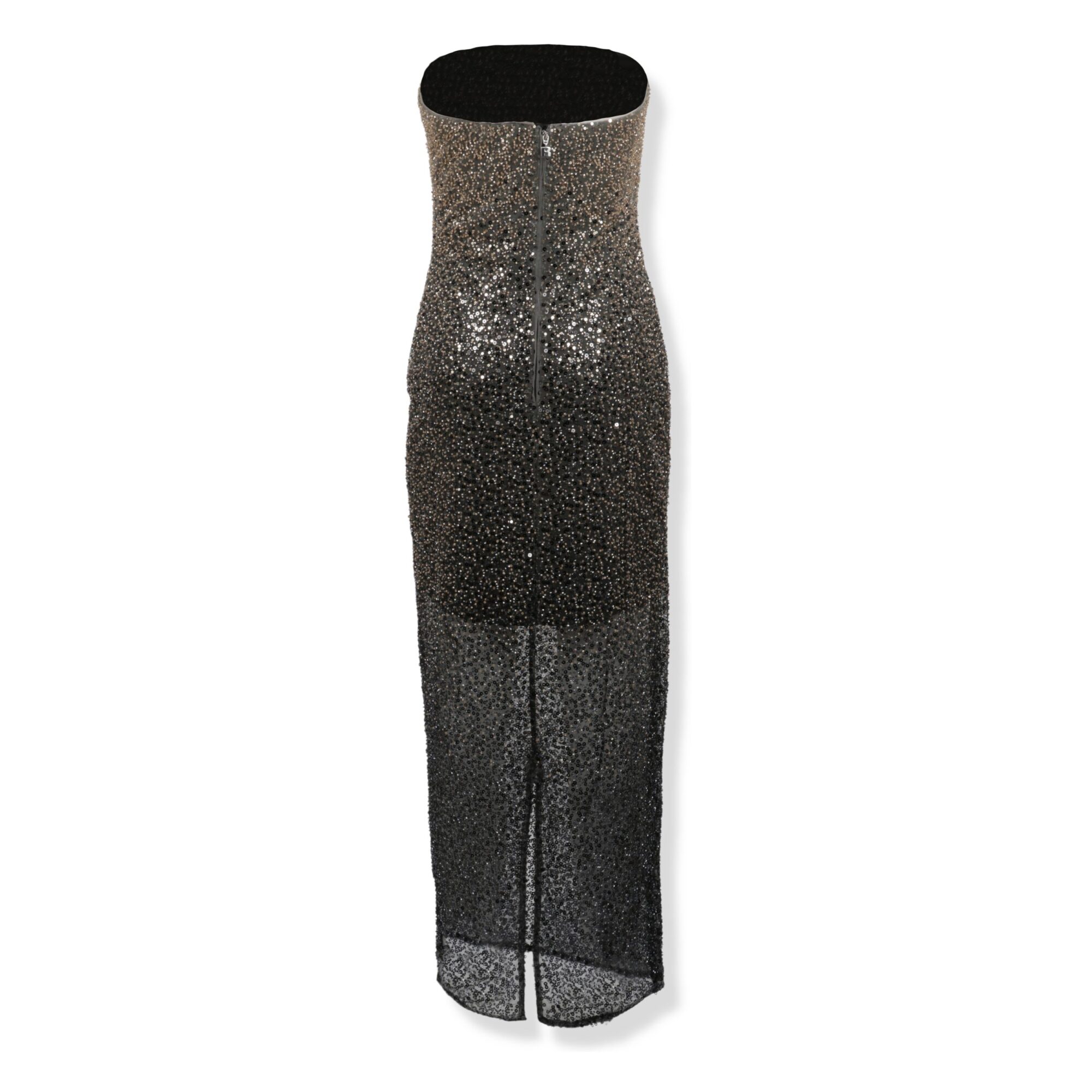 Beaded Midi Tube Dress Rotate. Senza spalline, semitrasparente con effetto sfumato verso il basso e paillettes su tutta la superficie. Gonna con orlo dritto e spacco sul retro.