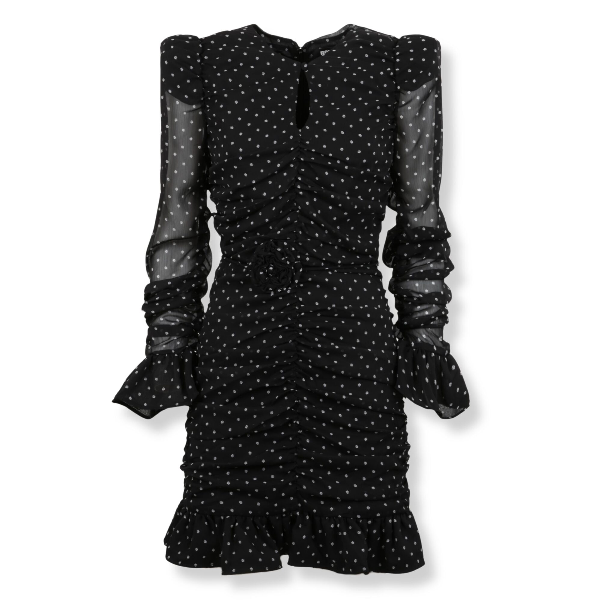 Printed Long-sleeve Dress Rotate. In chiffon con stampa a pois, scollo con piccola apertura a goccia e maniche semitrasparenti. Gonna con orlo arricciato e svasato.