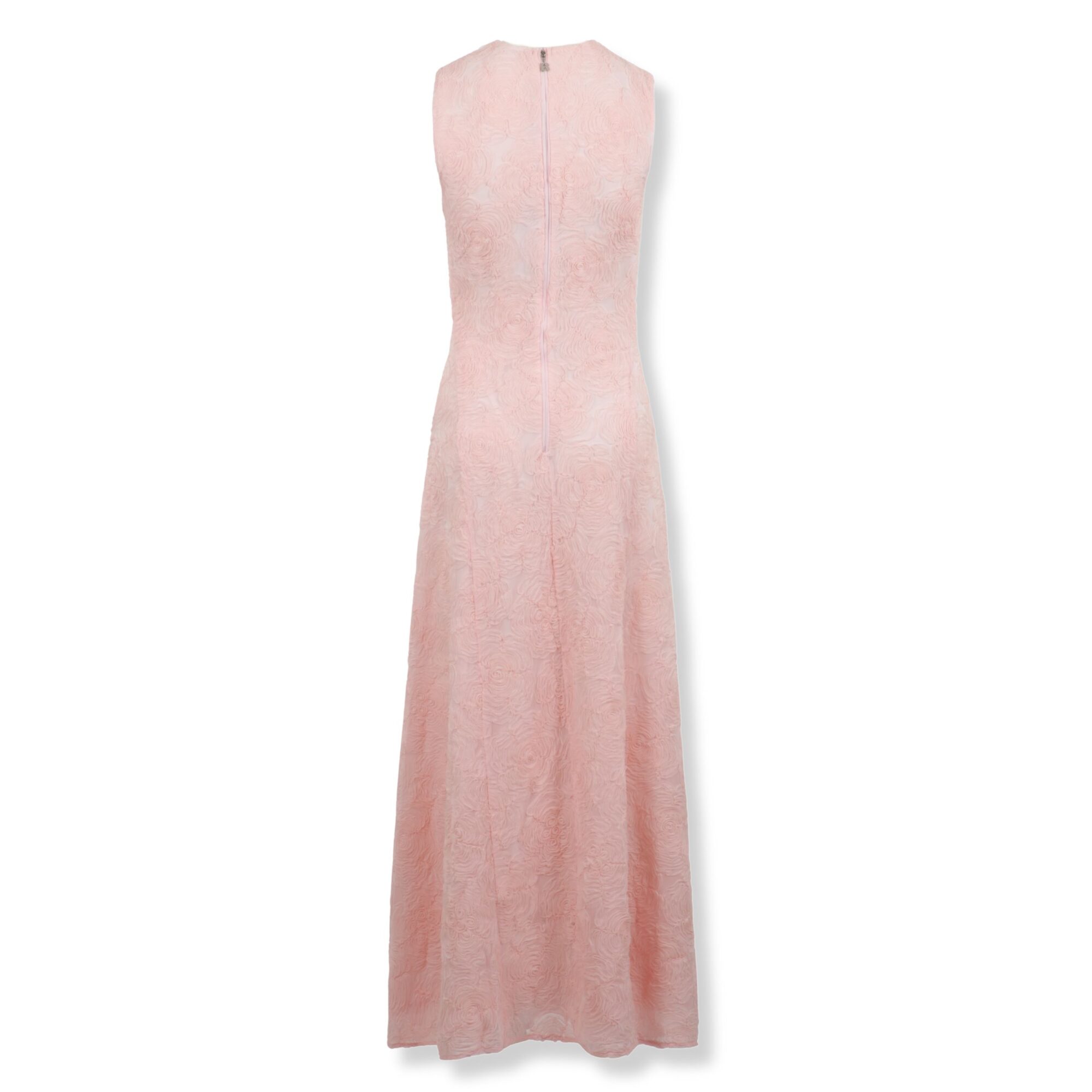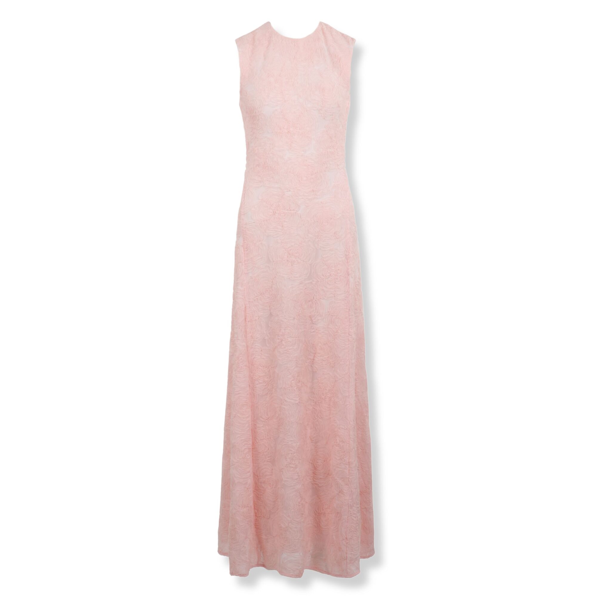 Mesh Maxi Dress Rotate. Smanicato, decorato con trama a motivo floreale su tutta la superficie. Gonna con orlo svasato e chiusura sul retro con zip.