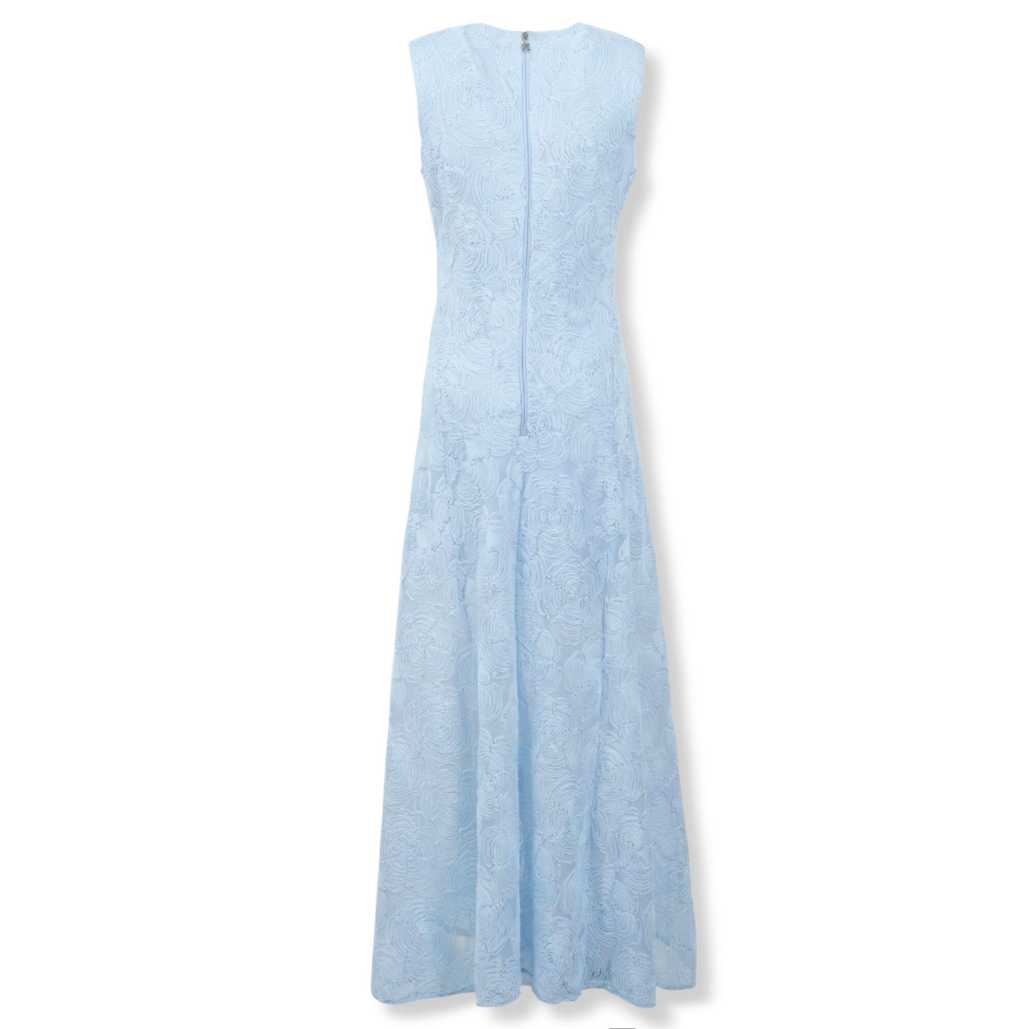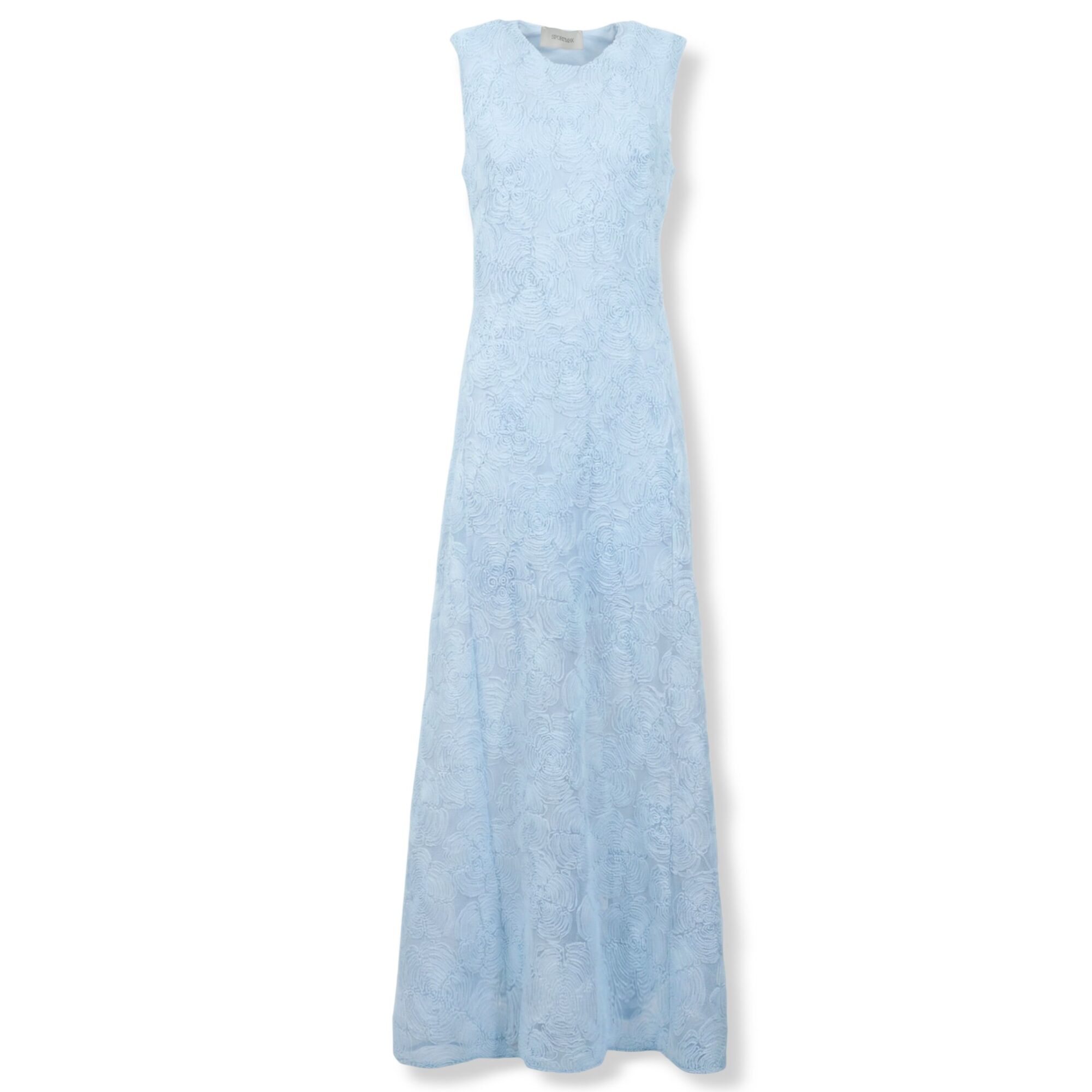Mesh Maxi Dress Rotate. Jacquard con motivo floreale, scollo rotondo, smanicato, gonna leggermente svasata.