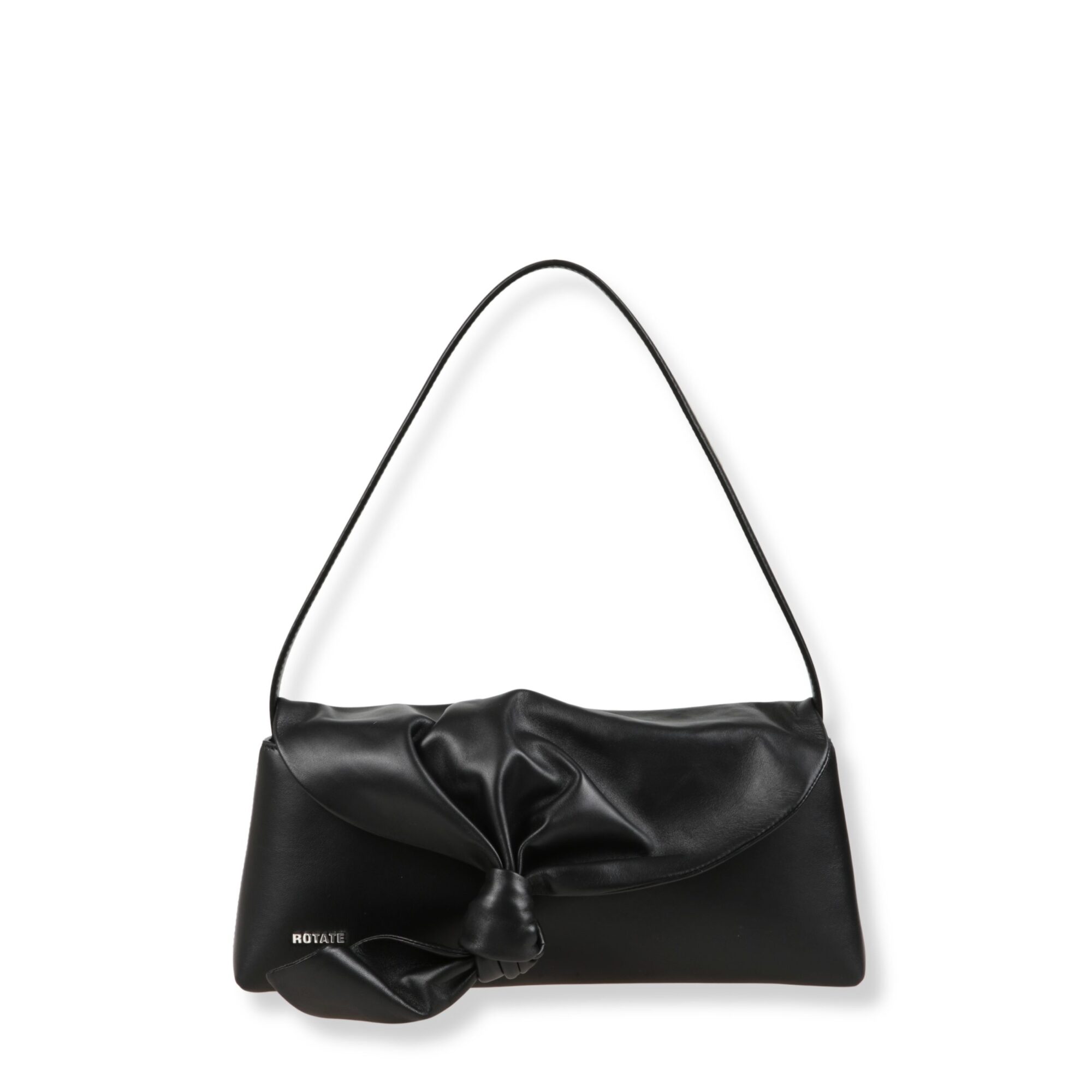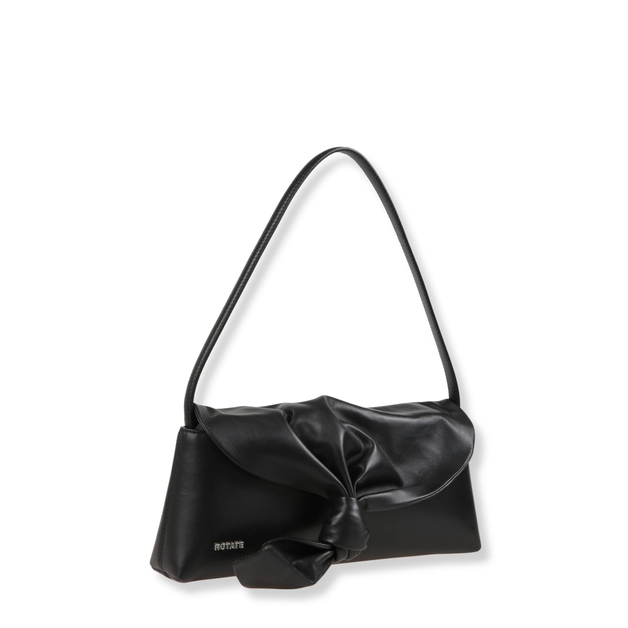 Drape Bag Rotate. Design in pelle scamosciata, dettaglio annodato frontale, manico sottile coordinato.