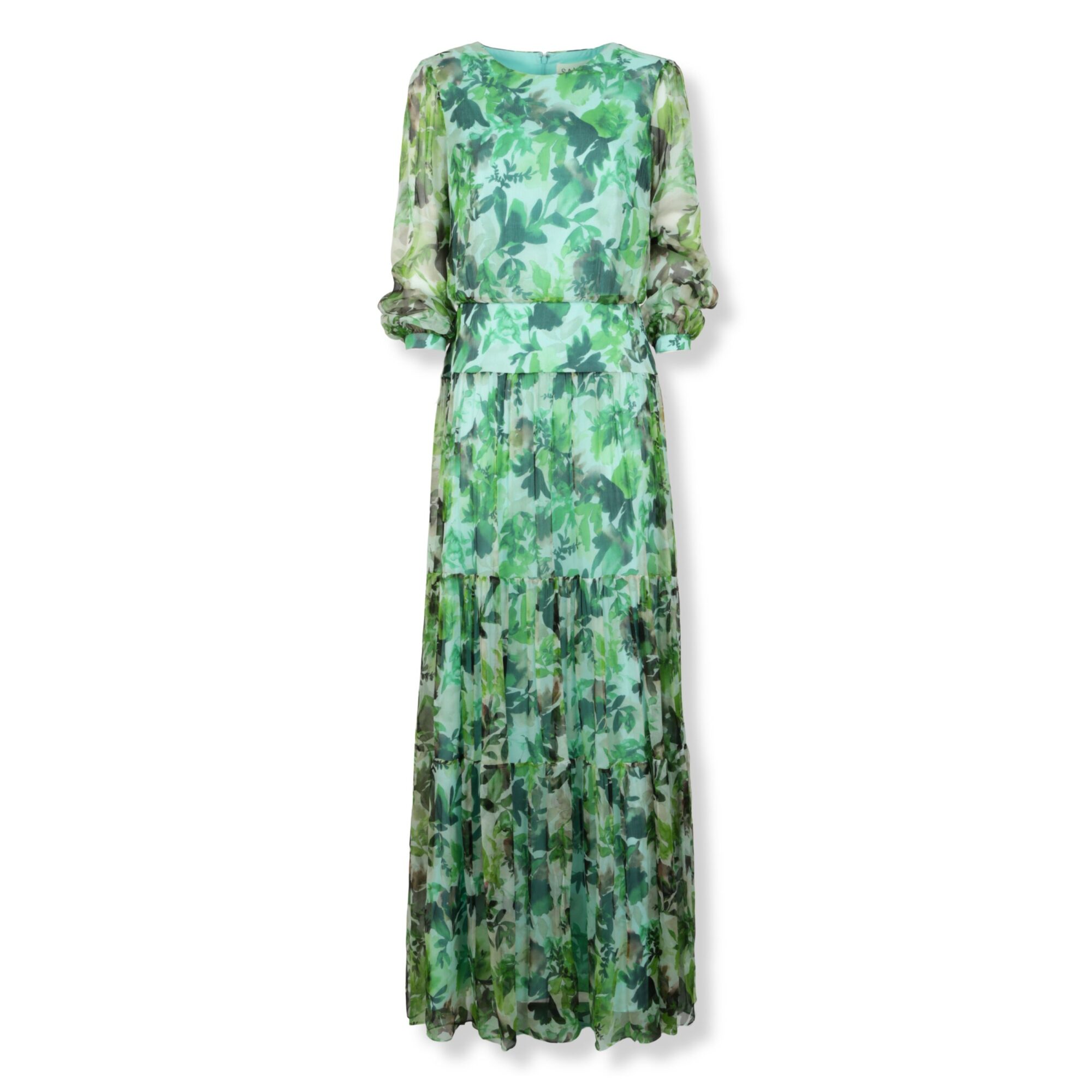 Isabel Long Dress Saloni. Design in chiffon increspato con cadenza morbida e stampa su tutto il corpo. Scollo rotondo e gonna leggermente voluminosa.