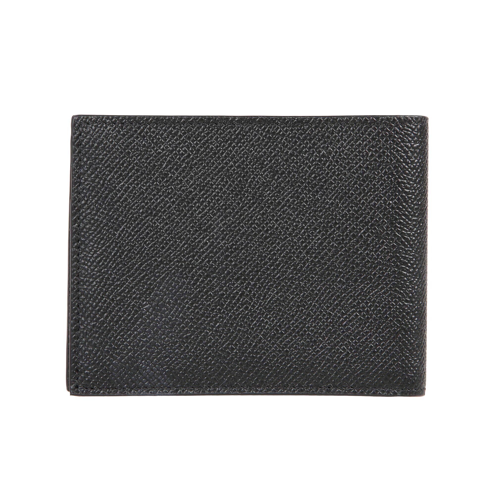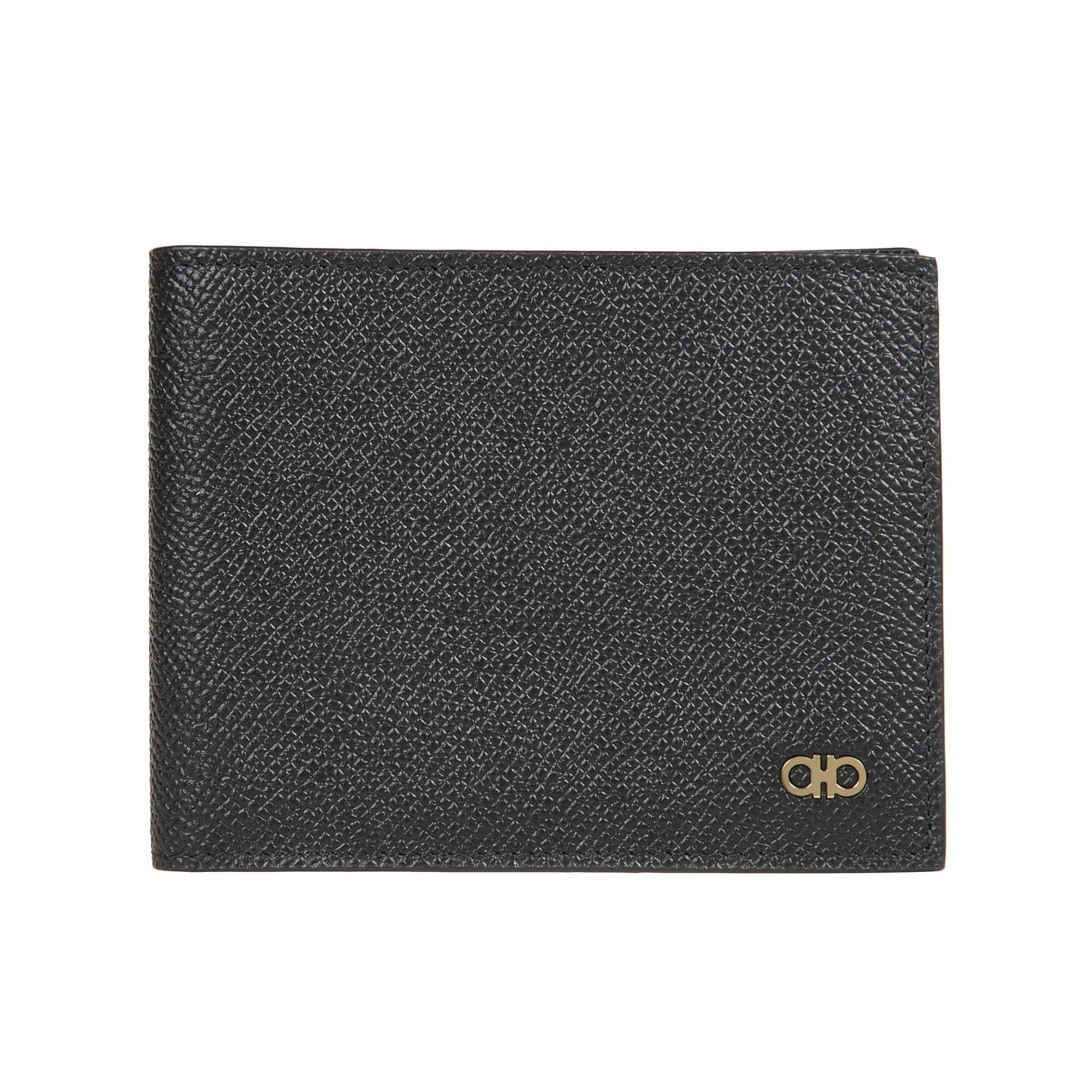 Gancini wallet. Design bi-fold, in pelle martellata, impreziosita da un piccolo Gancini dorato sul davanti. Interno con diversi scomparti per carte e tasca per banconote.