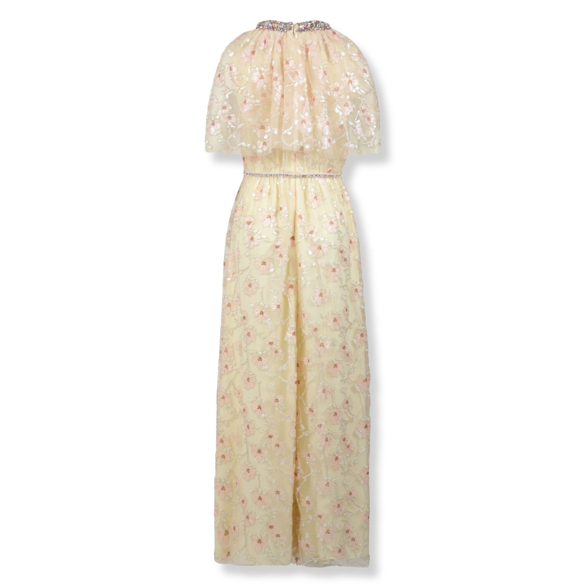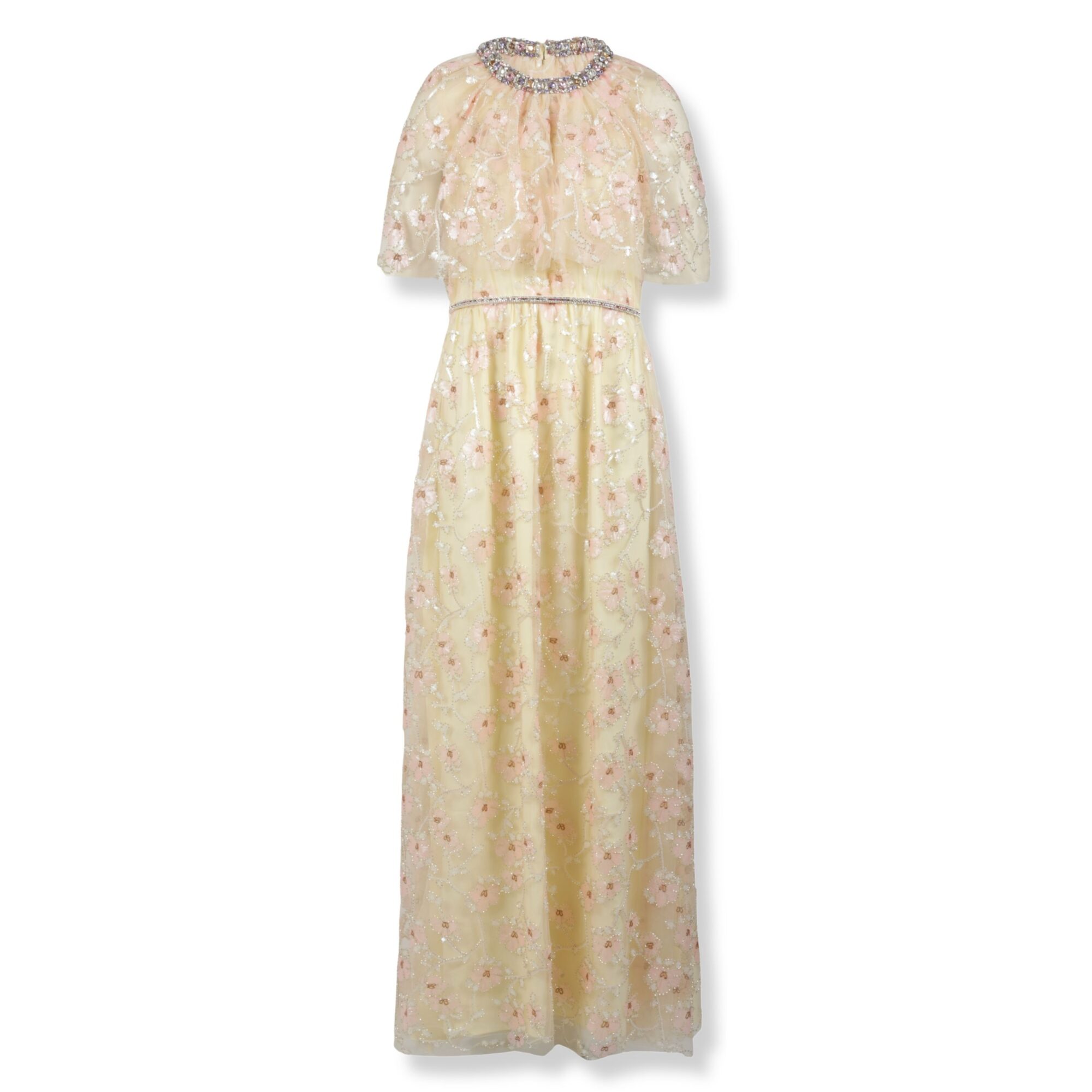 Floral Embellished Maxi Dress Self-Portrait. Linea fluida, interamente decorato con ricami floreali e perline. Top con dettaglio a mantella, girocollo e sottile cintura in vita rifinite in cristalli.