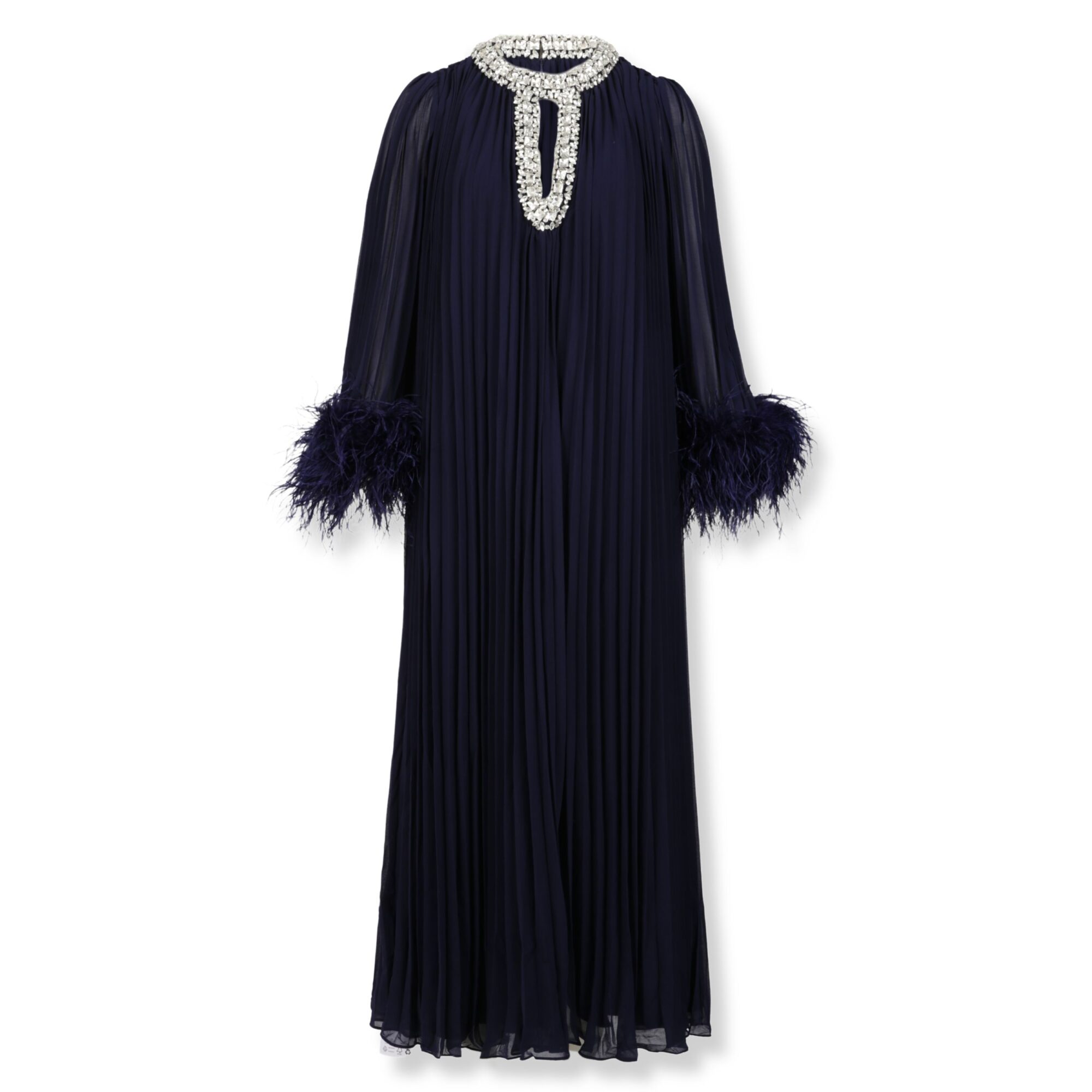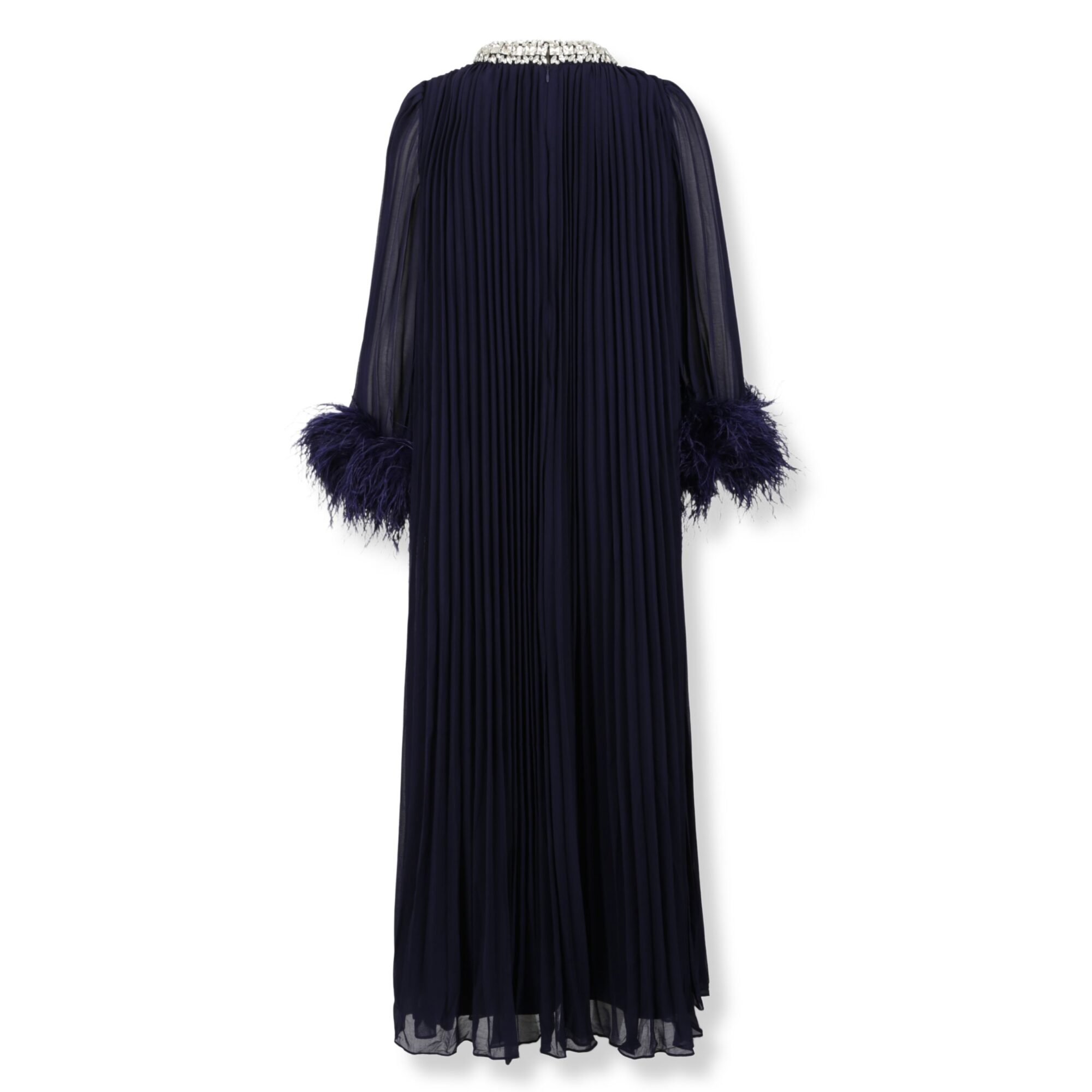 Chiffon Feather Midi Dress Self-Portrait. Vestibilità morbida e lavorazione plissé su tutto il corpo. Scollo con apertura a goccia rifinito in cristalli e polsini decorati con piume.