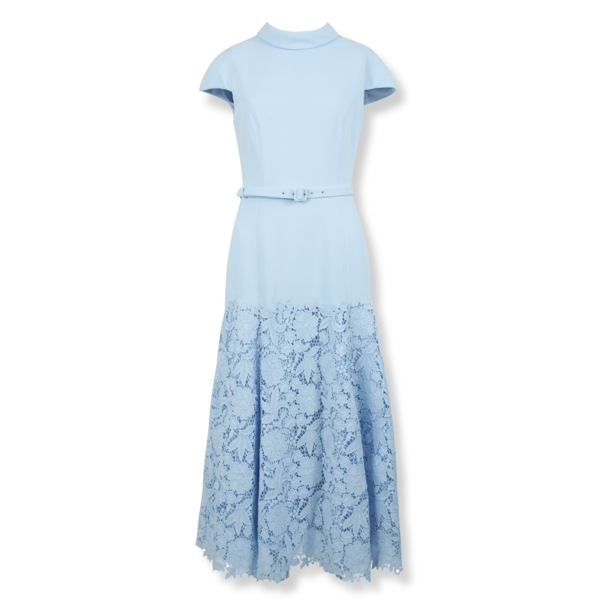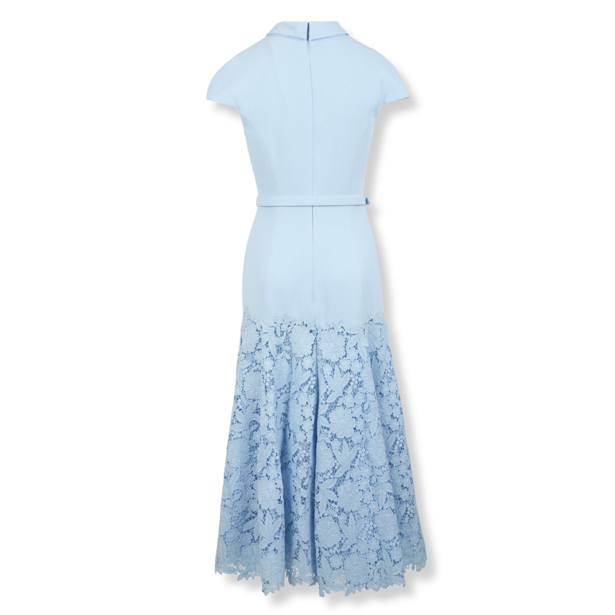 Midi Dress Self-Portrait. Design in crêpe, girocollo, cintura coordinata in vita e gonna in pizzo.