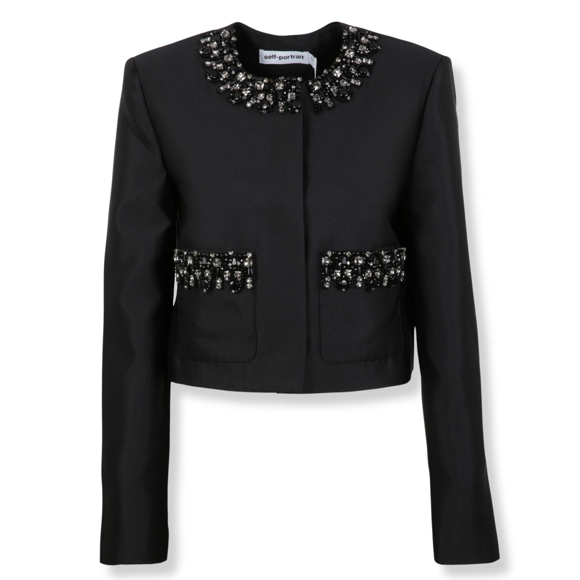 Embellished Trim Jacket Self-Portrait. Girocollo e taglio cropped. Scollo e due tasche frontali decorate con cristalli.