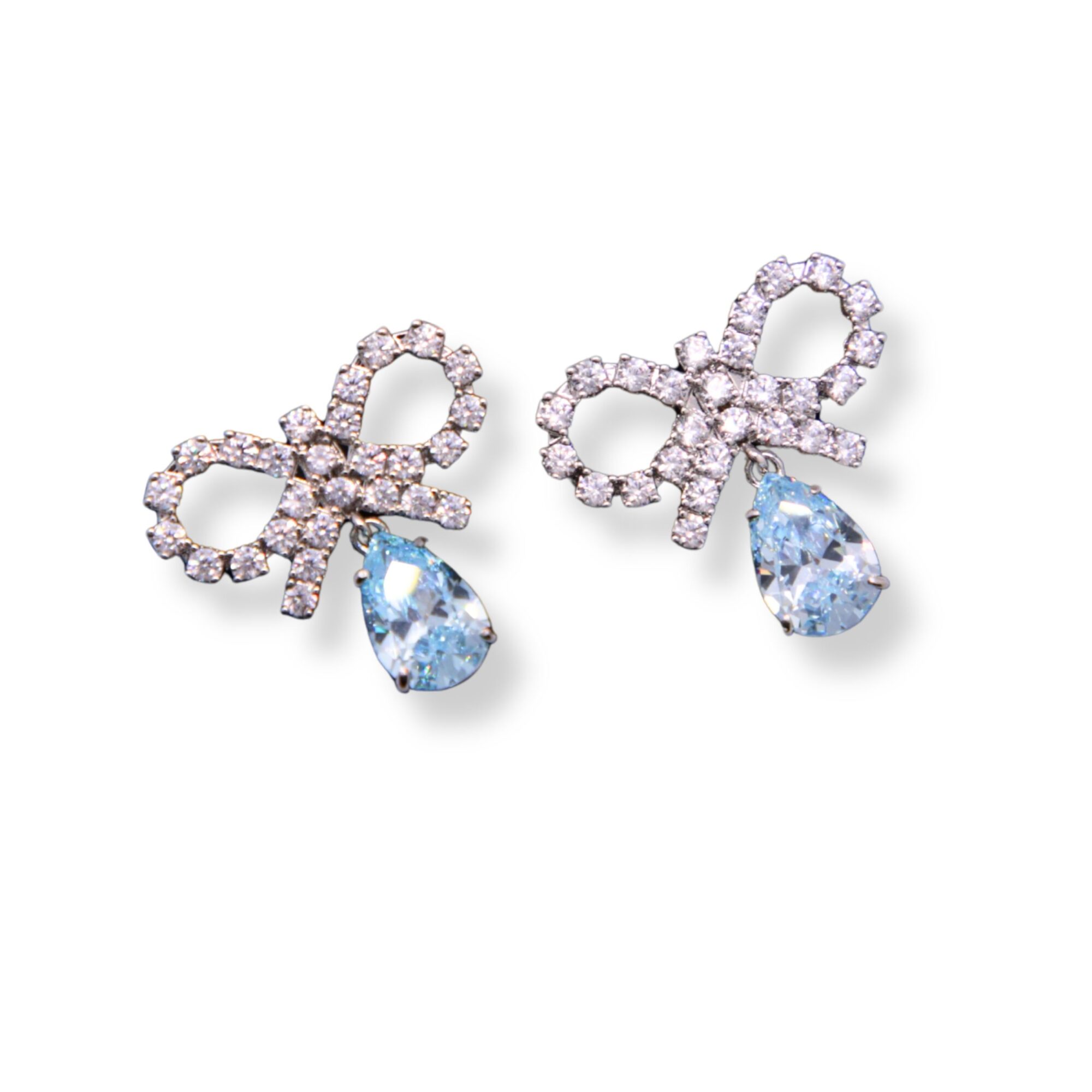 Micro Bow Droplet Earrings Self-Portrait. Design a fiocco con decorazioni in cristalli, grande pendente a goccia in cristallo.