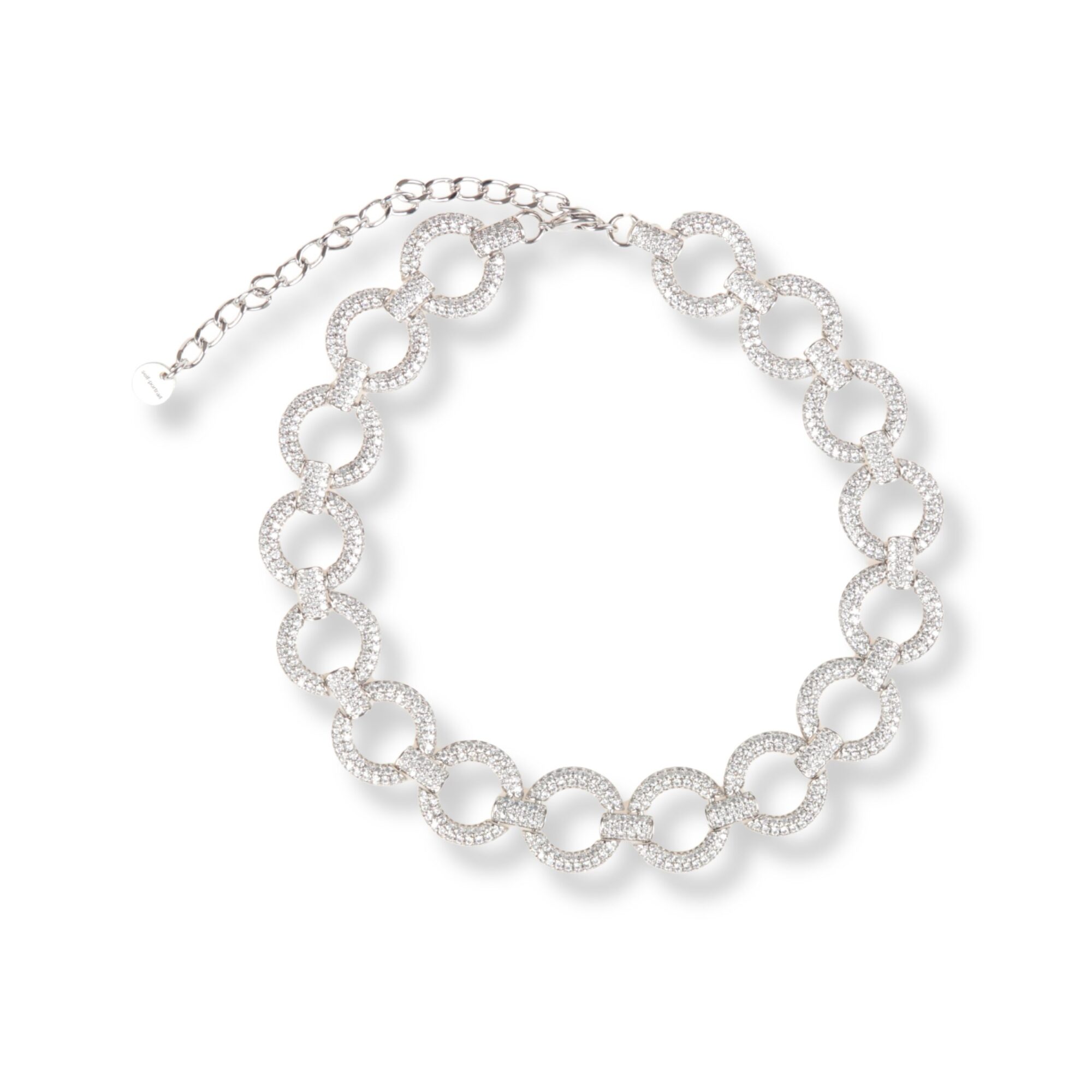 Crystal Link Three Tiered Earrings. Modello a catena con tre anelli, decorati con pavé di cristalli.