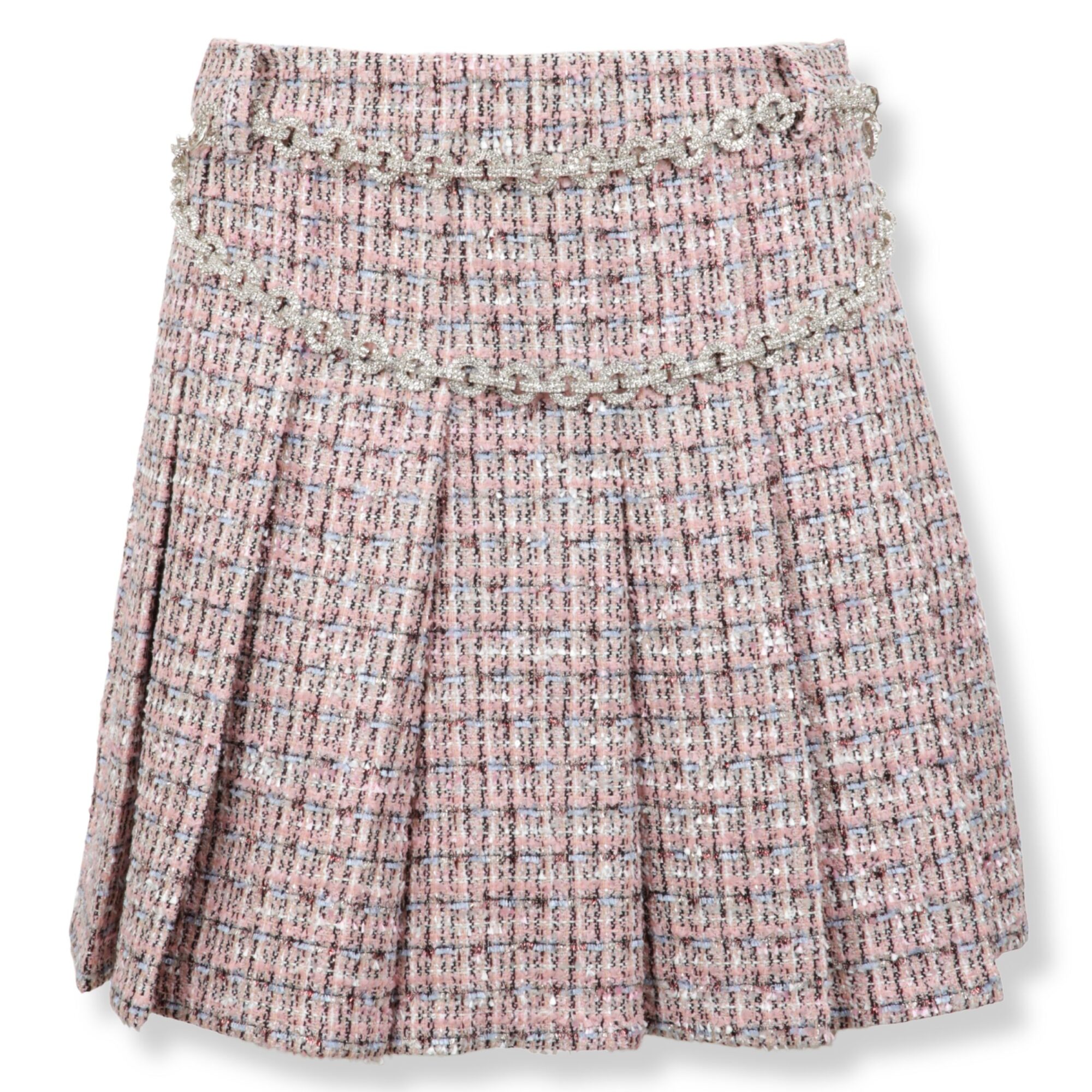 Bouclé Crystal Belt Mini Skirt Self-Portrait. Minigonna plissettata in bouclé, impreziosita da una cintura con catena di strass.