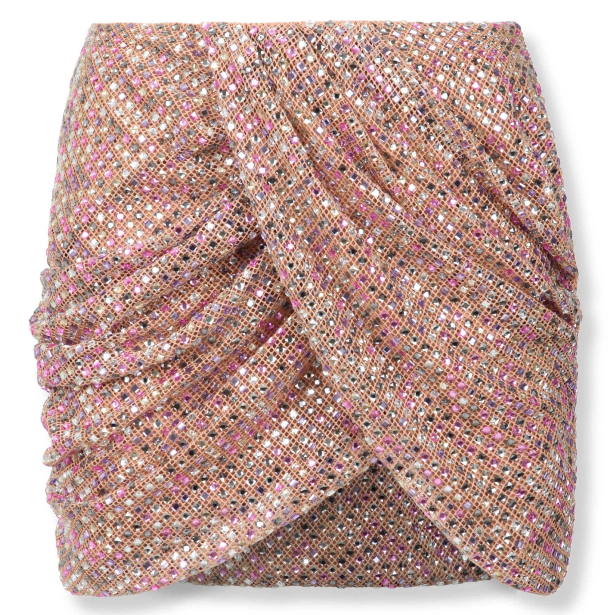 Multi Rhinestone Fishnet Mini Skirt Self-Portrait. Design aderente, decorata con strass su tutta la superficie, orlo mini con drappeggio sul davanti.