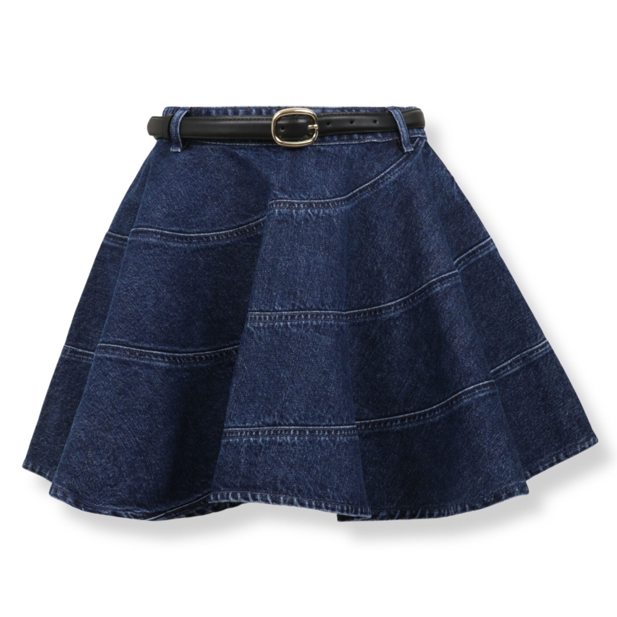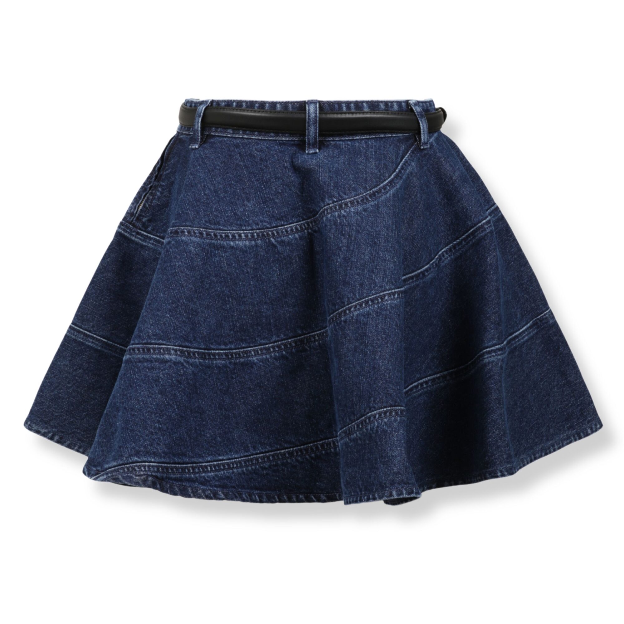 Flared Denim Mini Skirt Self-Portrait. Corpo svasato con cuciture a spirale, cintura coordinata in vita.