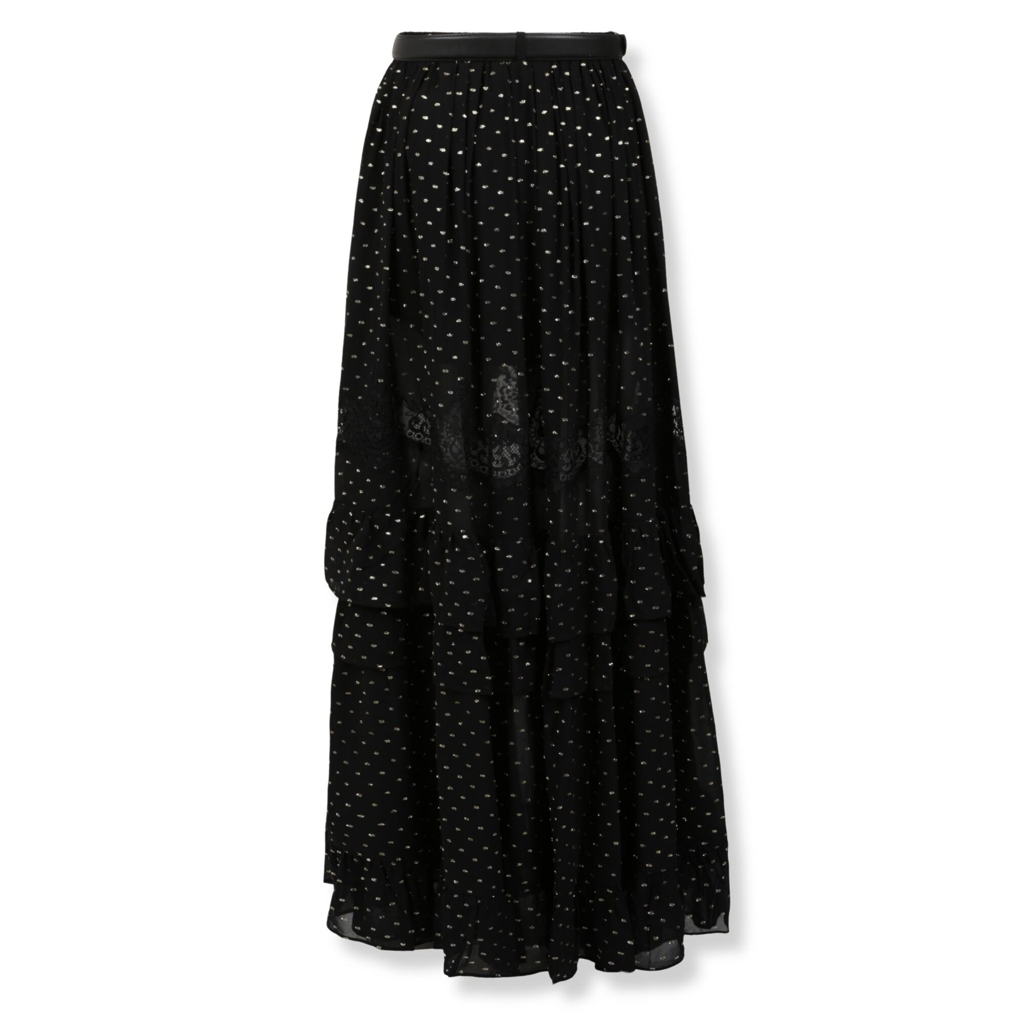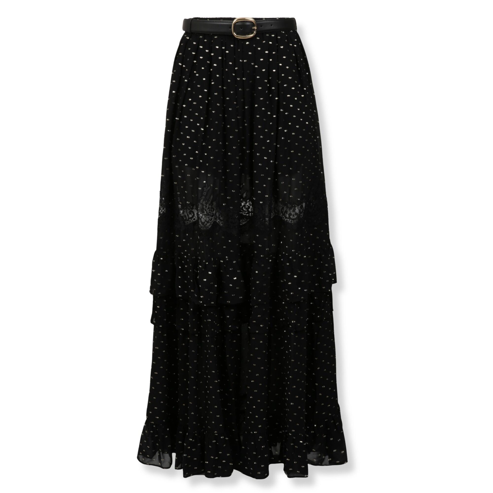 Chiffon Lace Maxi Skirt Self-Portrait. Design con lavorazione a fil coupé e balze voluminose, inserti in pizzo e cintura coordinata in vita.
