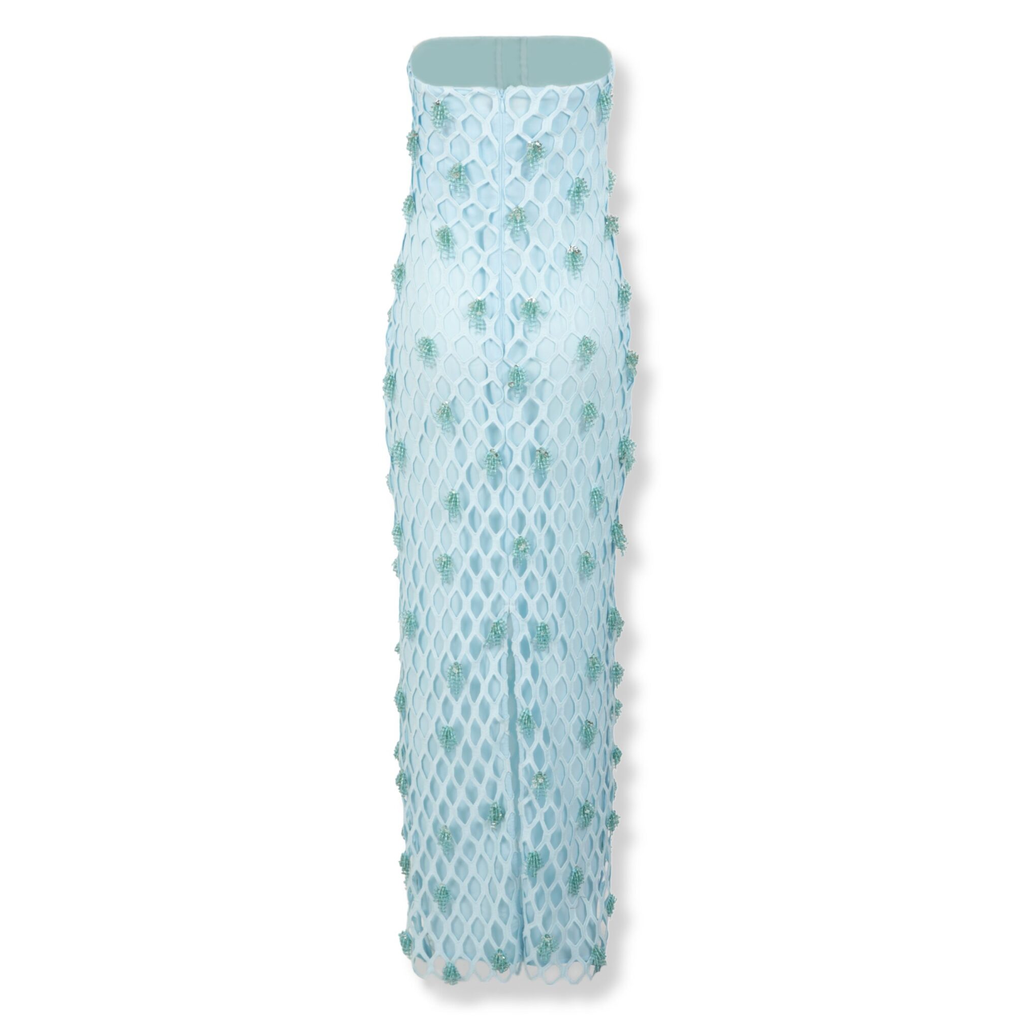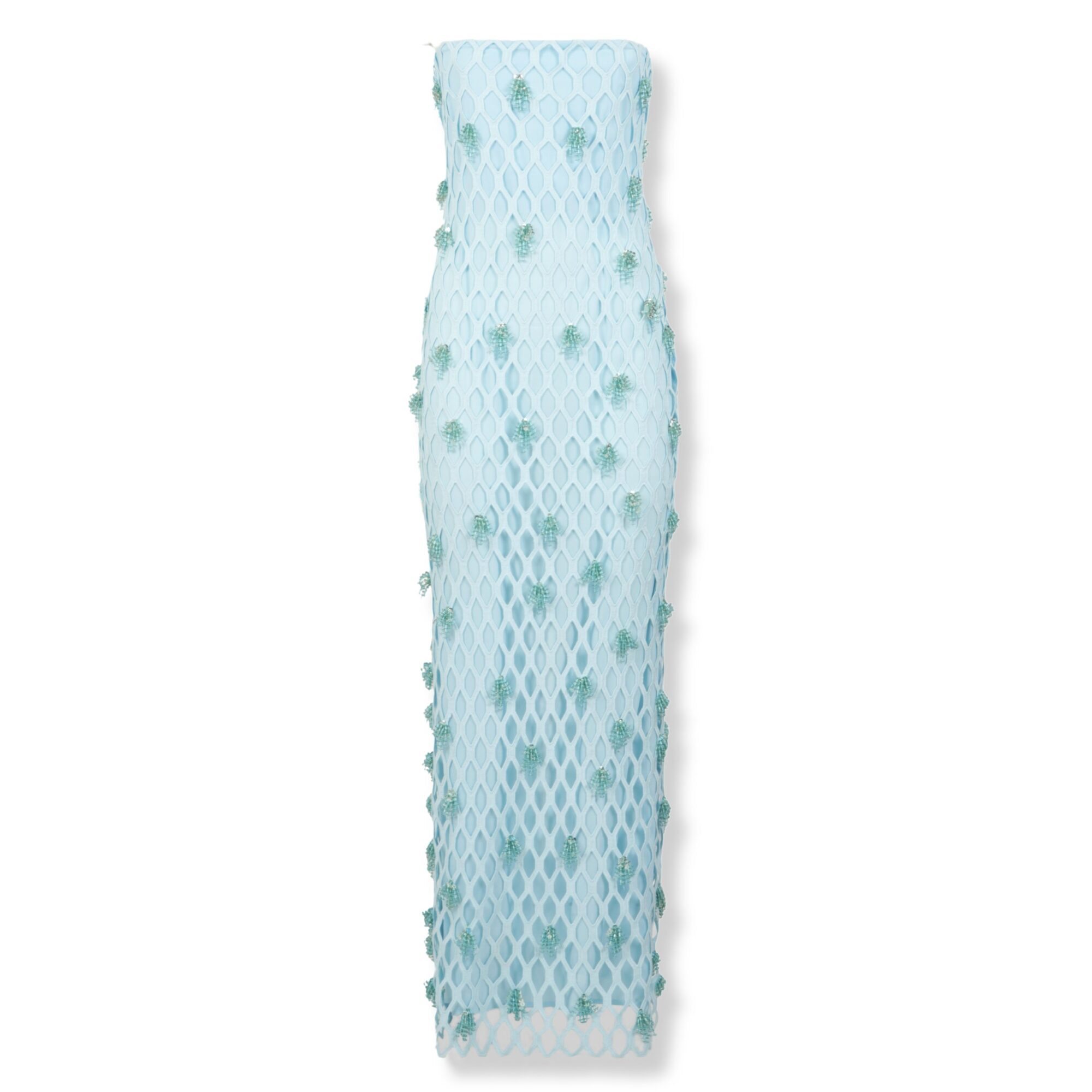 Iridessa Gown Simkhai. Silhouette a colonna con fit aderente, design con lavorazione a rete e applicazioni in perline decorative su tutta la superficie.