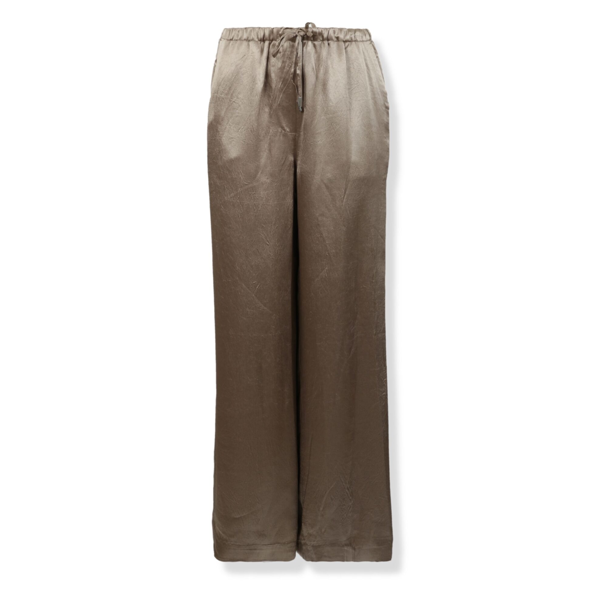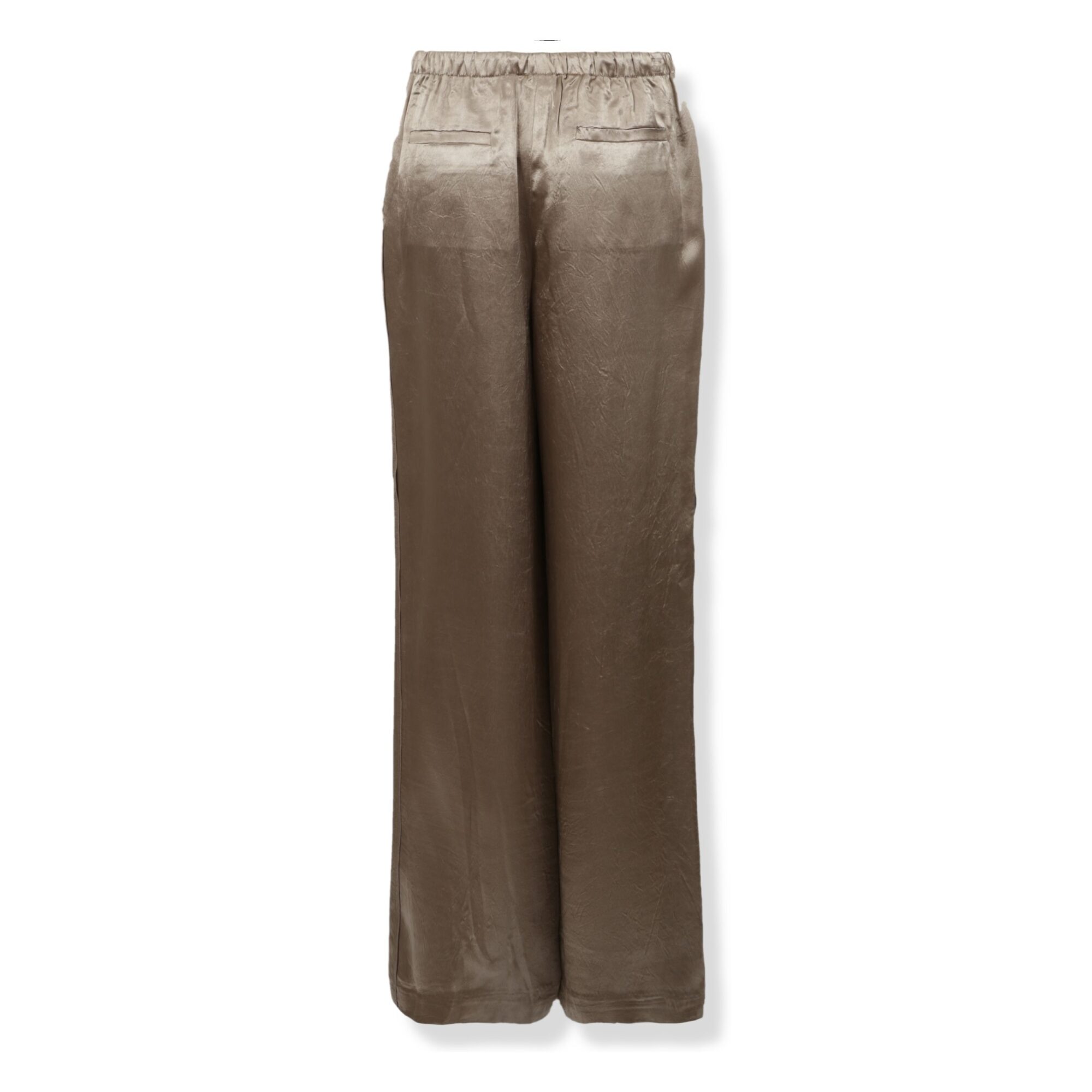 Pantaloni Satinati Simkhai. Orlo dritto e vita elasticizzata con coulisse, due tasche laterali e due tasche posteriori a filetto.