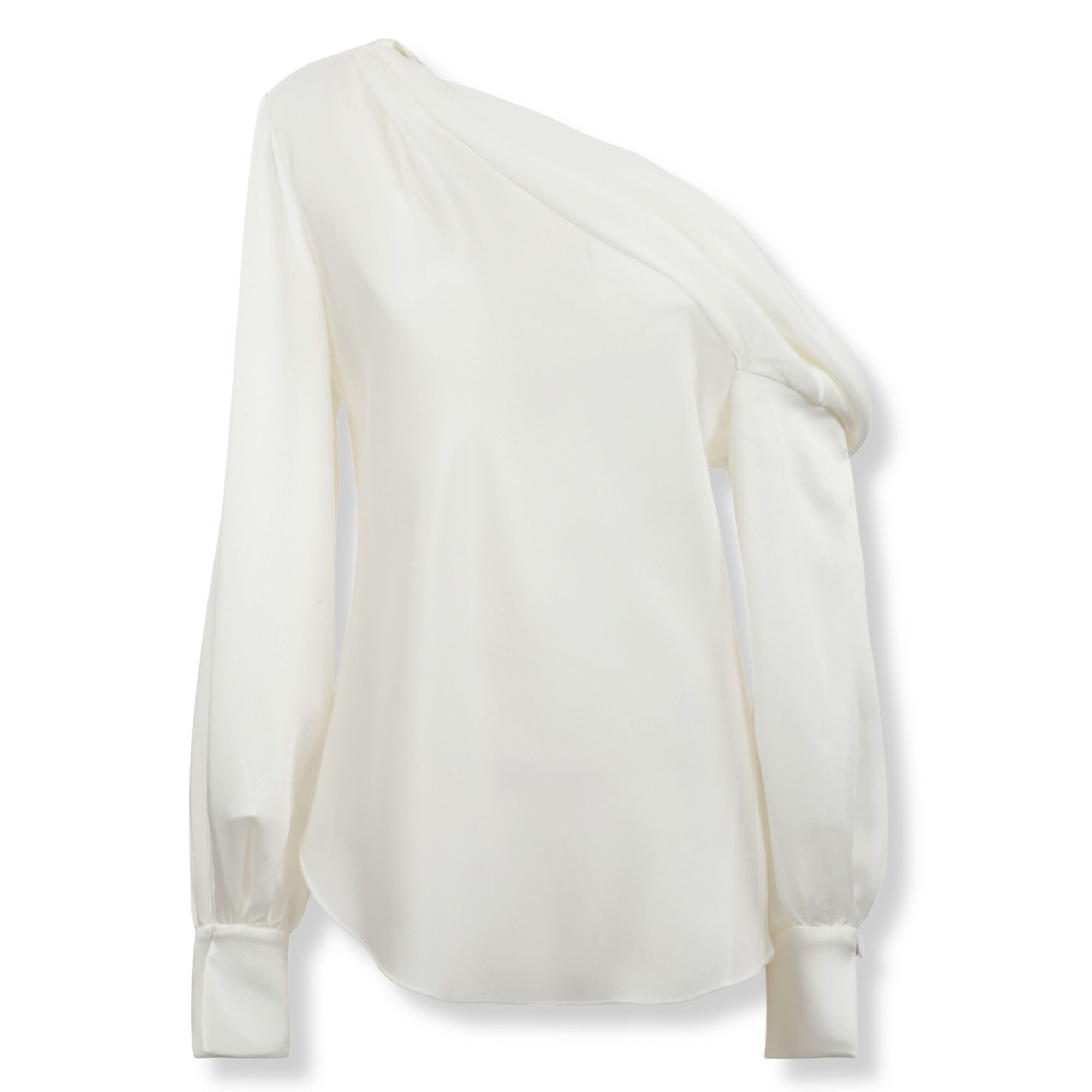 Alice Top Simkhai. In raso con finitura lucida, spalla sinistra scoperta e polsini abbottonati.