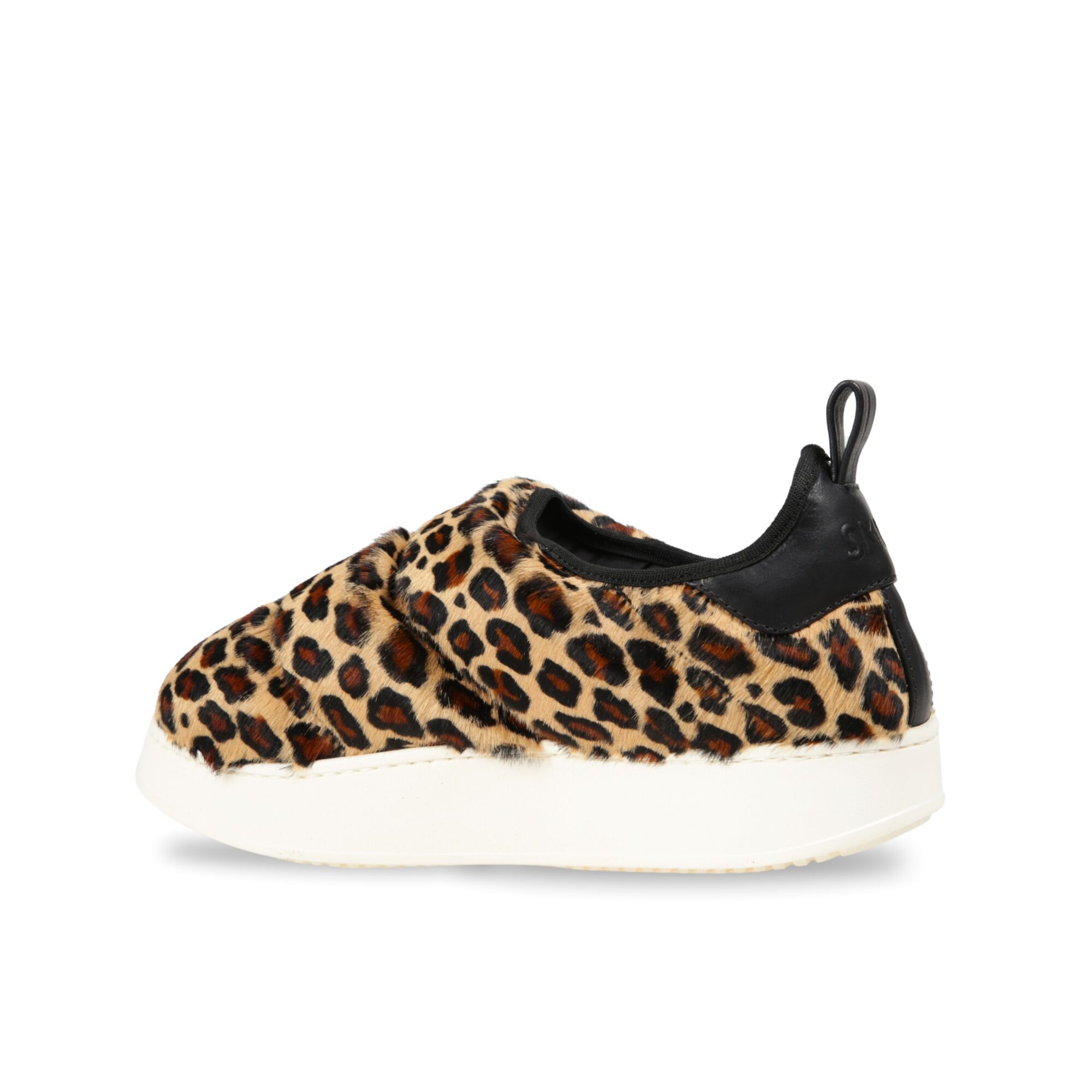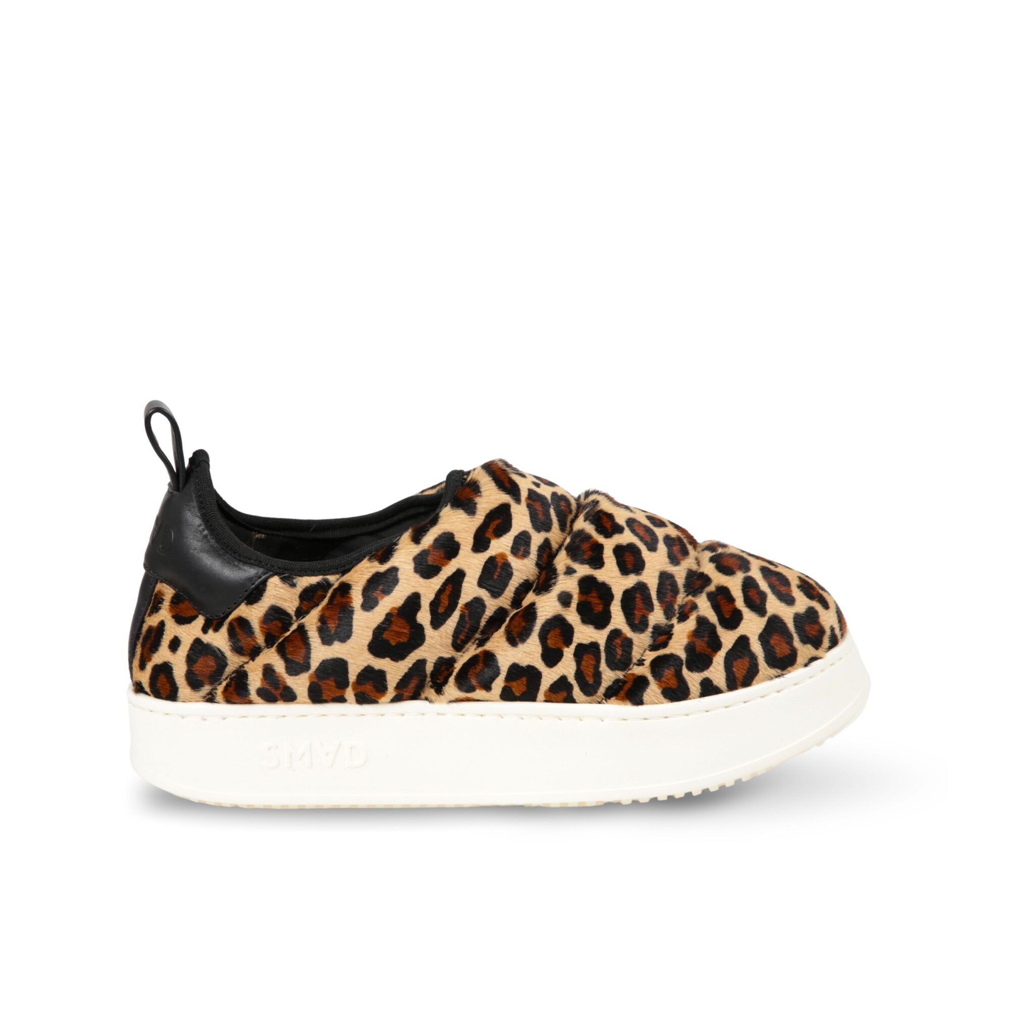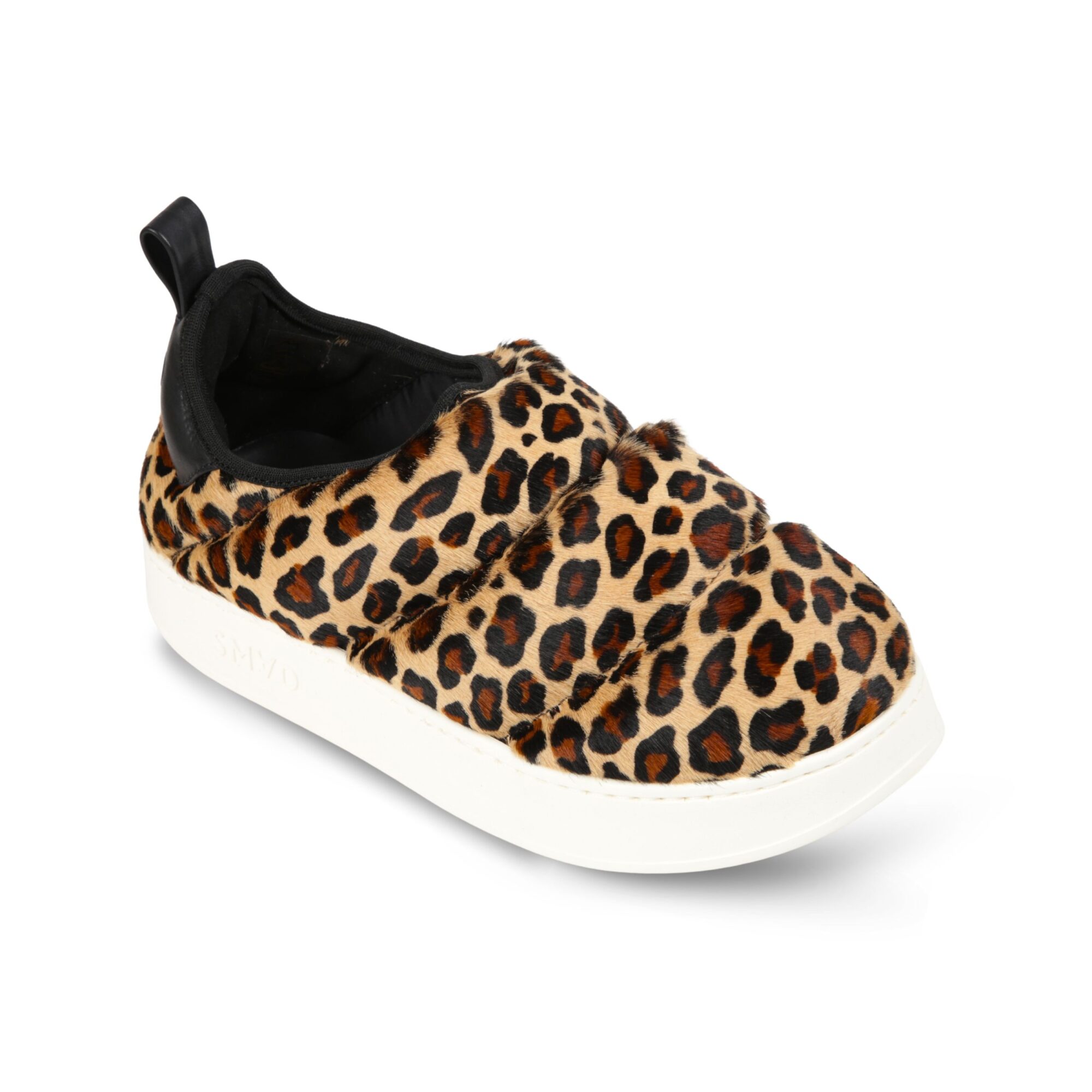 Slip-on Smad. Design in stile puffer, con finitura in cavallino effetto leopardato. Suola chunky dentellata e talloncino in pelle lucida con pull-tab coordinato.