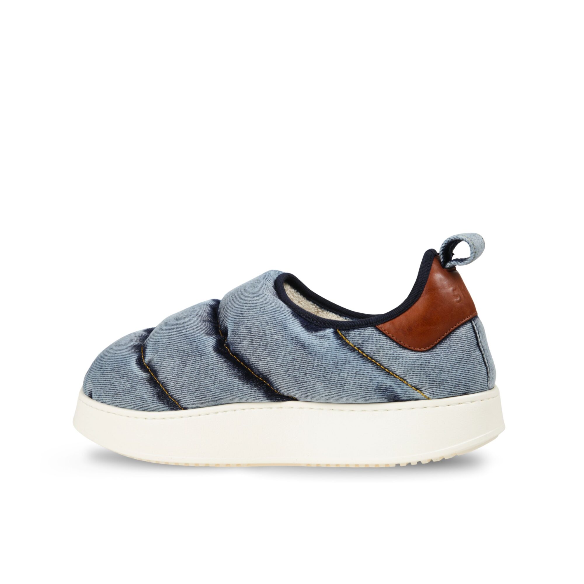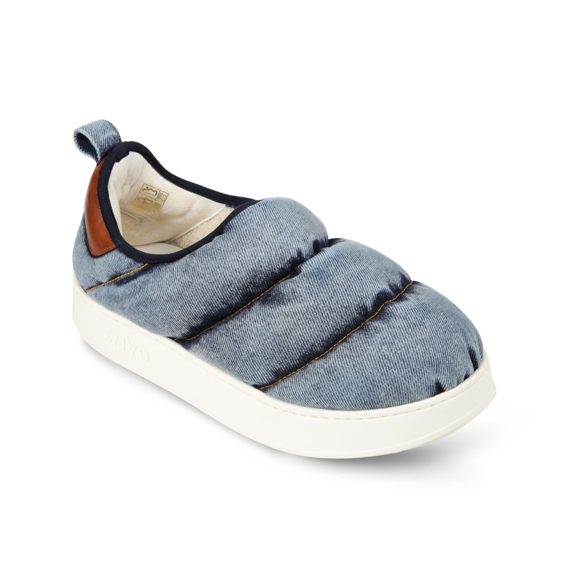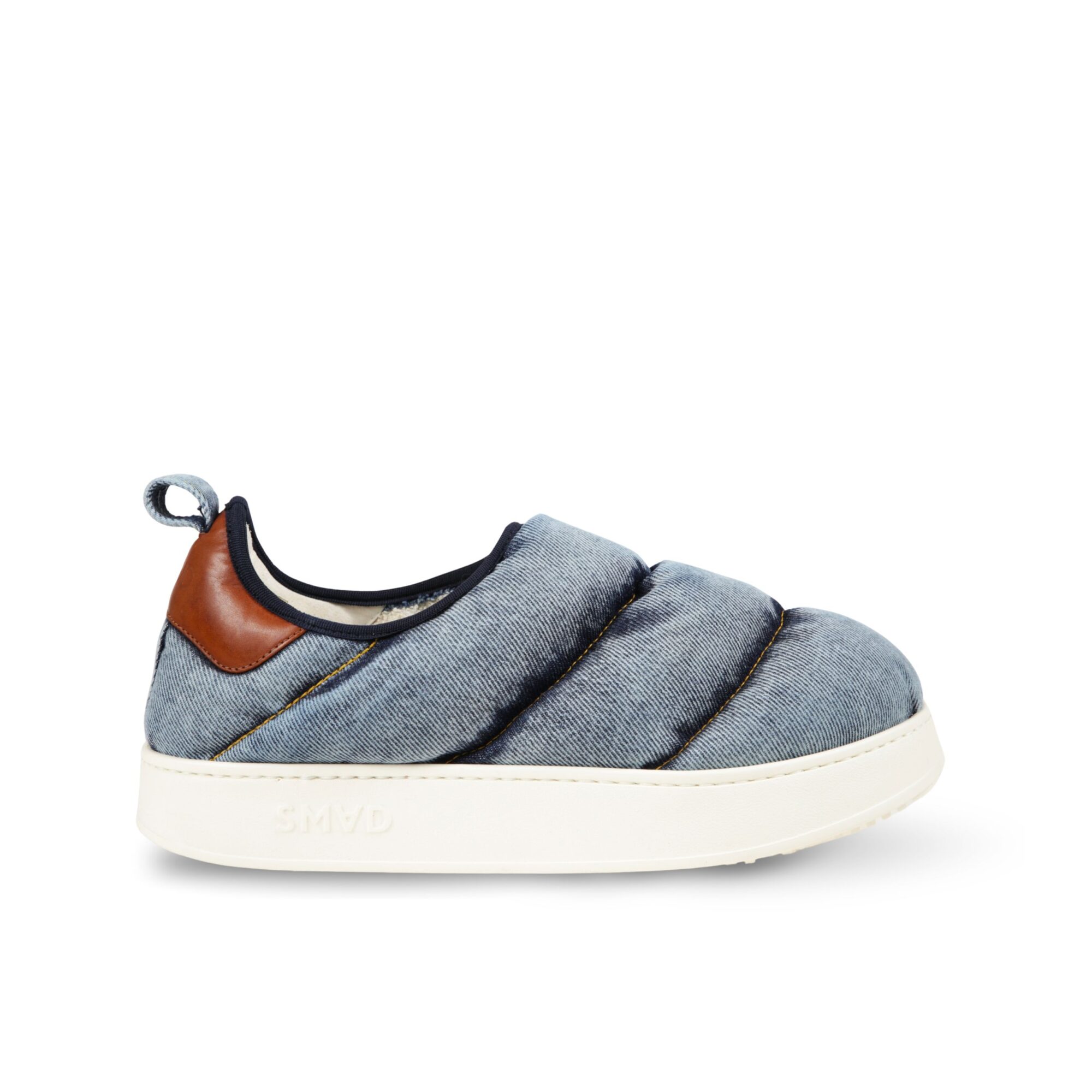 Slip-on Smad. Design in denim con cuciture in contrasto, stile puffer. Talloncino in pelle e suola in gomma alta.