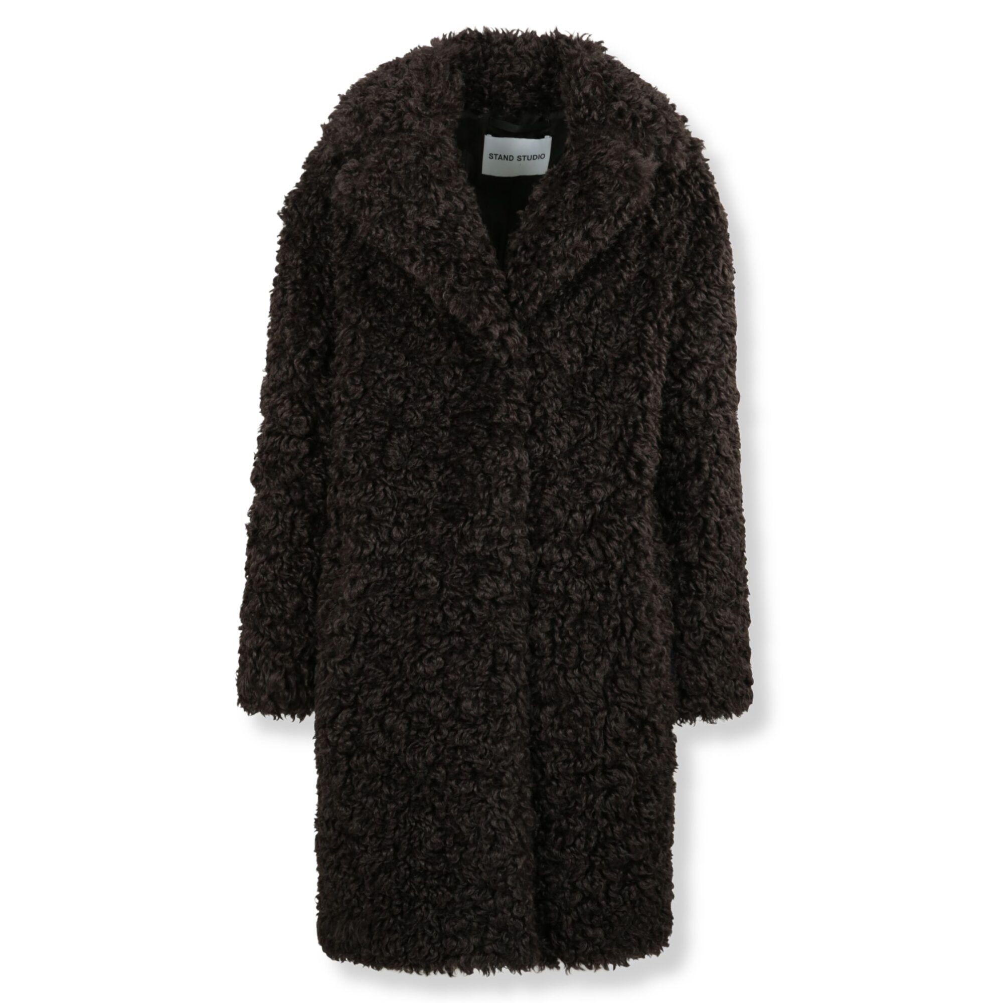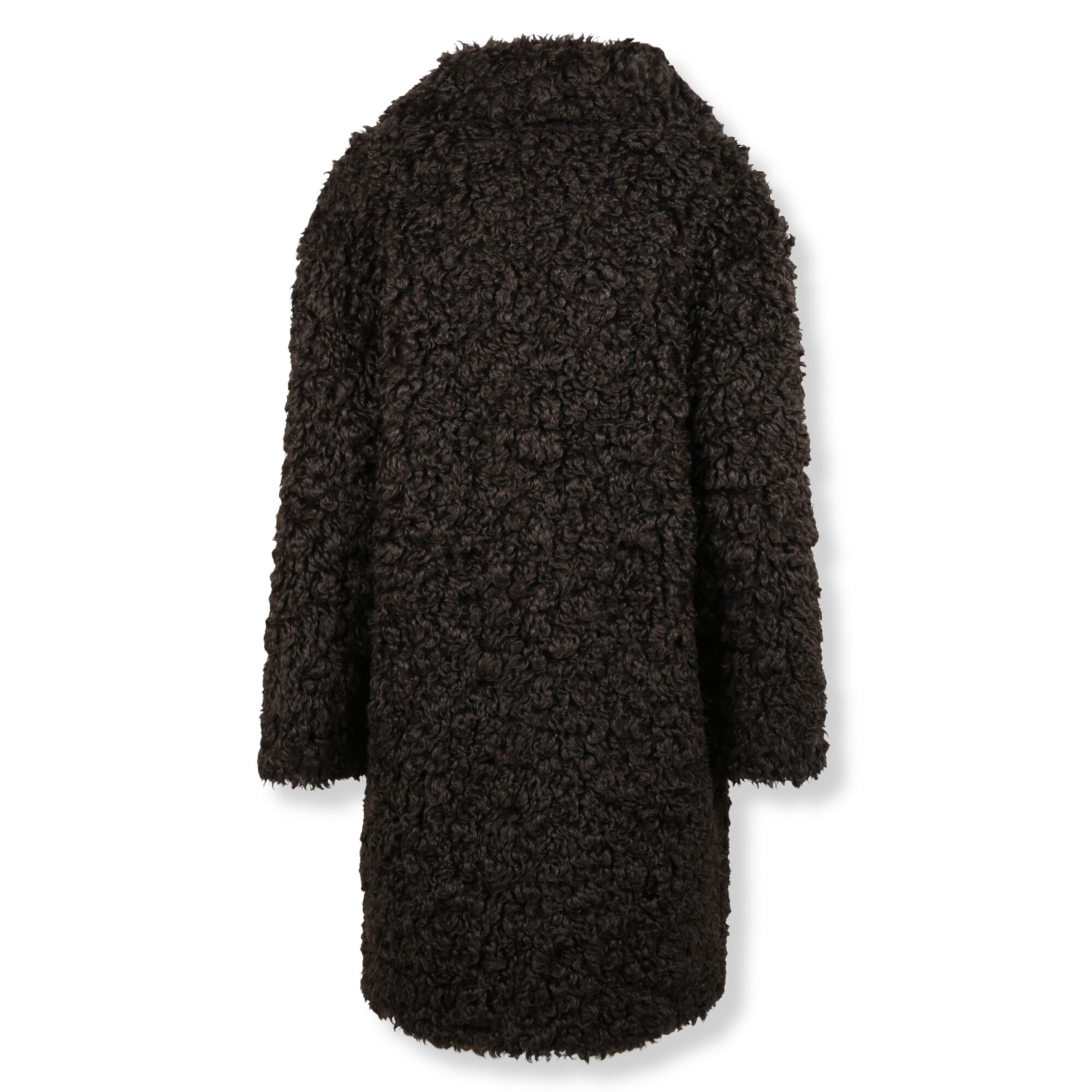 Camille Cocoon Coat Stand Studio. Design in pelliccia riccia, con scollo a V e vestibilità con spalle scese. Chiusura frontale con bottoni a pressione nascosti e tasche laterali a filetto.