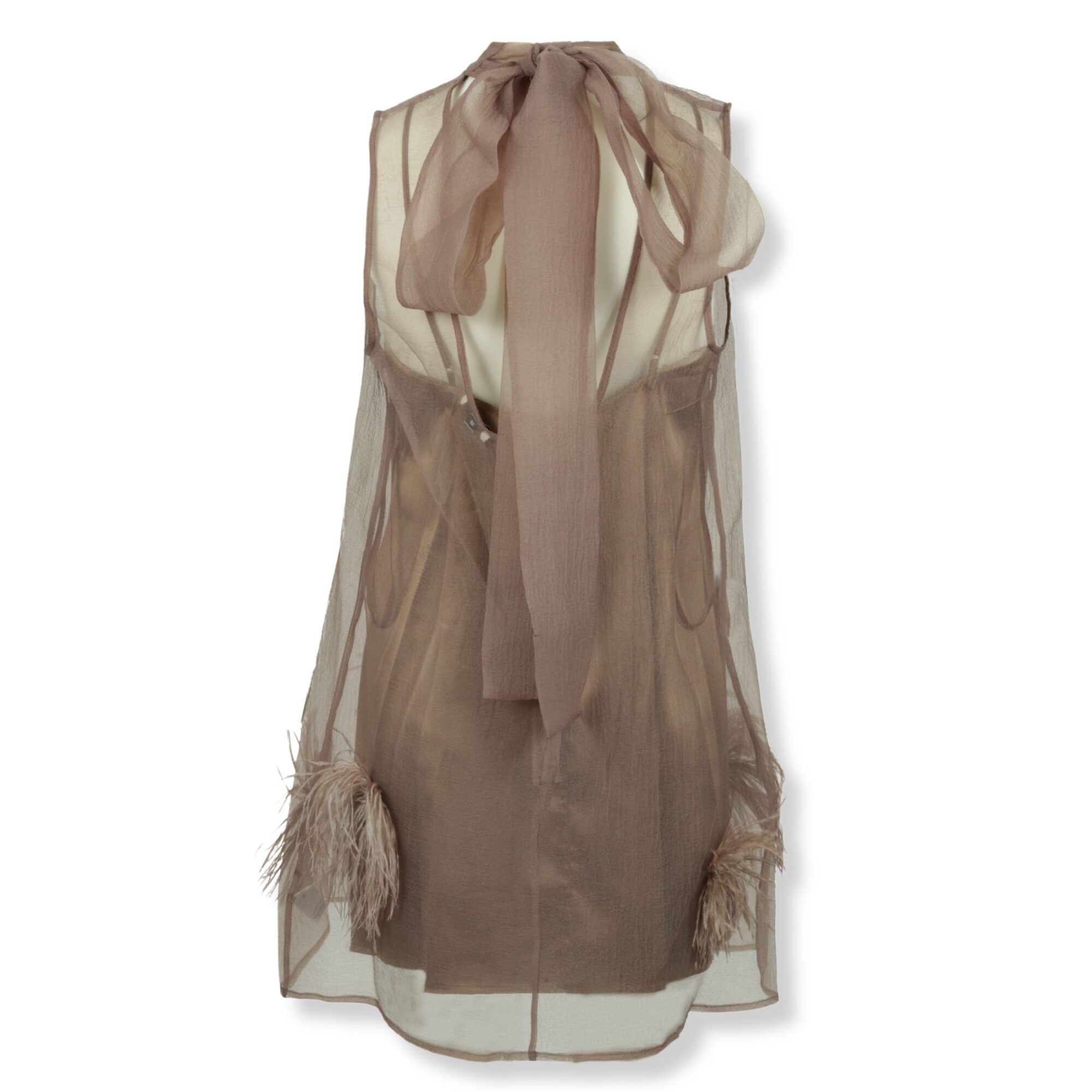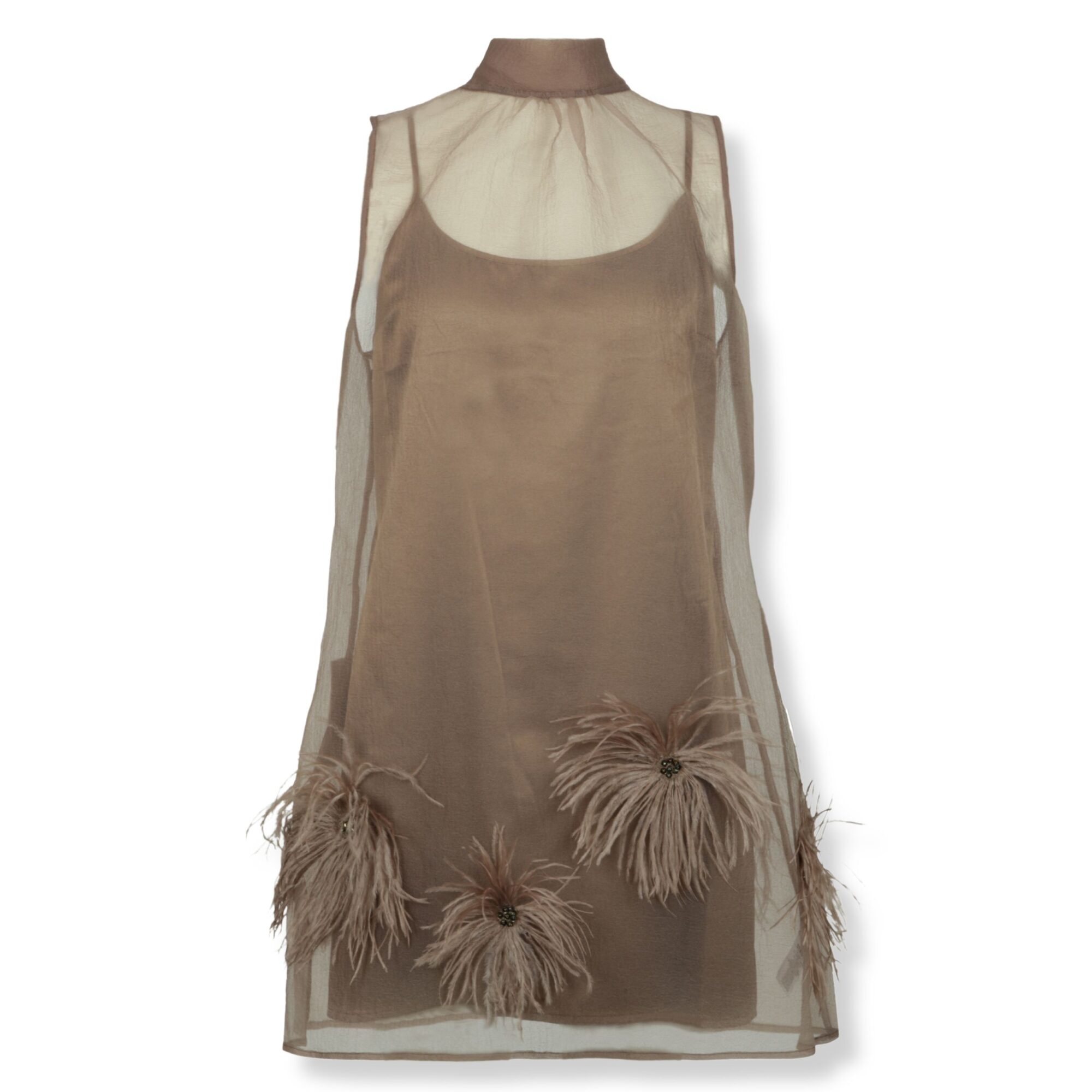 Albee Mini Dress Staud. Semitrasparente con sottoveste interna, smanicato, collo alto con fiocco sul retro ed applicazioni di fiori decorativi sul davanti.