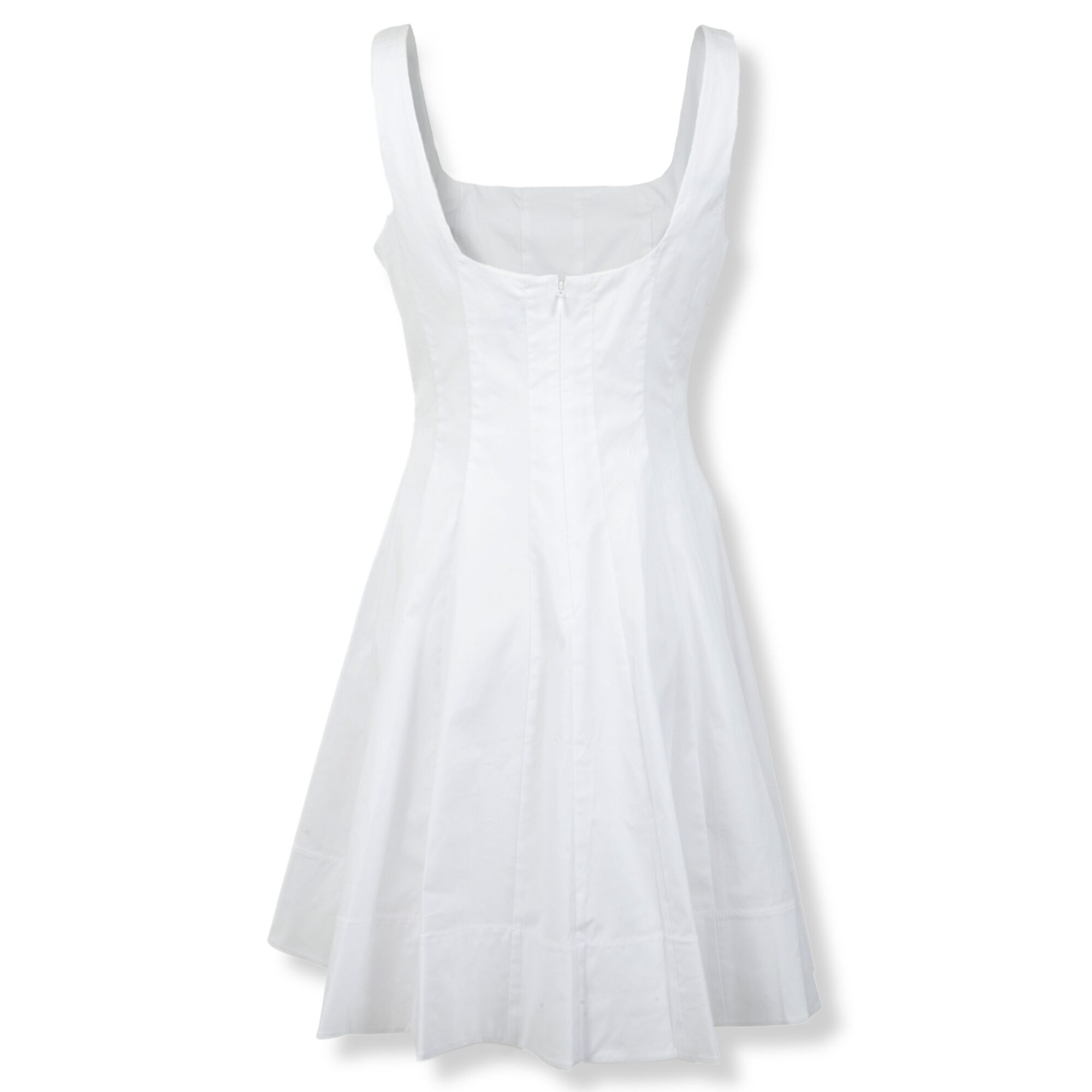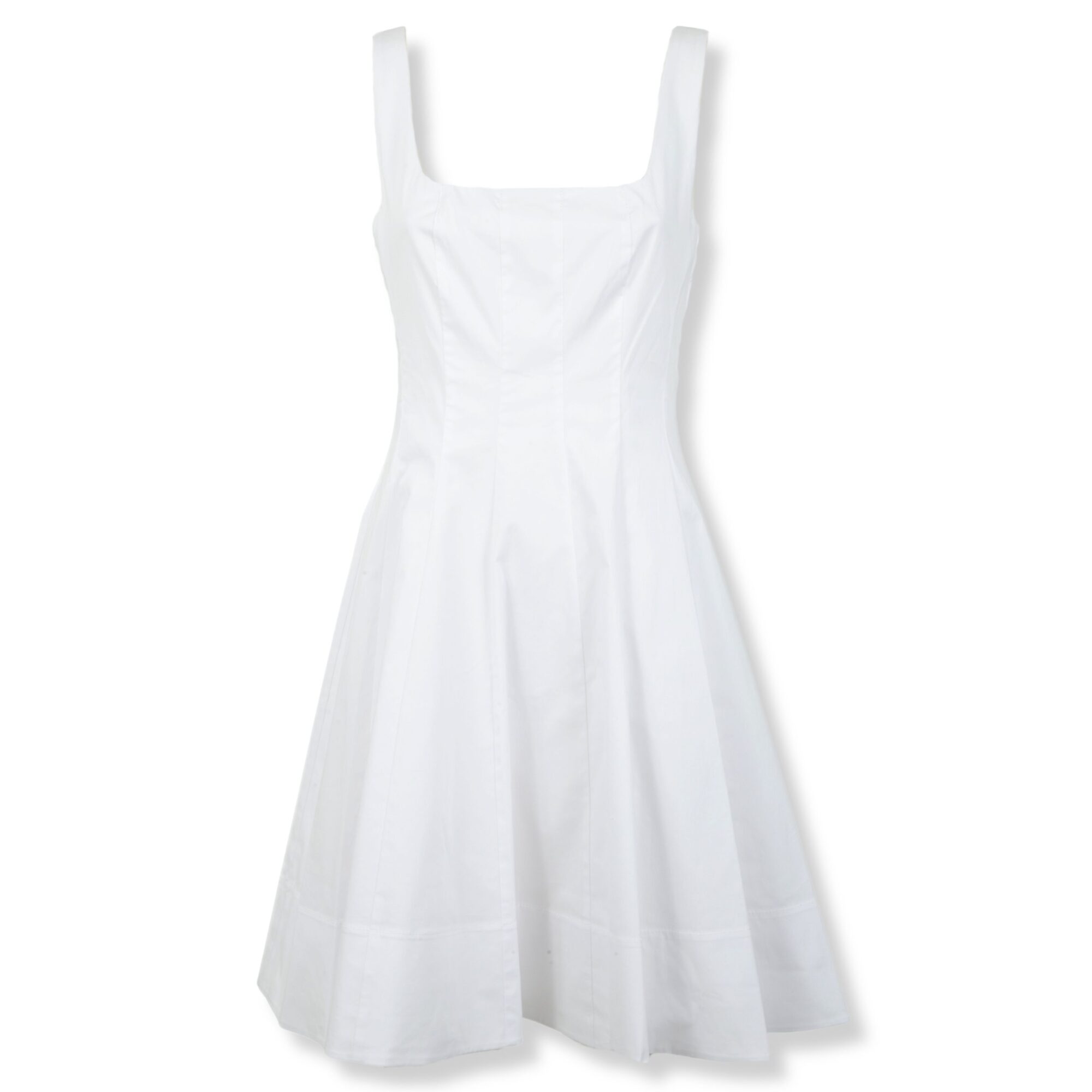 Mini Wells Dress Staud. Design in popeline di cotone stretch, scollo quadrato con spalline larghe, gonna svasata.