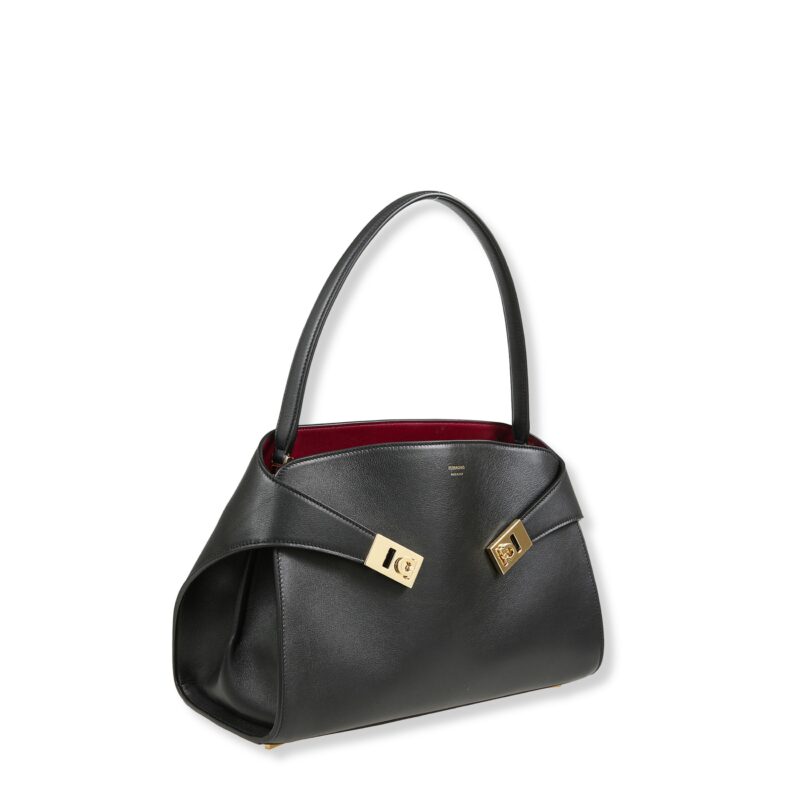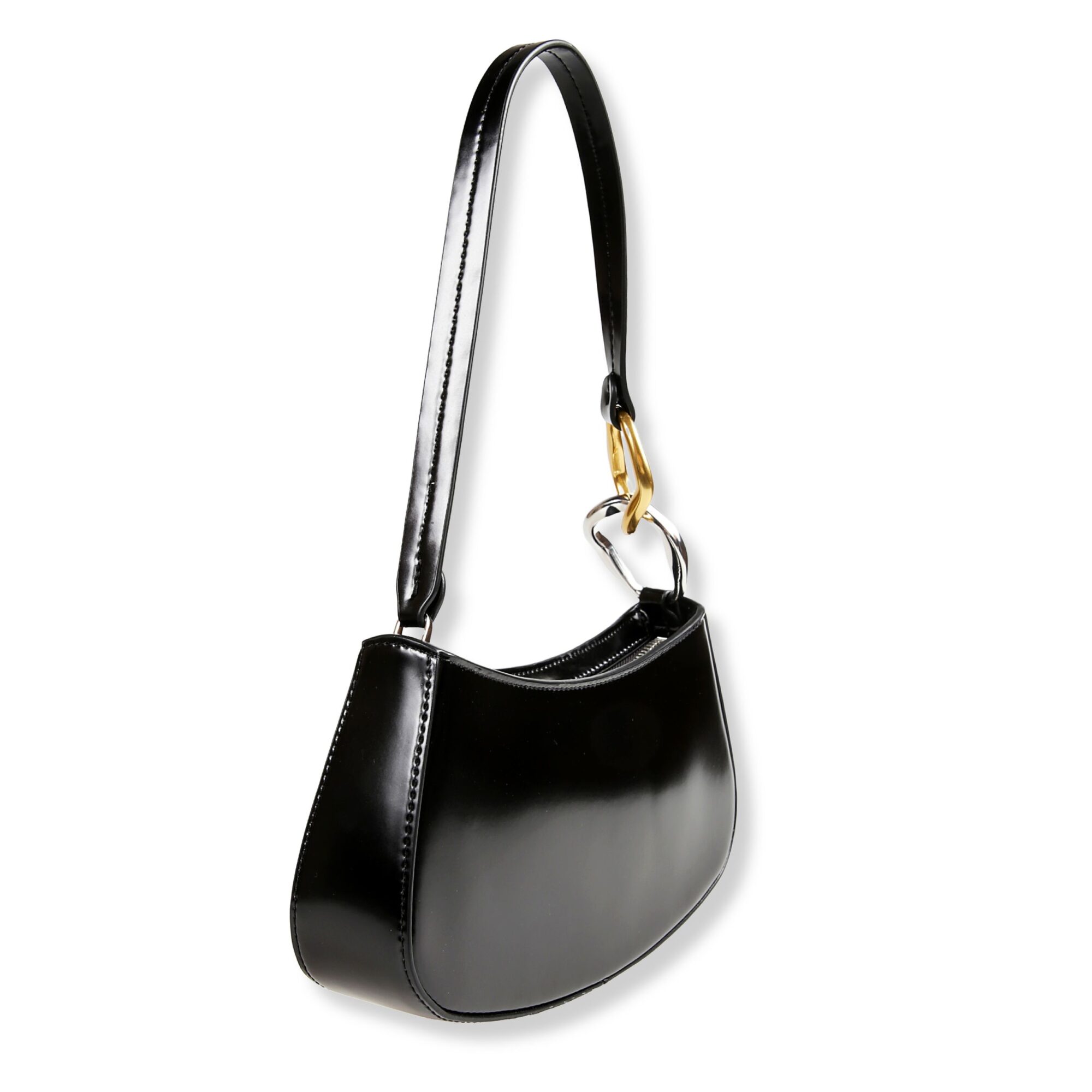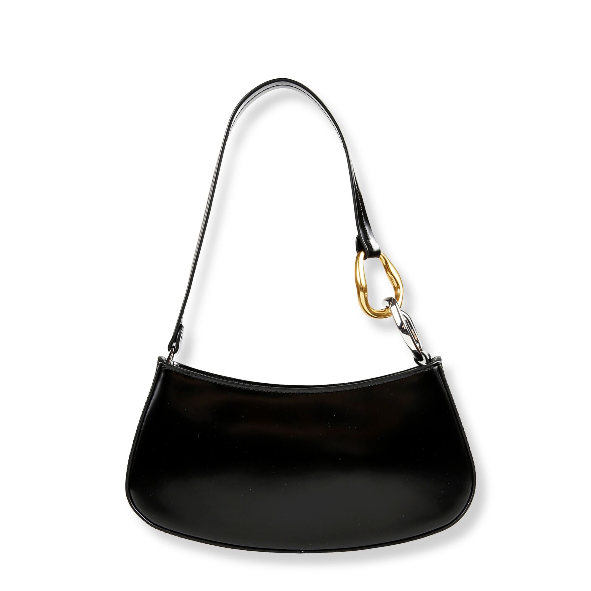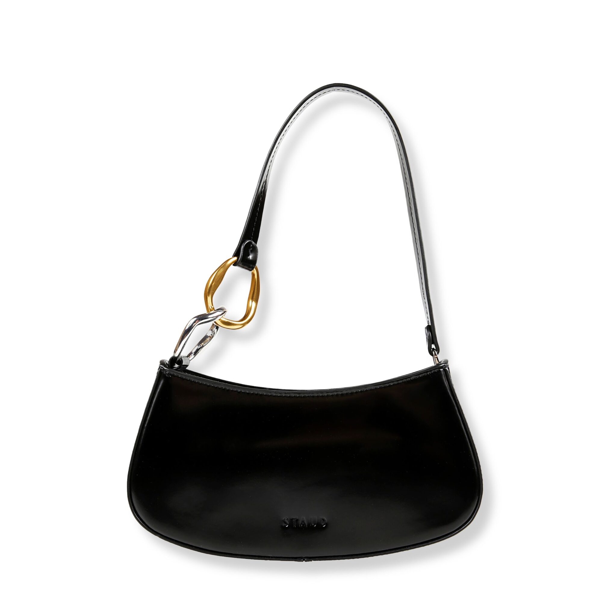 Ollie Bag Black Staud. Design in pelle lucida, tracolla con dettagli metallici bicolore e chiusura con zip superiore.