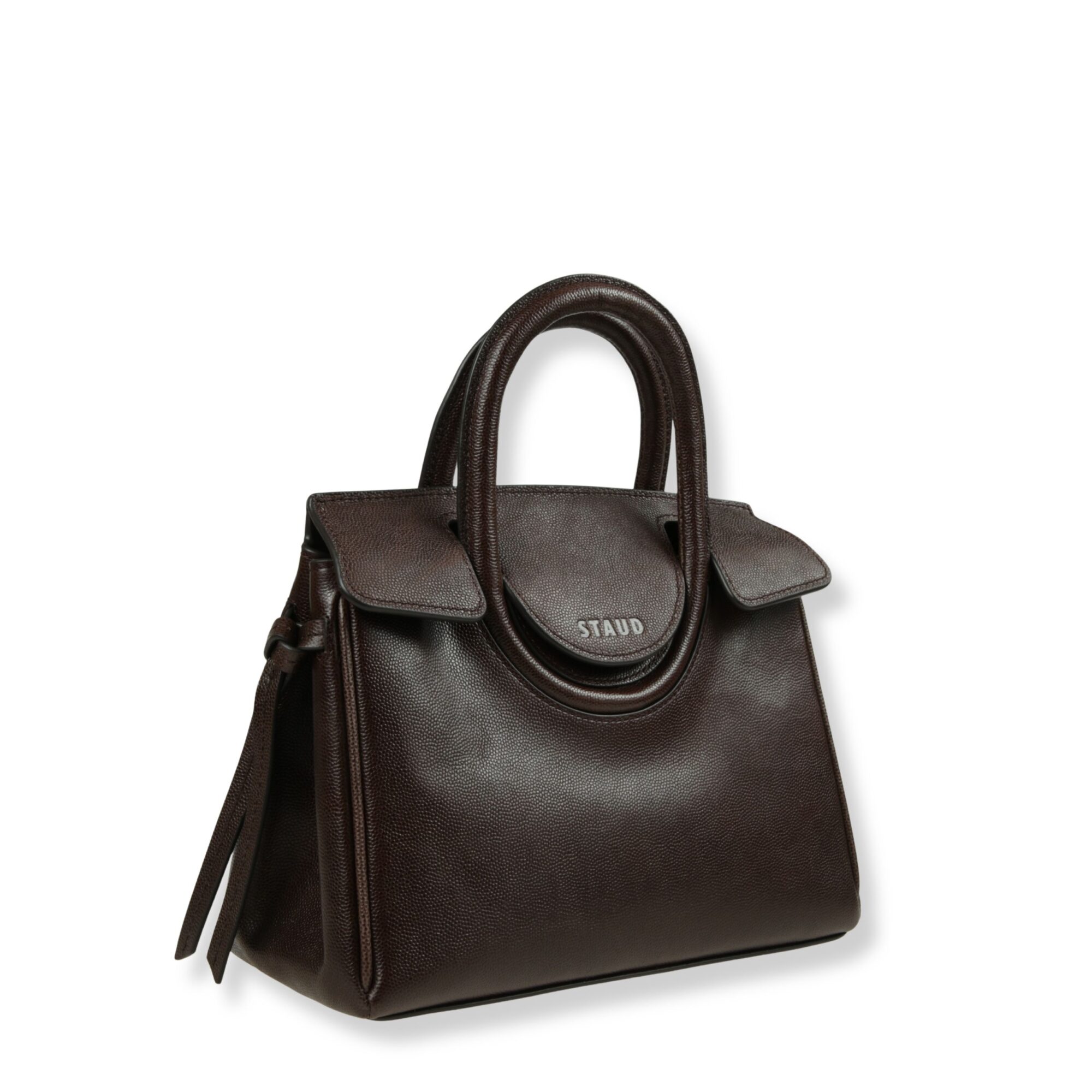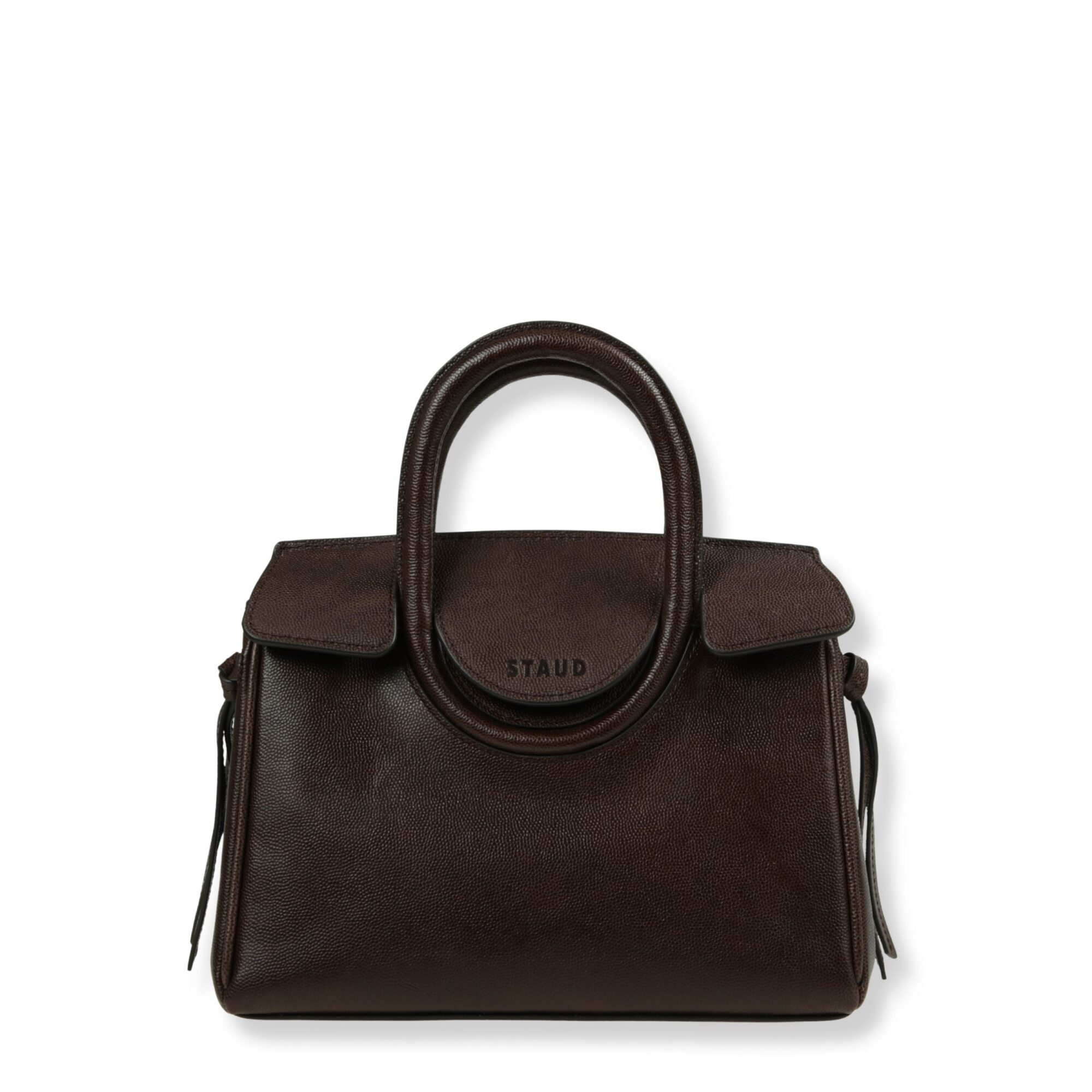 Maude Shoulder Bag Staud. Iconico doppio manico e chiusura frontale con patta, dotata di tracolla removibile.
