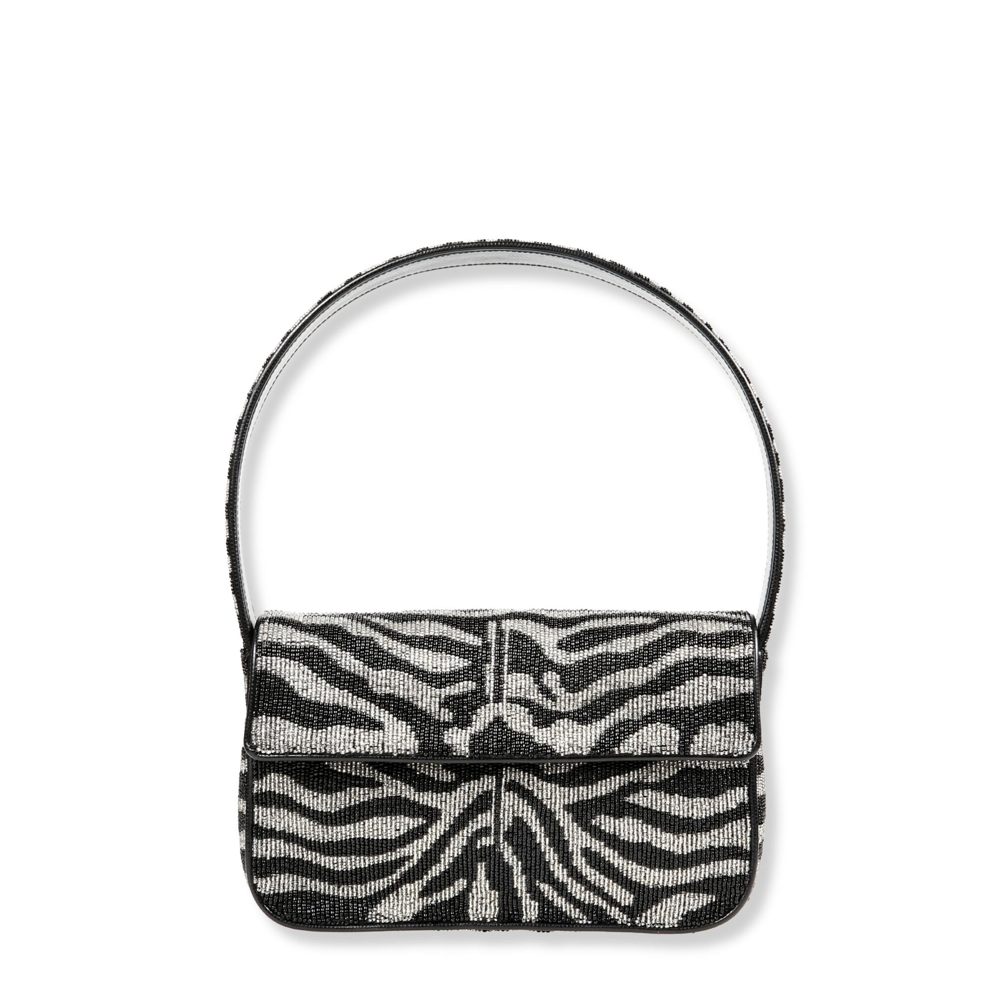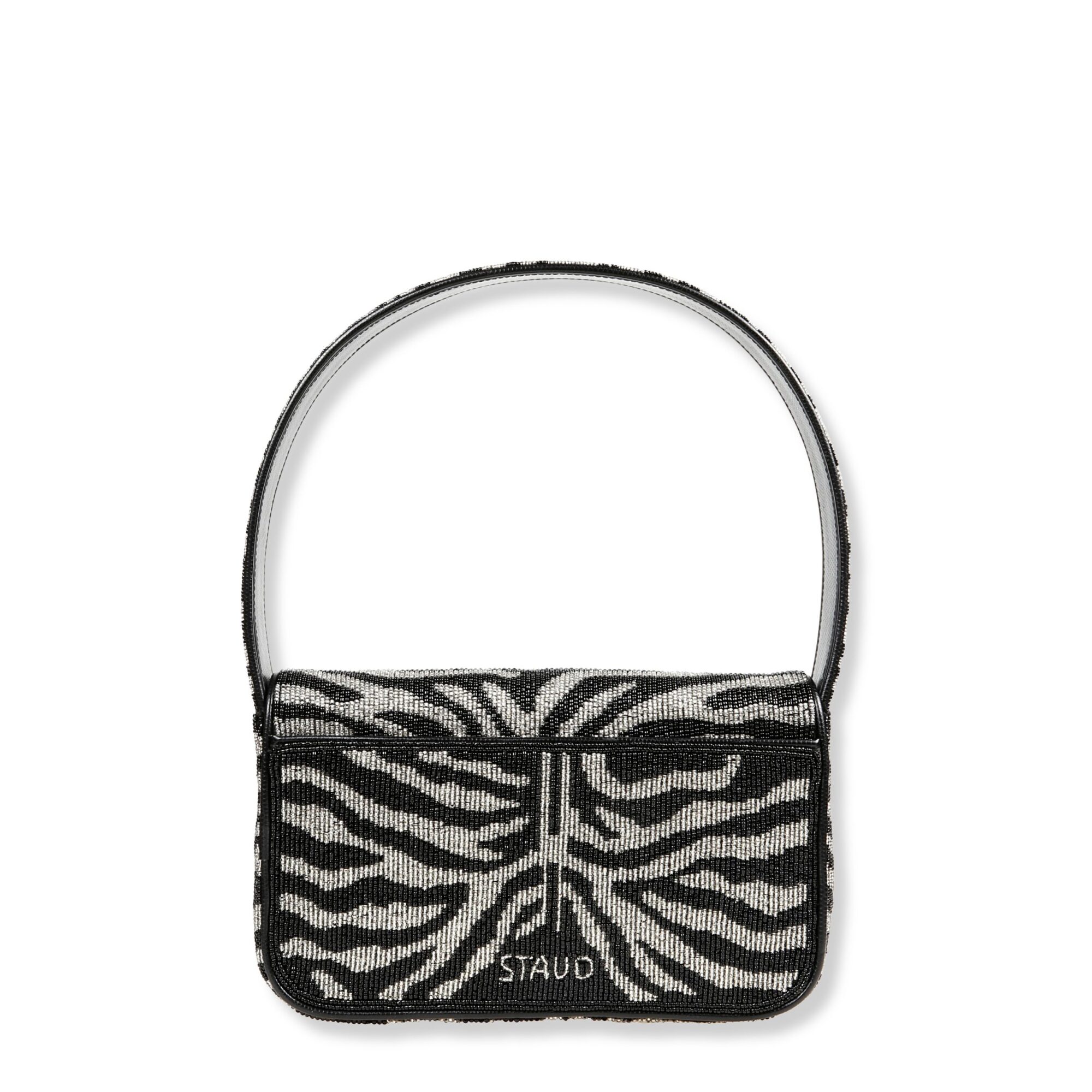 Tommy Beaded Bag Staud. Lavorazione all-over con perline, bordi rifiniti in pelle, chiusura con patta frontale, tasca posteriore.