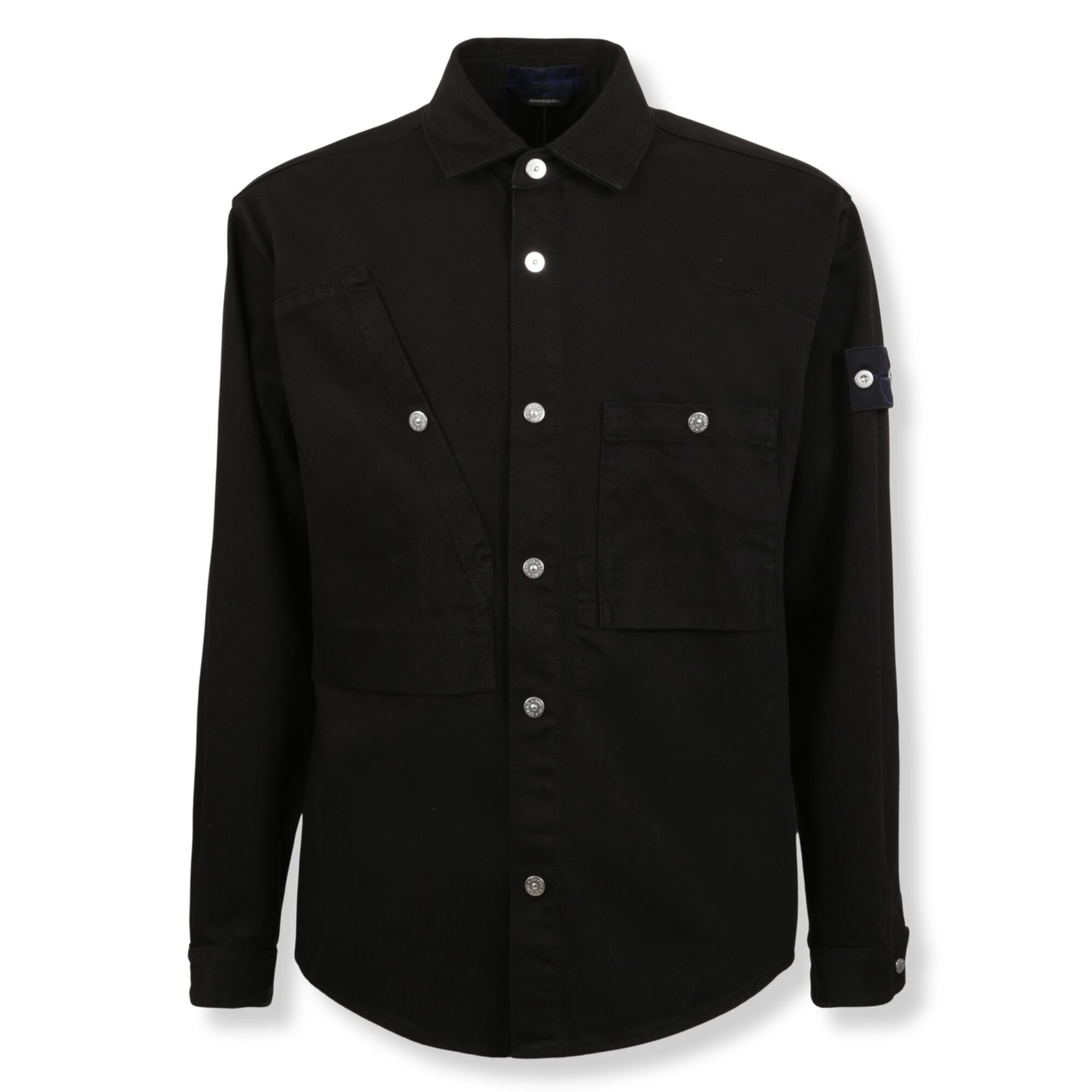 Overshirt in denim Stone Island. Vestibilità regular e chiusura con bottoni automatici. Tasche multiple sul petto e badge con logo del brand sulla manica.