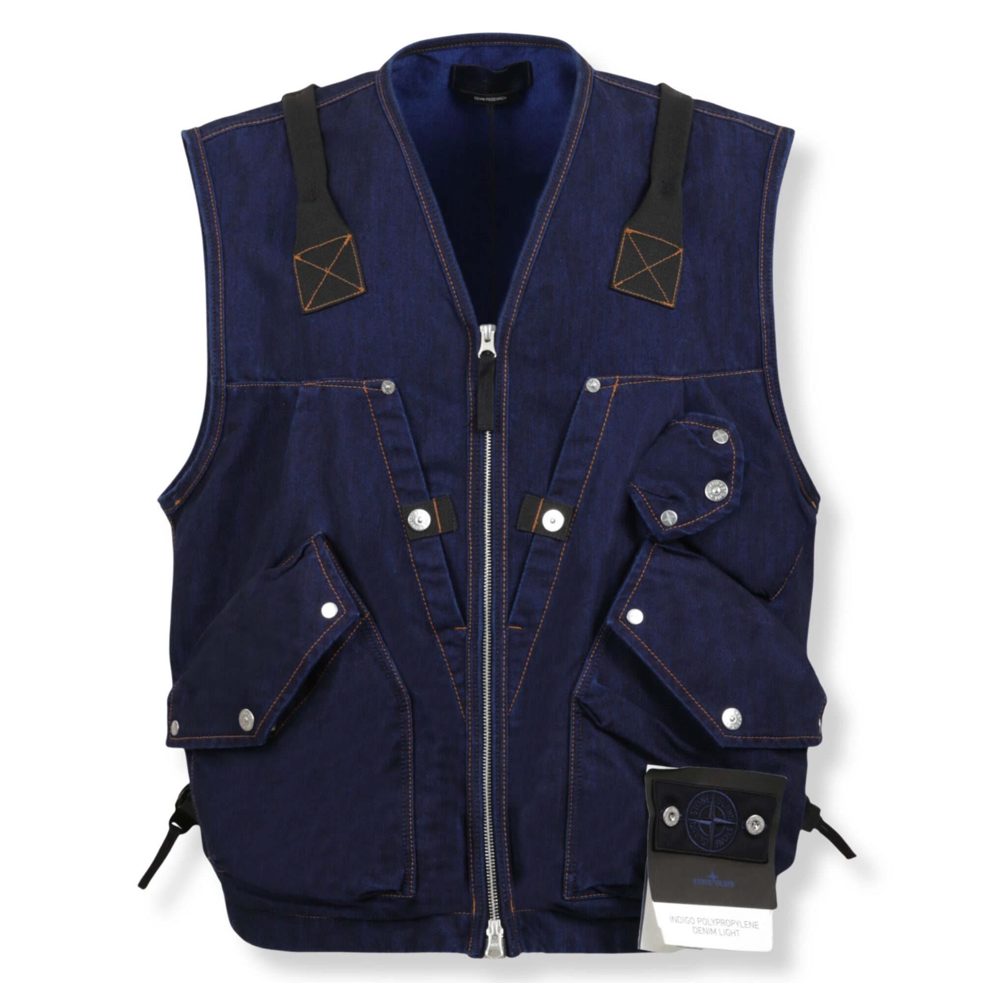 Overshirt in denim Stone Island. Vestibilità regular e chiusura con bottoni automatici. Tasche multiple sul petto e badge con logo del brand sulla manica.