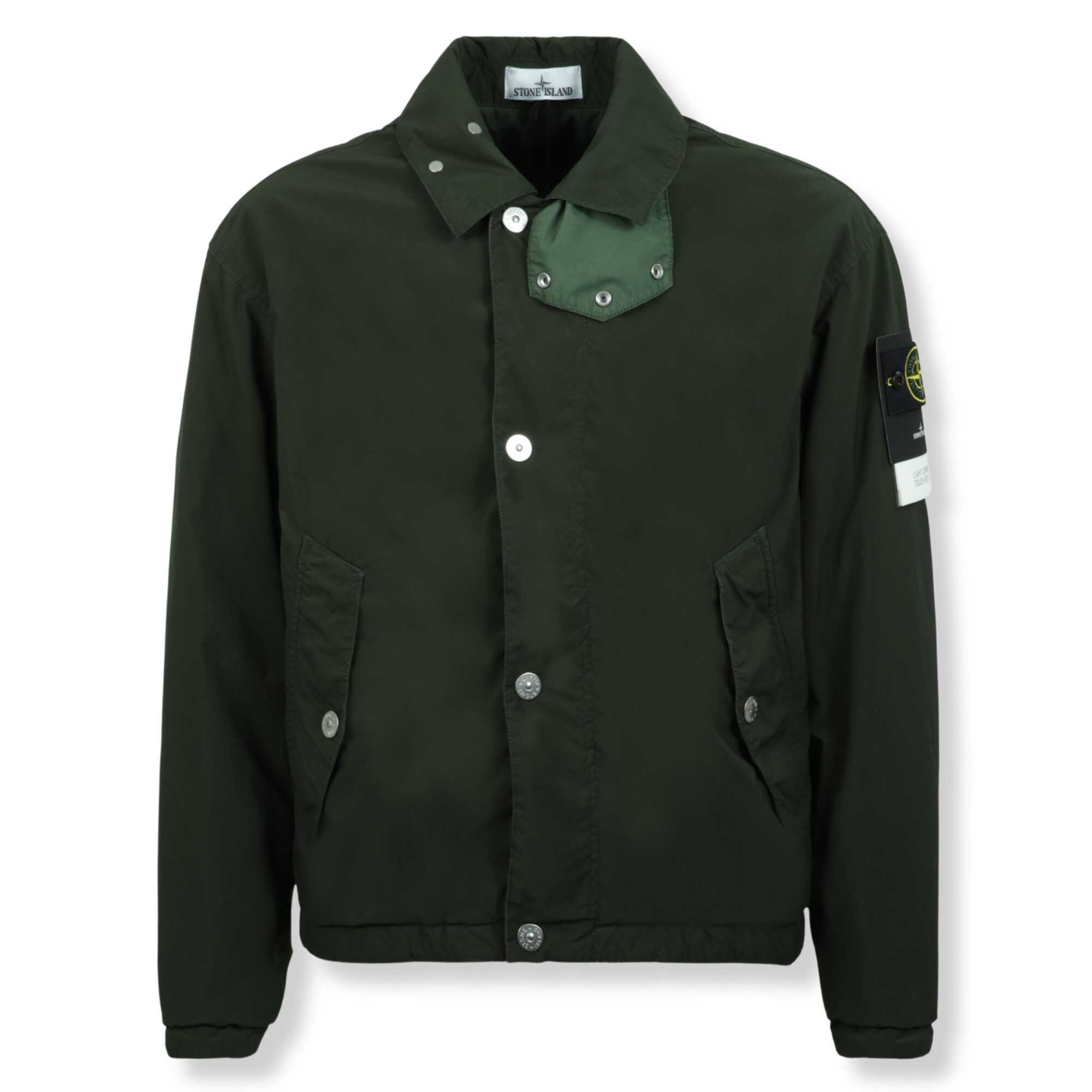 Coach Jacket Stone Island. Desing in tela leggera con trattamento idrorepellente. Colletto classico a camicia con pattina triangolare sul mento. Chiusura frontale con bottoni automatici e due tasche oblique con pattina. Logo del brand sul braccio sinistro.