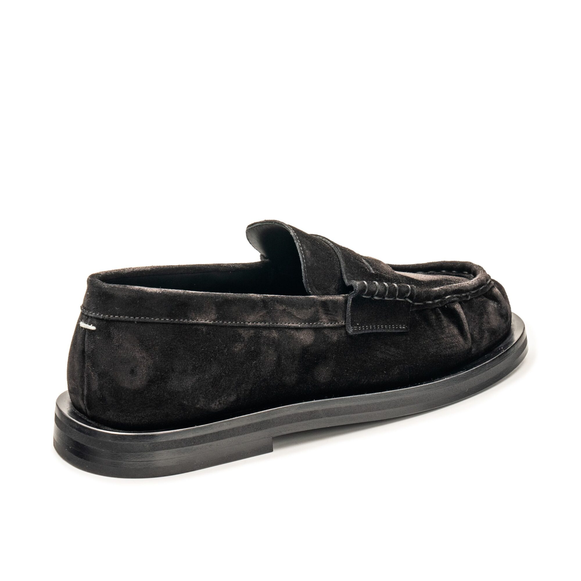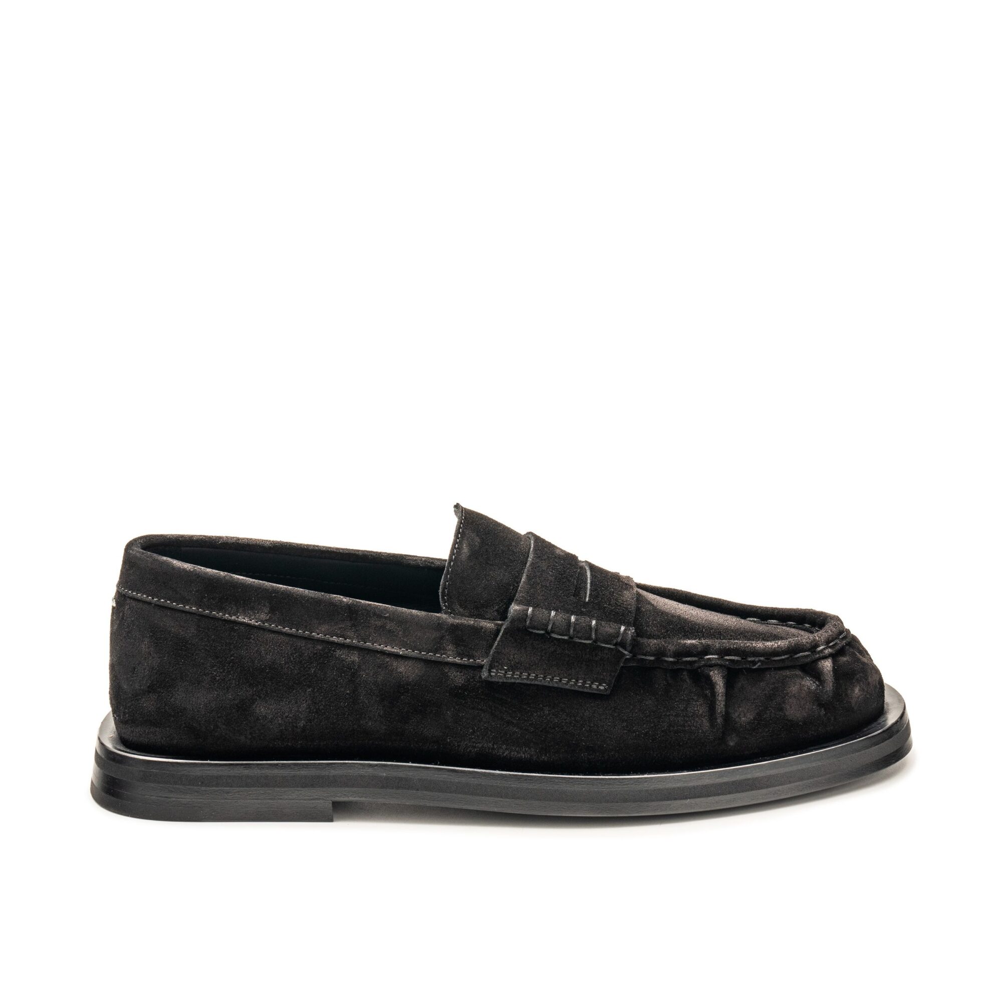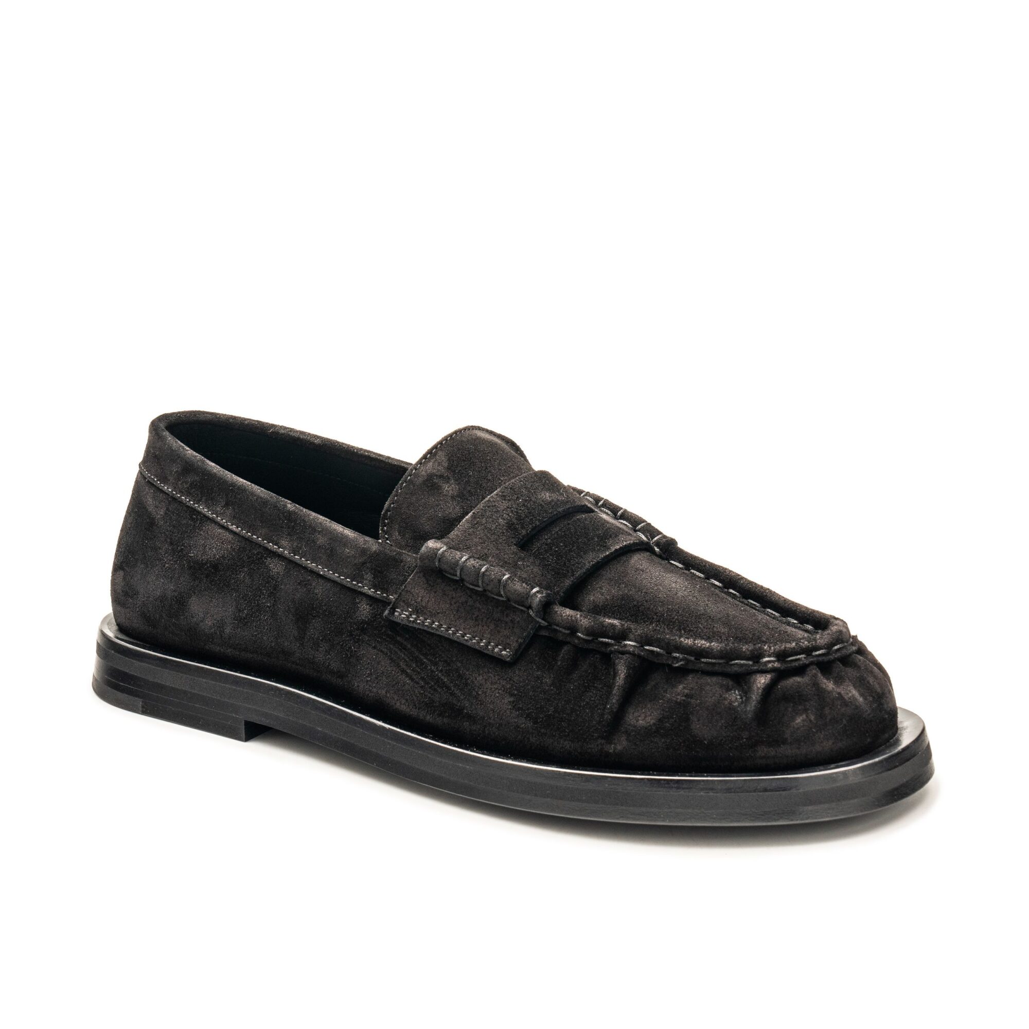 RAFA 835 The-Antipode. Mocassino slip-on in suede con effetto vintage, punta arrotondata con dettagli arricciati.