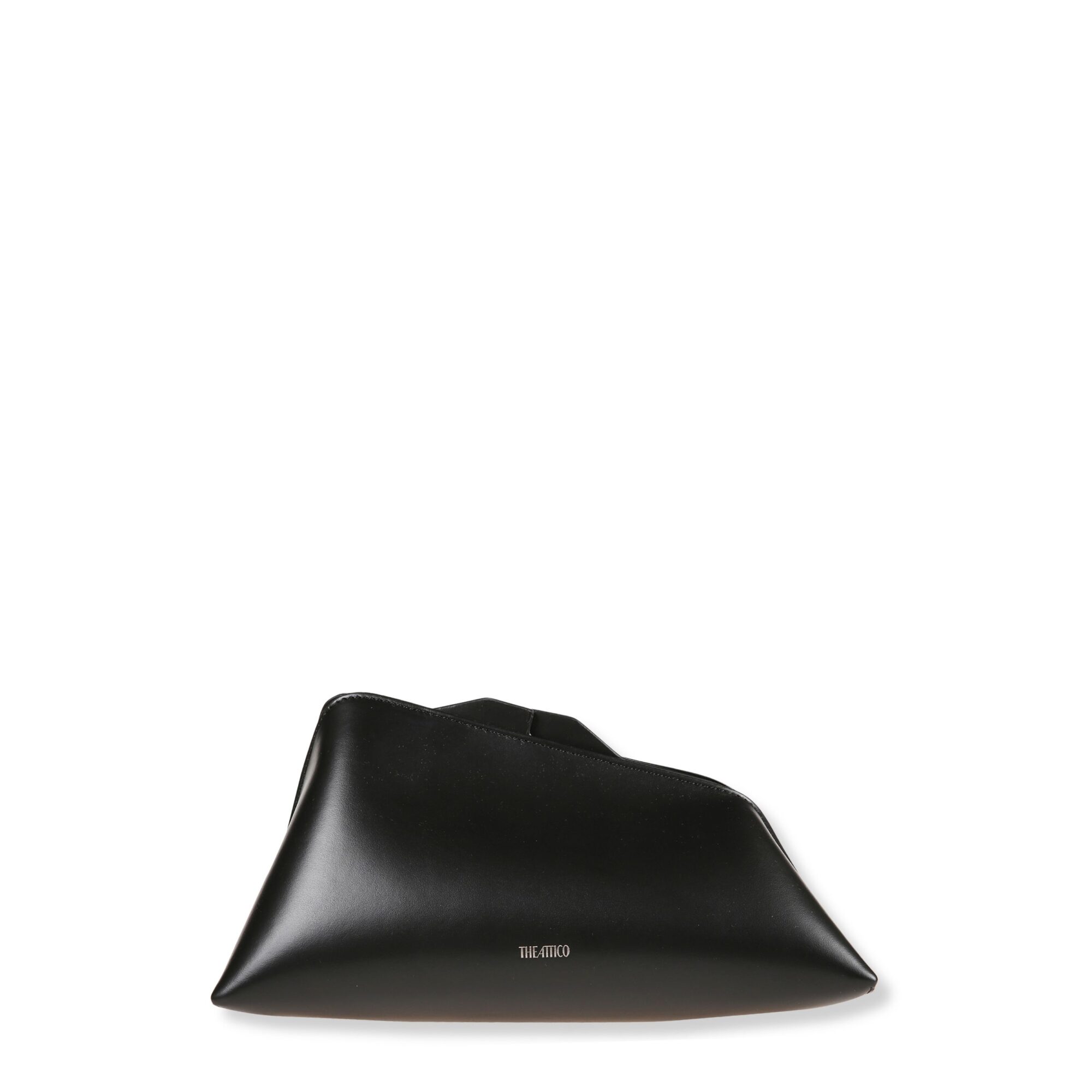 Oversized Clutch 8.30 PM The Attico. Chiusura magnetica superiore e logo del brand stampato sul fondo.