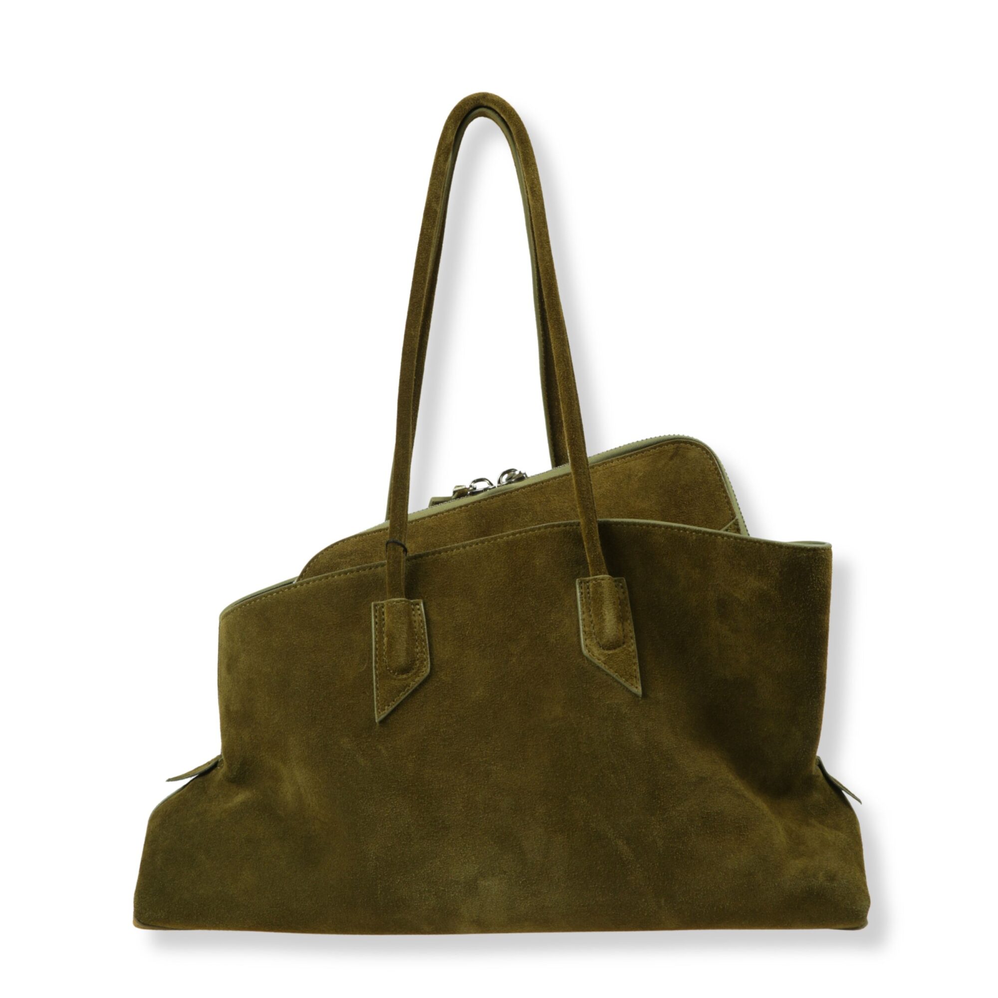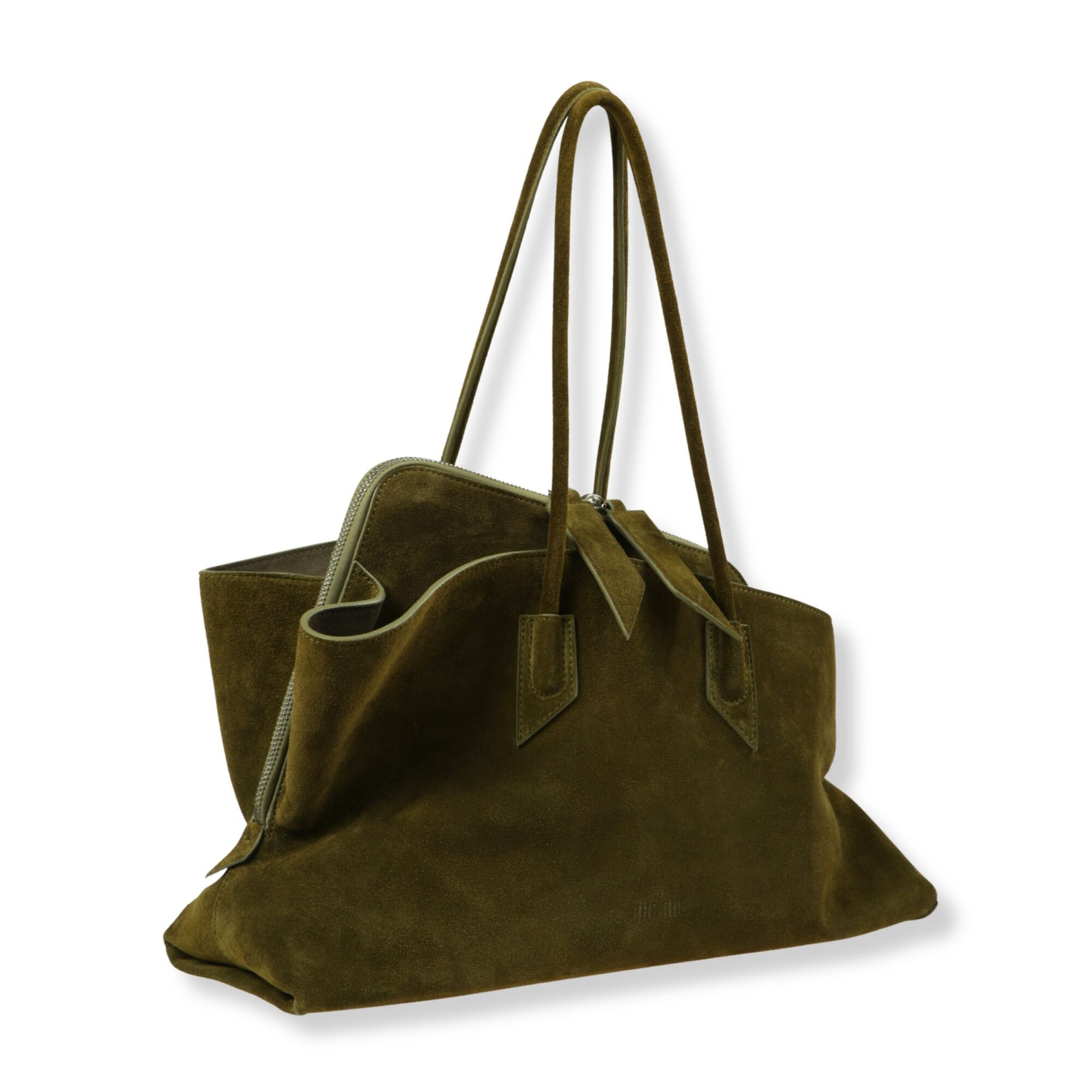 Top handle La Passeggiata Medium The Attico. Modello in suede con tasca zip interna e doppio manico superiore.