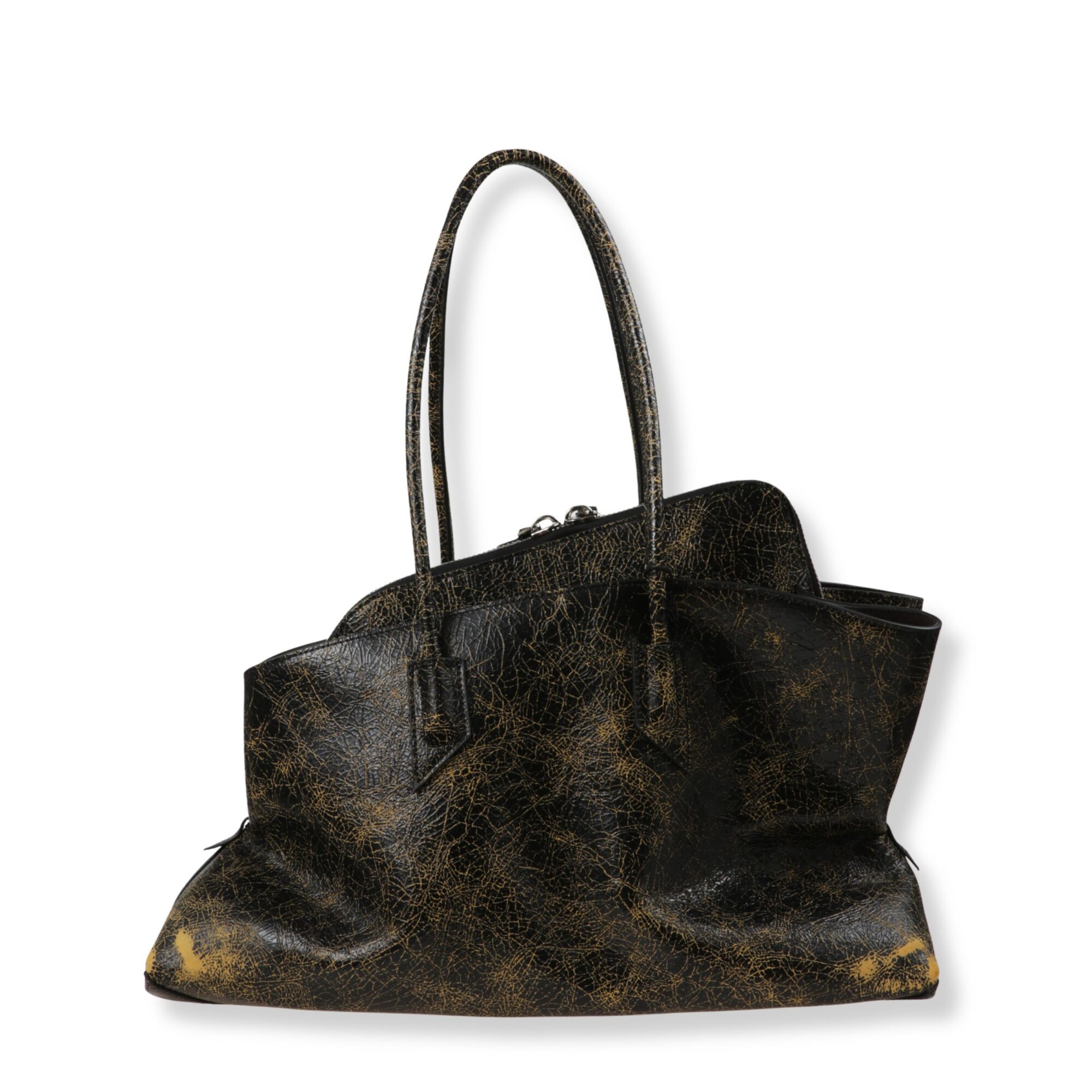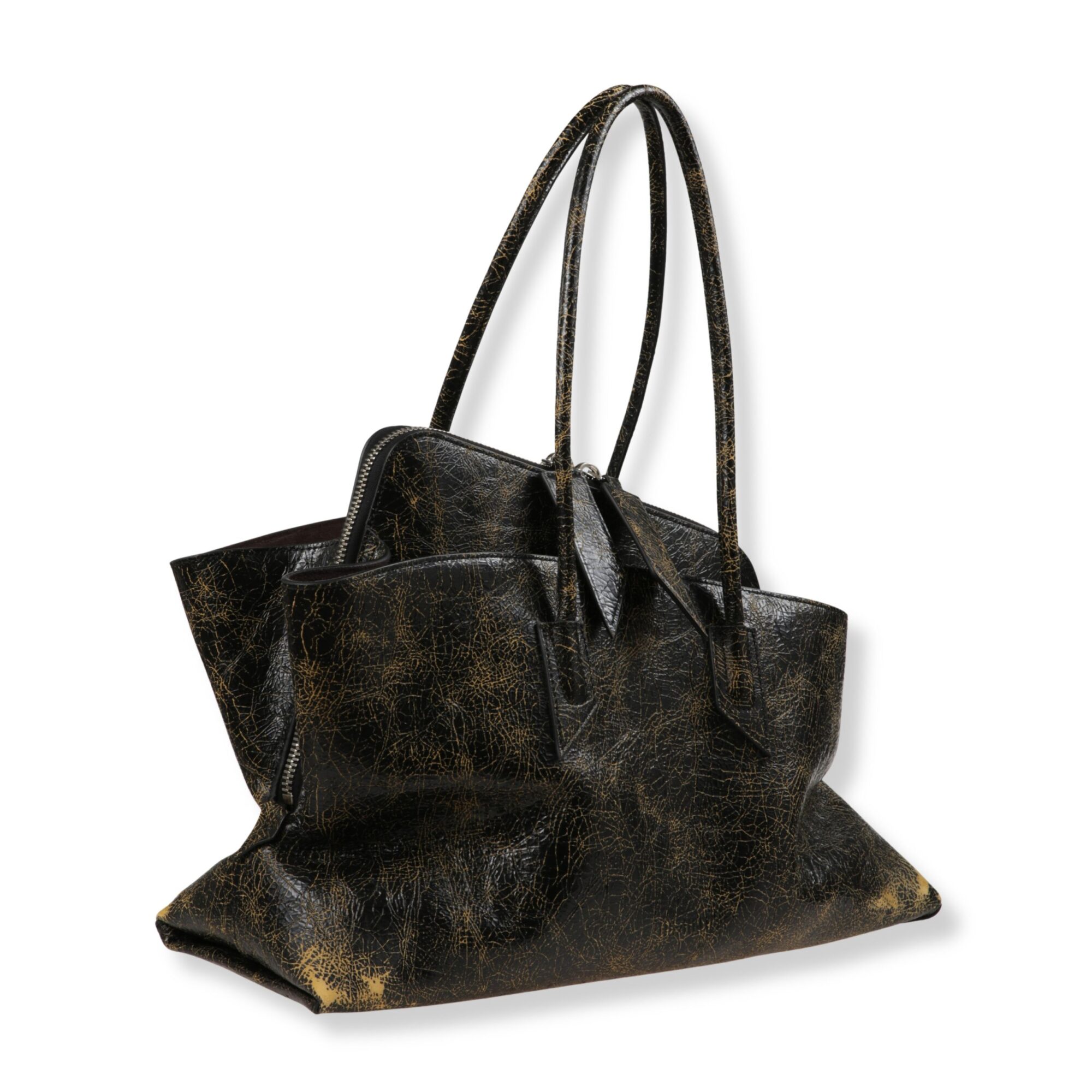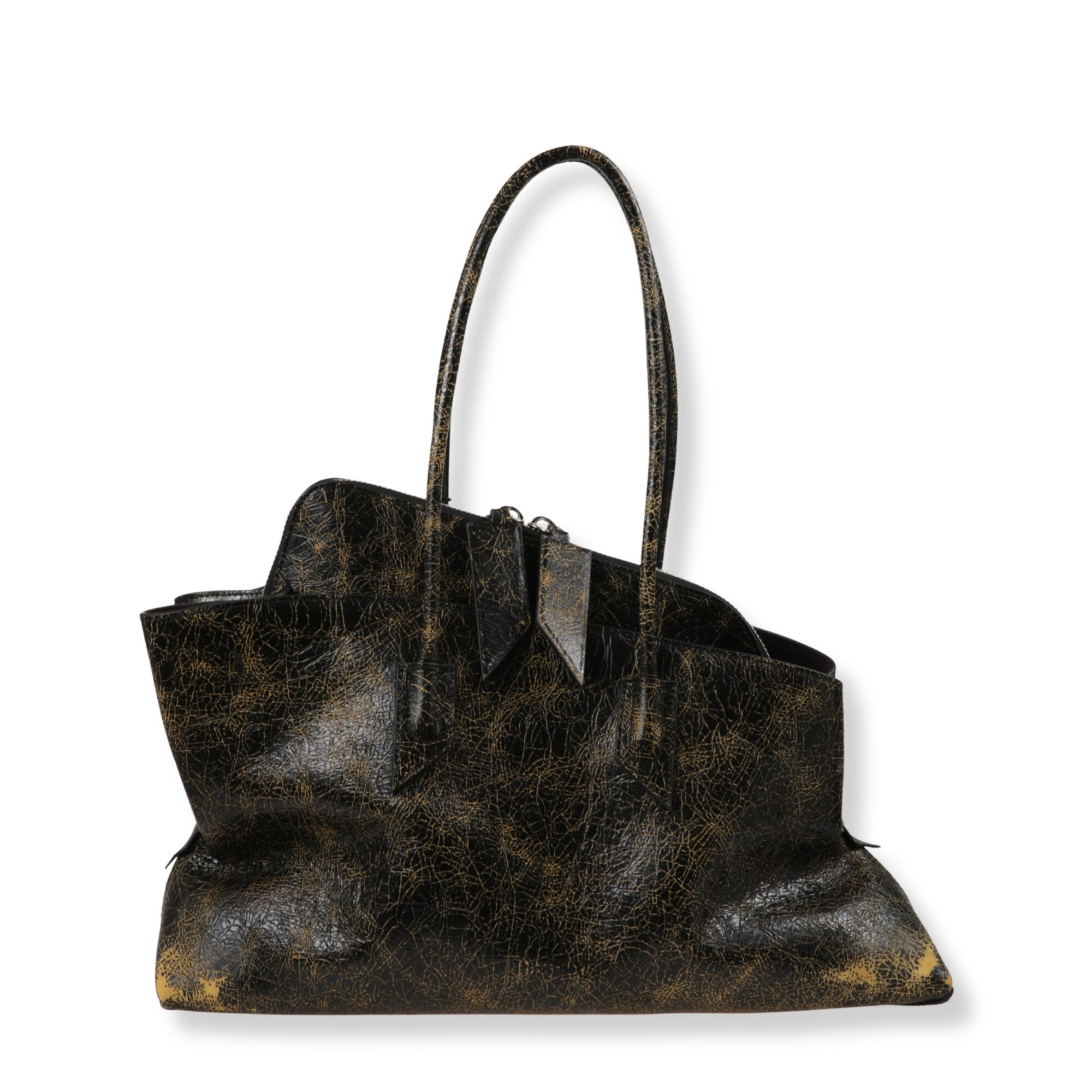 Top handle La Passeggiata Medium The Attico. Modello in pelle cracklé effetto vintage con tasca zip interna e doppio manico superiore.
