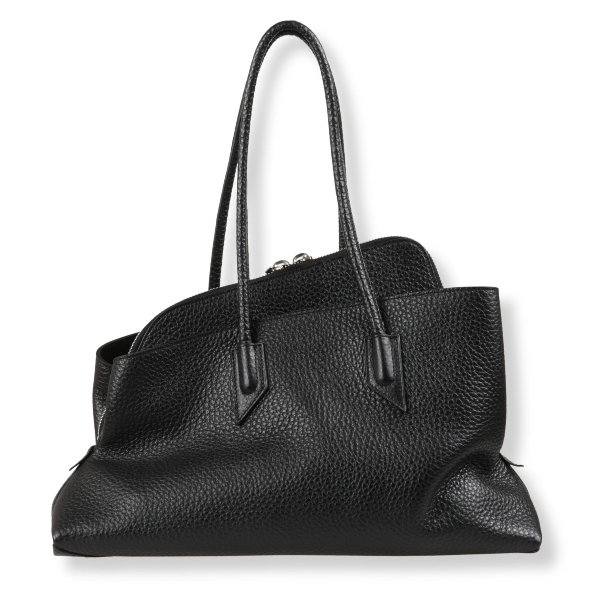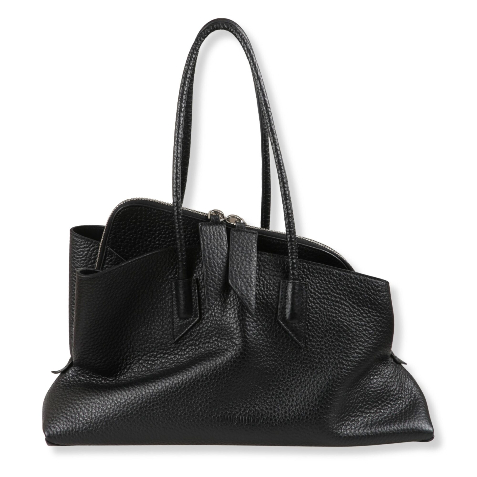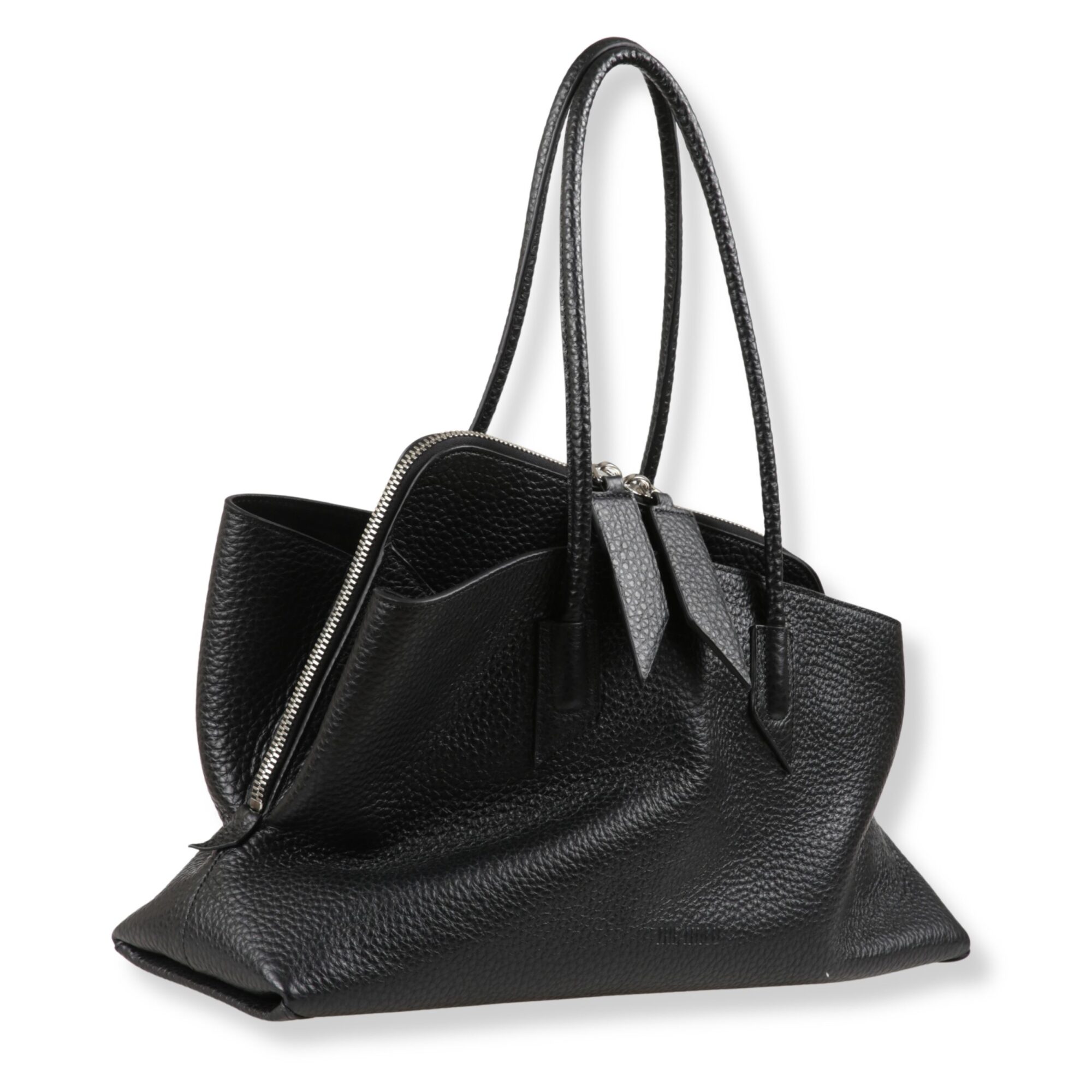 Top handle La Passeggiata Medium The Attico. Modello in pelle martellata con tasca zip interna e doppio manico superiore.