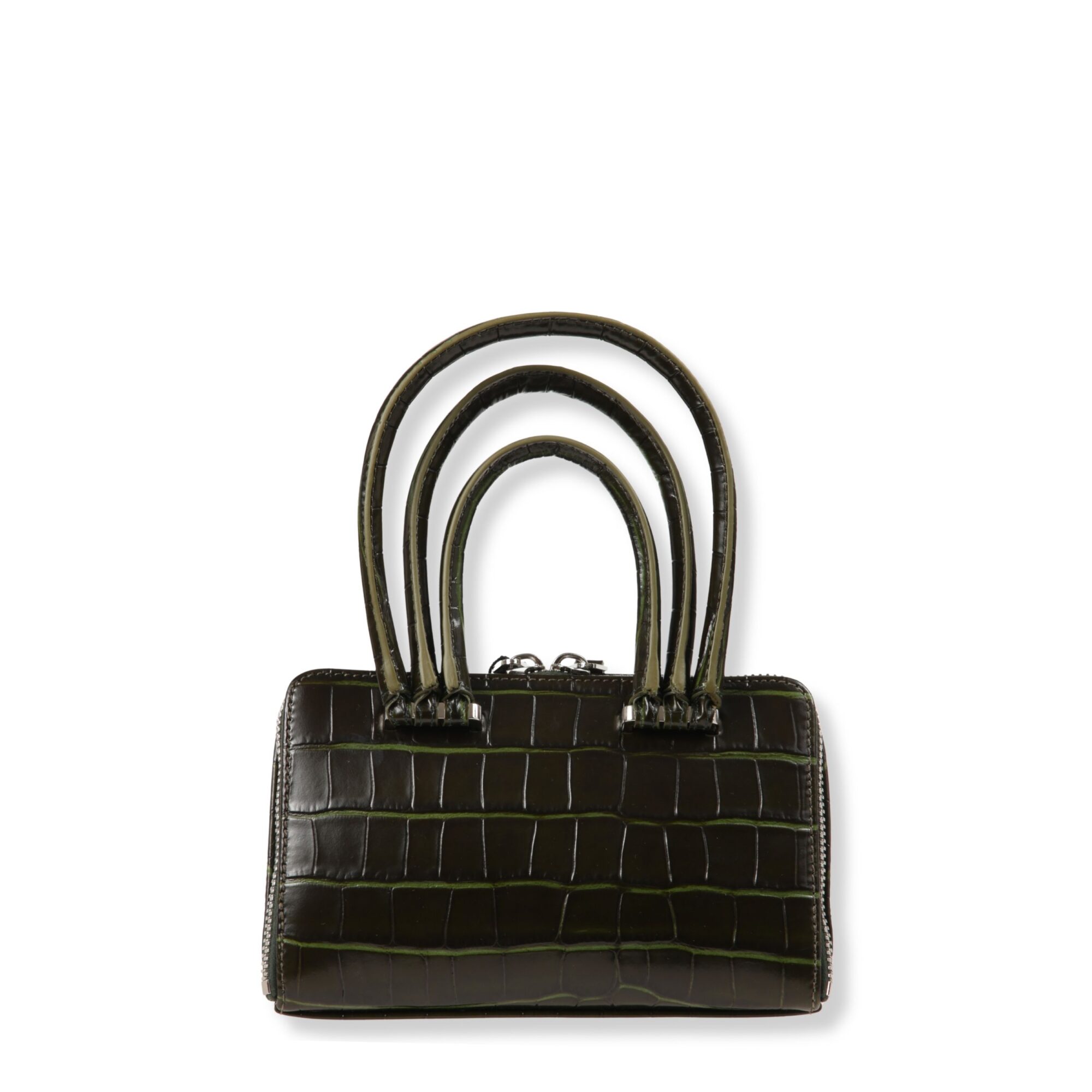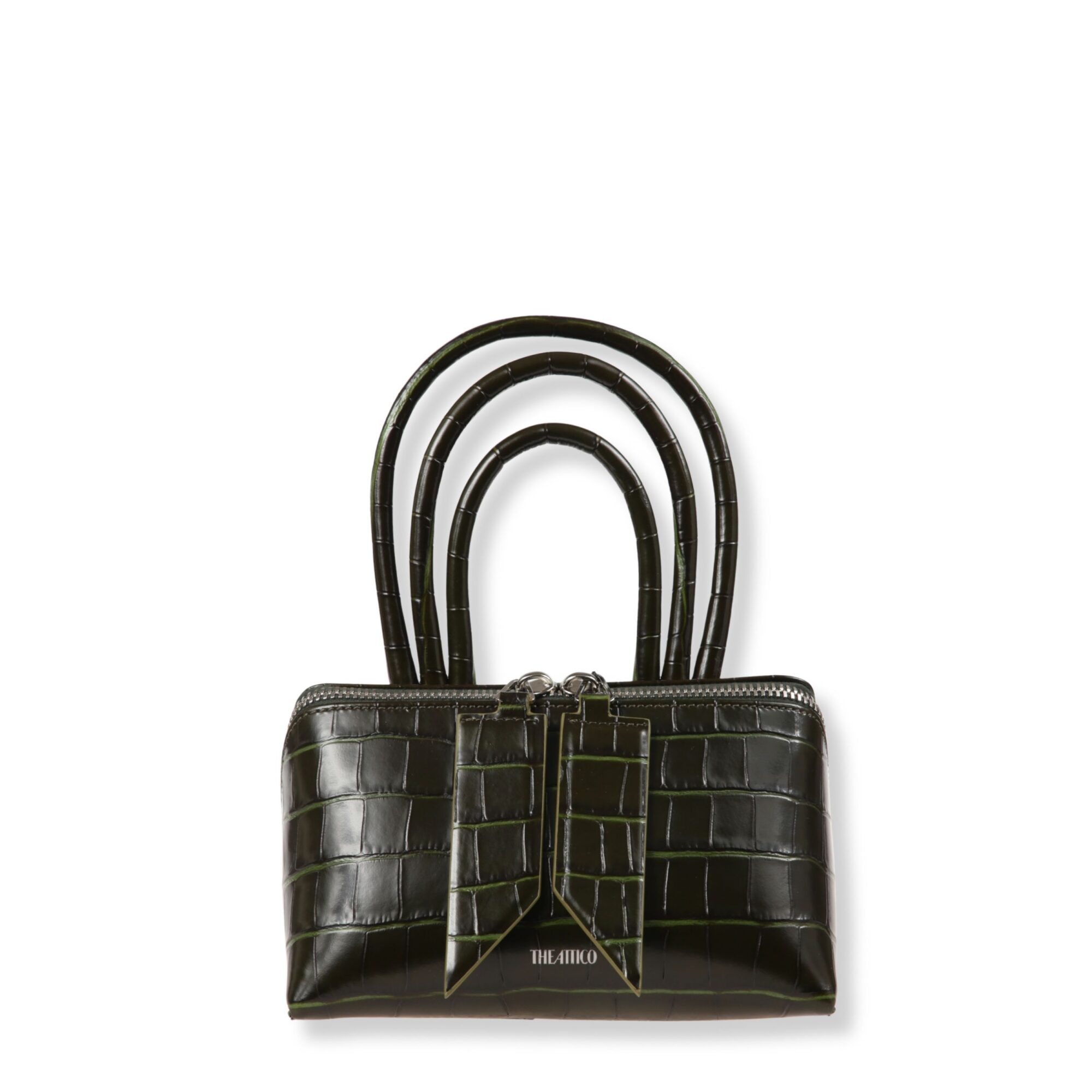 Mini bag Friday The Attico. Modello in pelle stampa coccodrillo con tre manici e chiusura a zip superiore a doppio cursore.