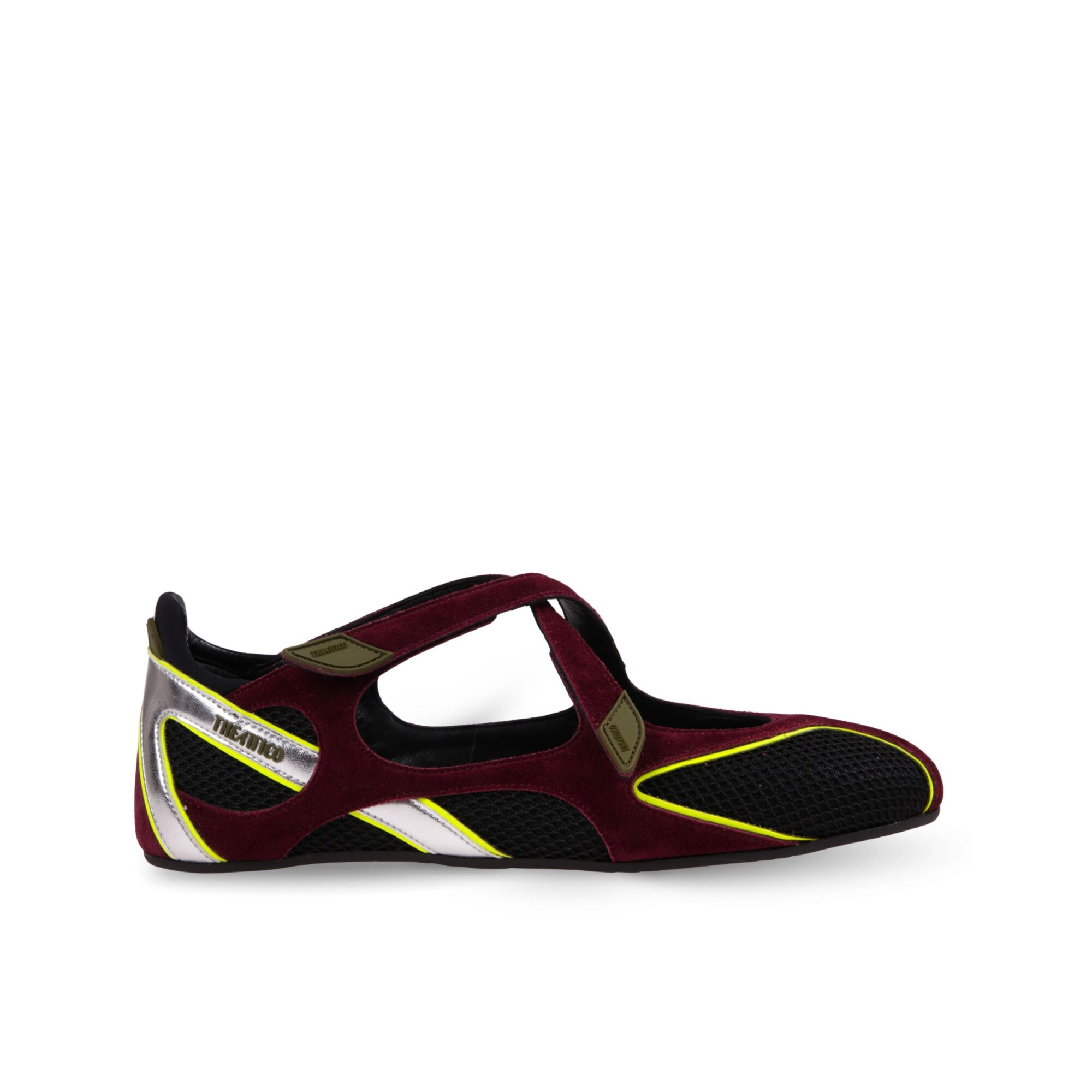 Ballerine The Attico in suede e tessuto traspirante. Suola piatta. Chiusura a strappi con fasce incrociate.