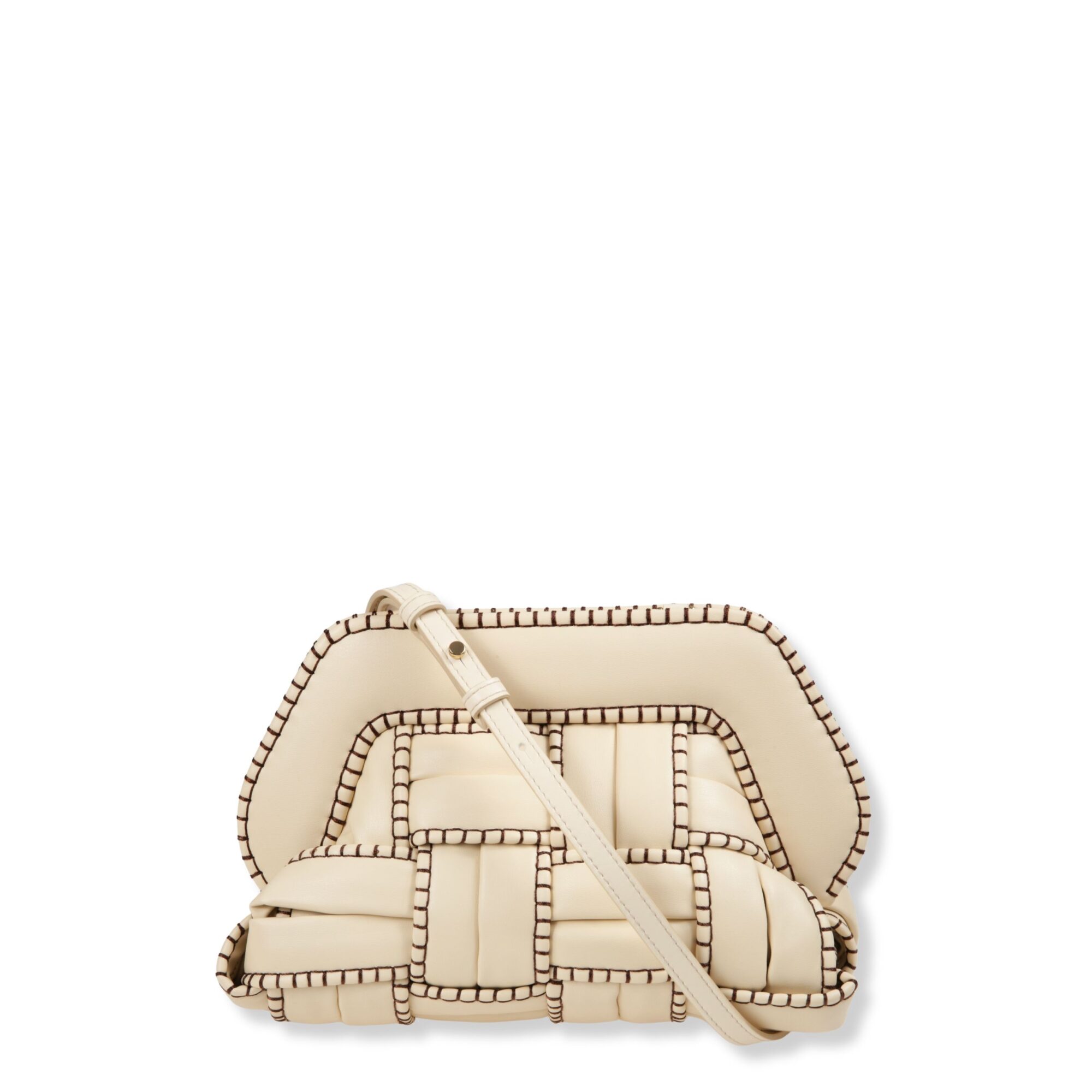Tia Trim Themoirè. Design in pelle intrecciata con cuciture a vista e chiusura superiore magnetica. Tracolla rimovibile e regolabile.