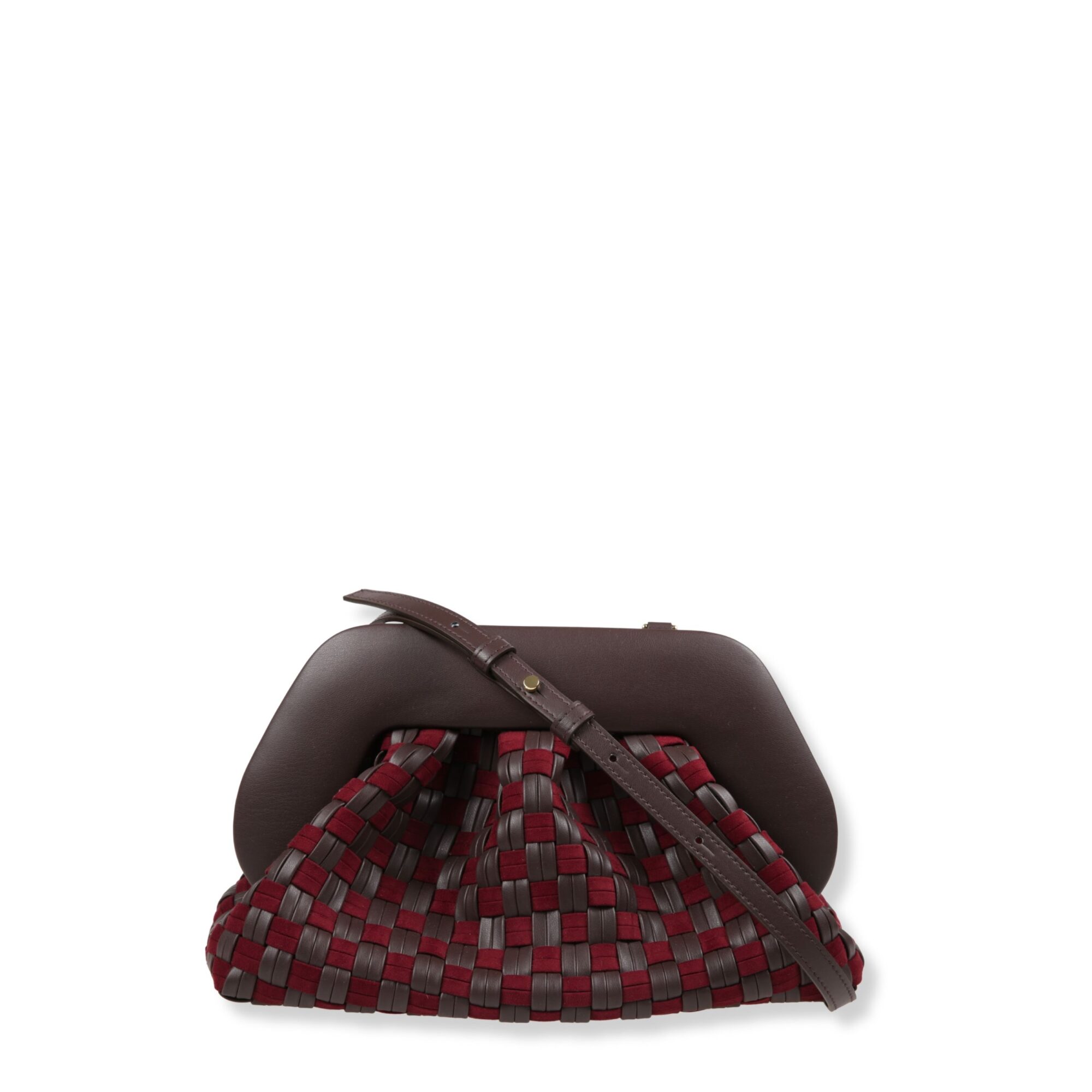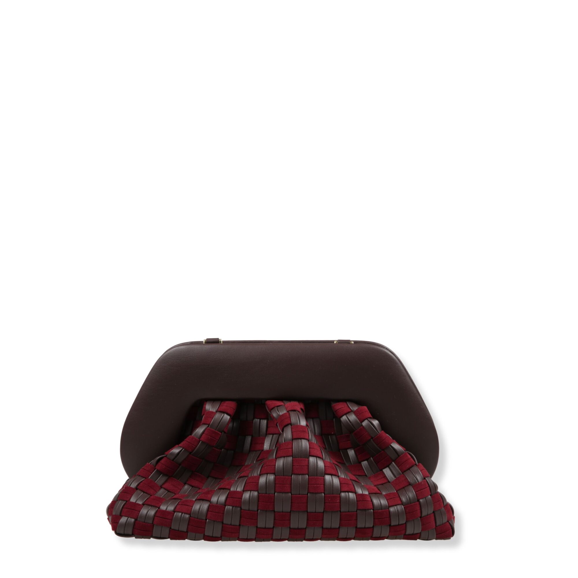 Tia Themoirè. Design in pelle intrecciata bicolore, con corpo drappeggiato e chiusura superiore magnetica. Tracolla rimovibile e regolabile.