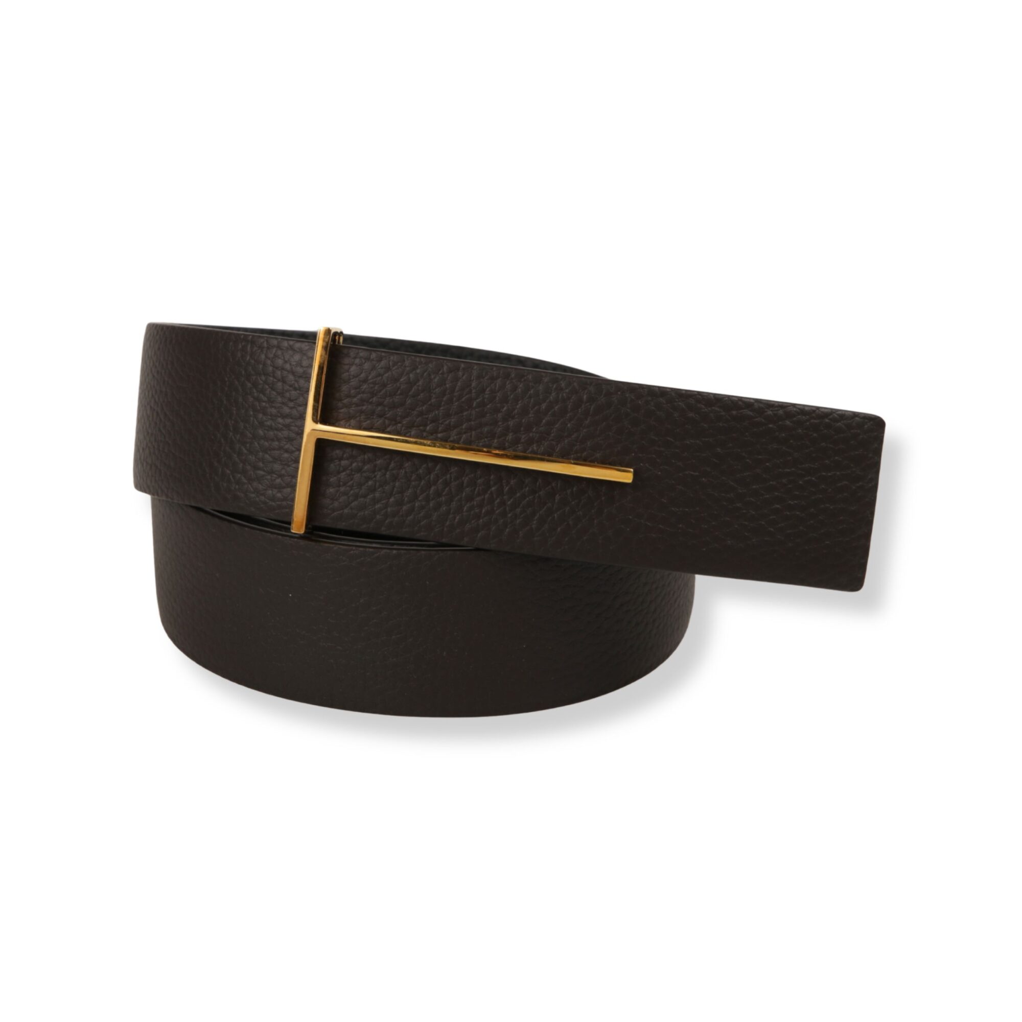 Slim T Reversible Belt Tom Ford. In pelle martellata e fibbia con logo del brand.