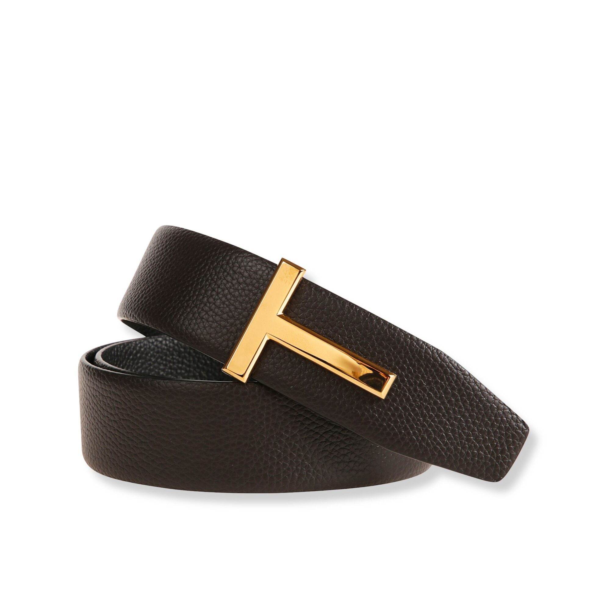 T Icon Belt Tom Ford. In pelle a grani e fibbia personalizzata con logo del brand.