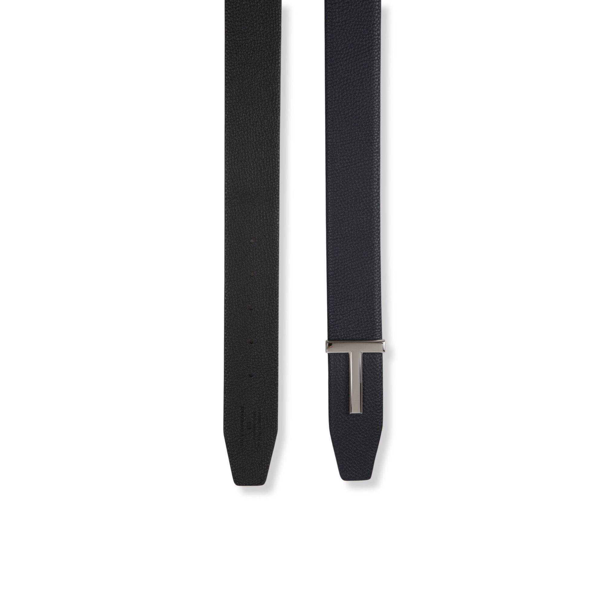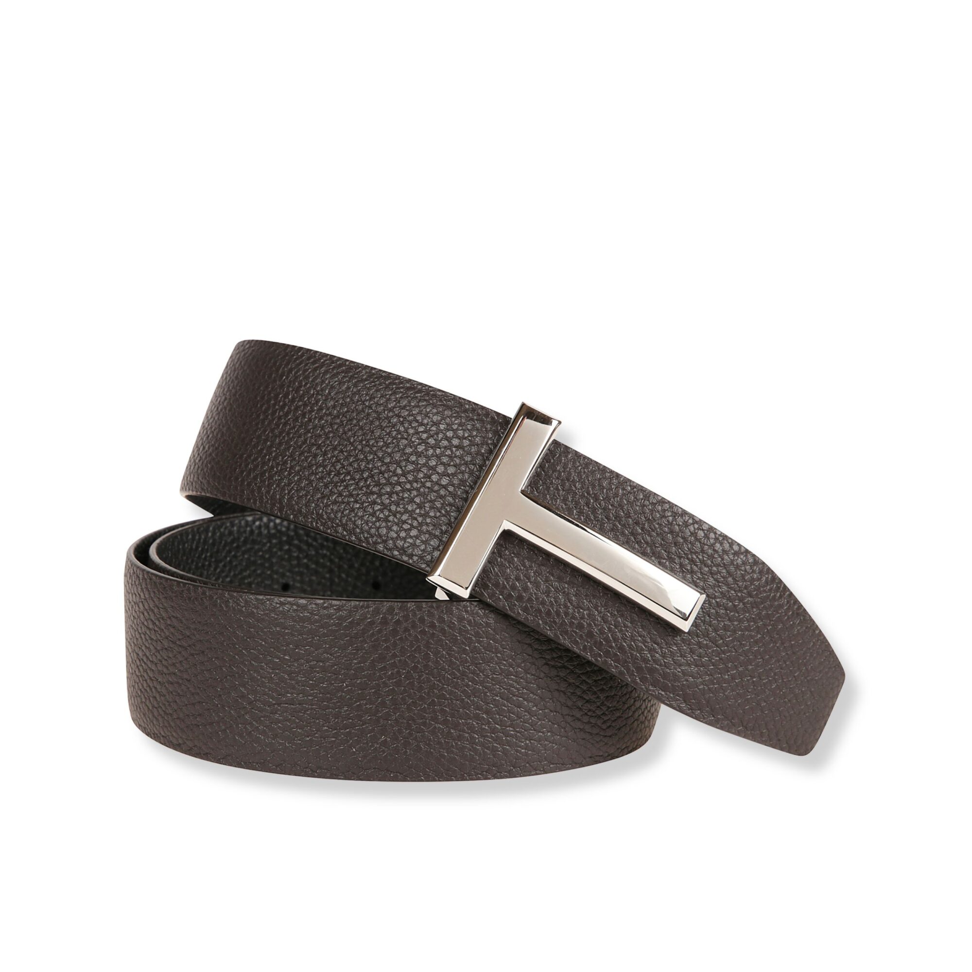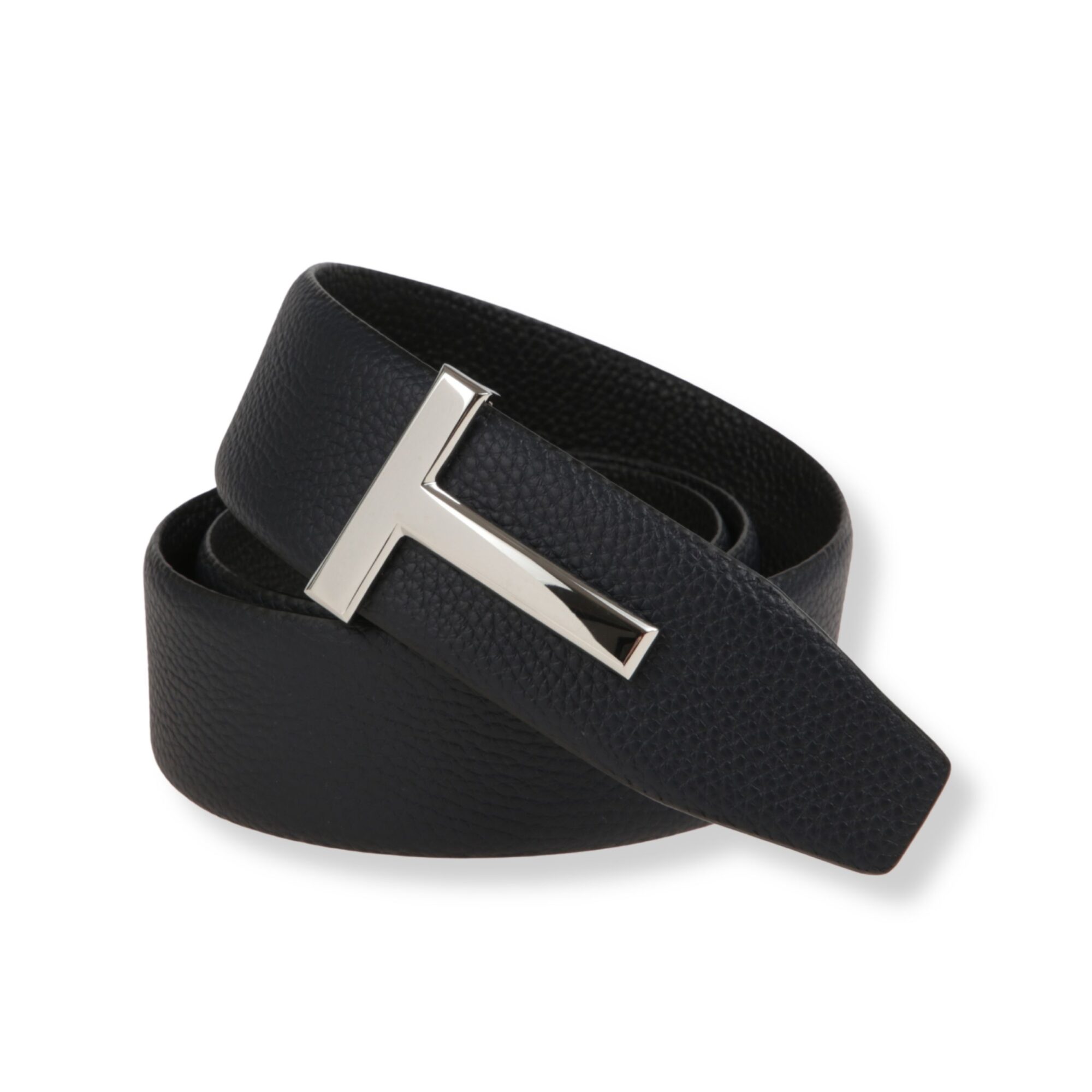 T Icon Belt Tom Ford. In pelle a grani e fibbia personalizzata con logo del brand.