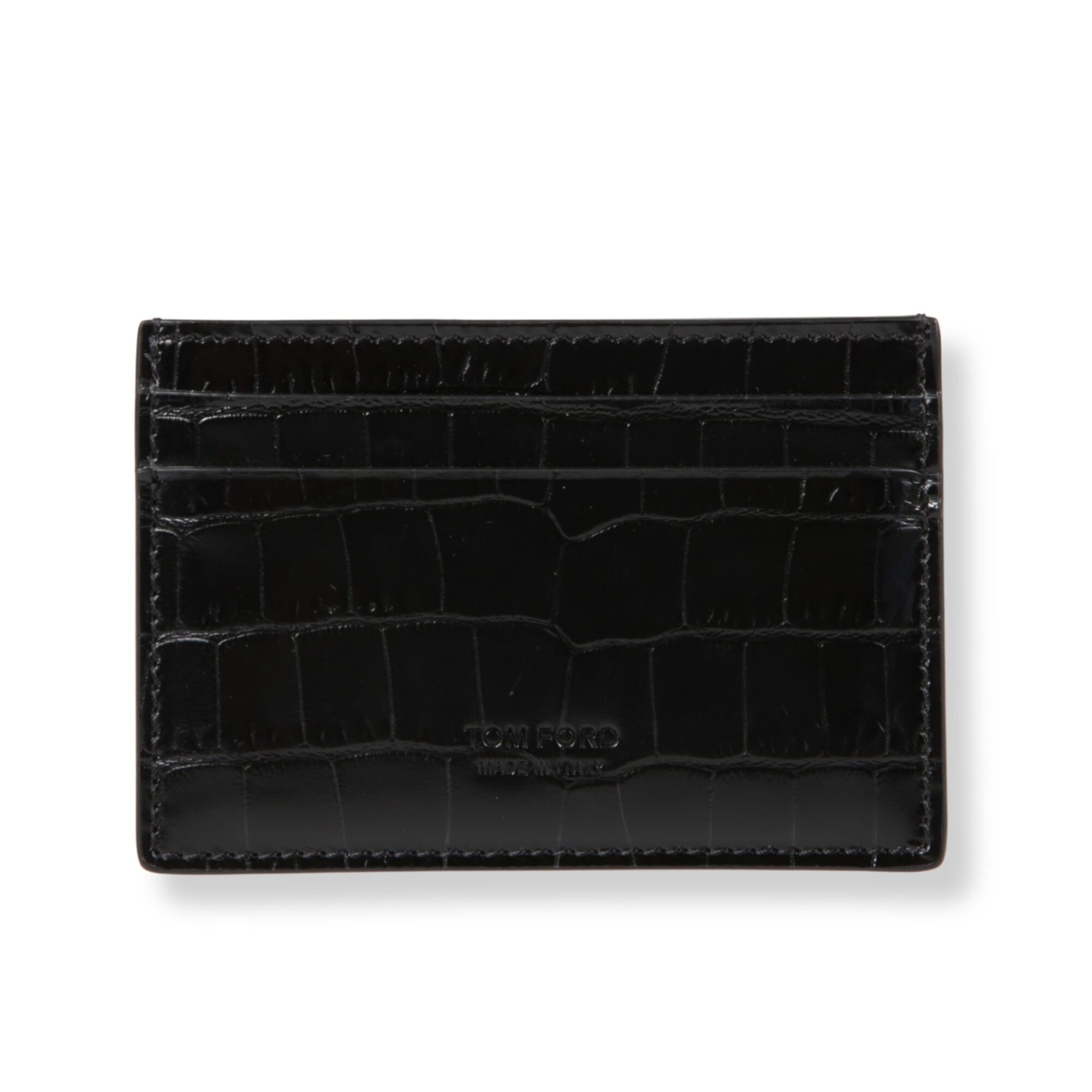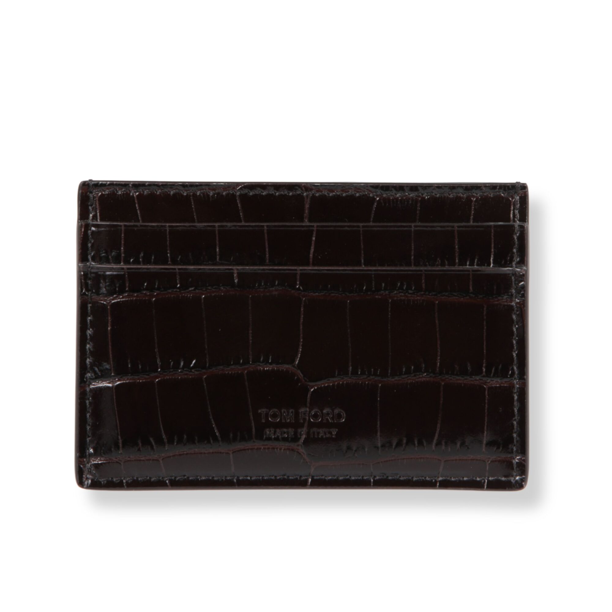 Portacarte Tom Ford, in pelle effetto coccodrillo. Scomparti multipli per carte. Logo del brand impresso sul fronte.